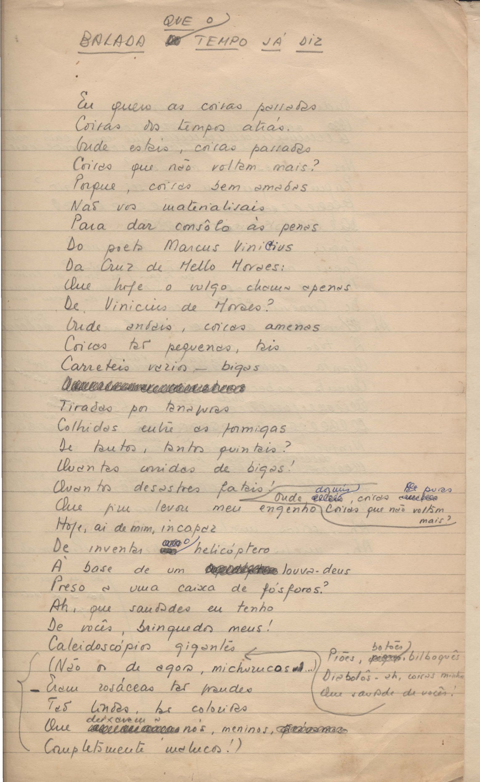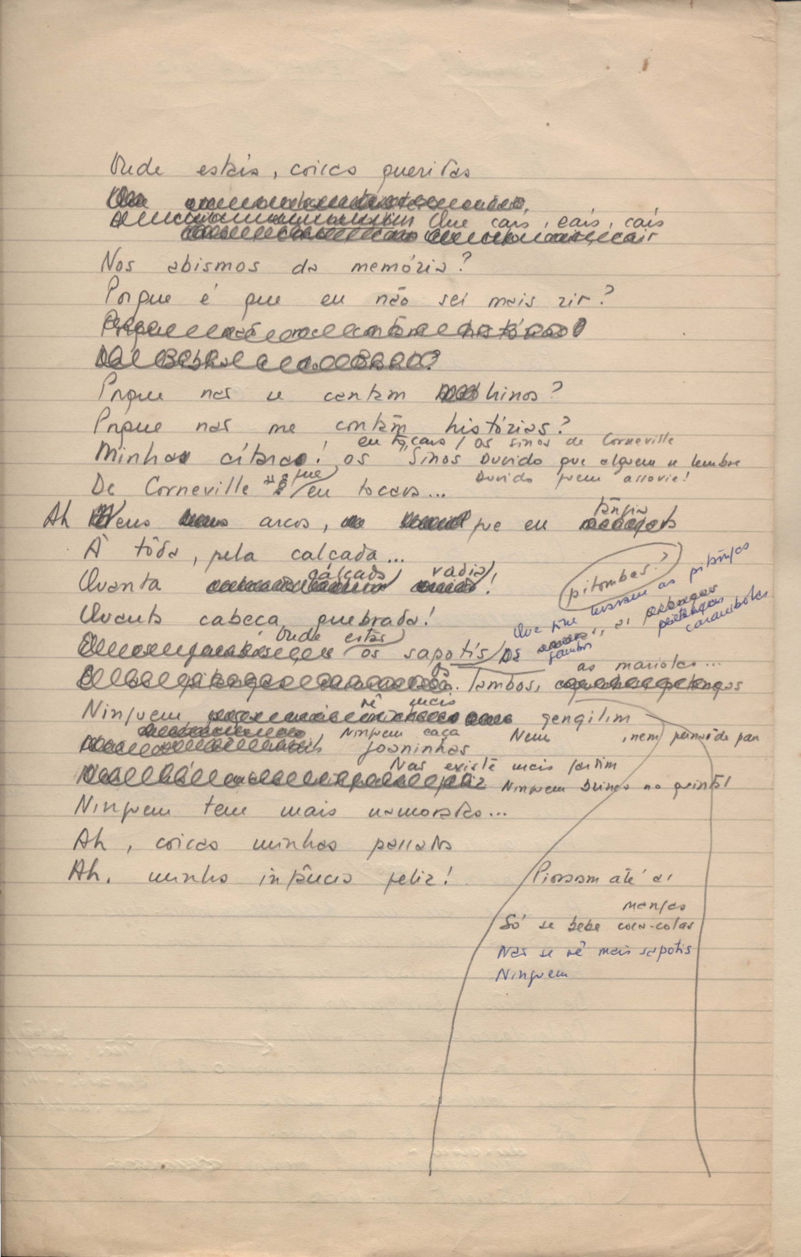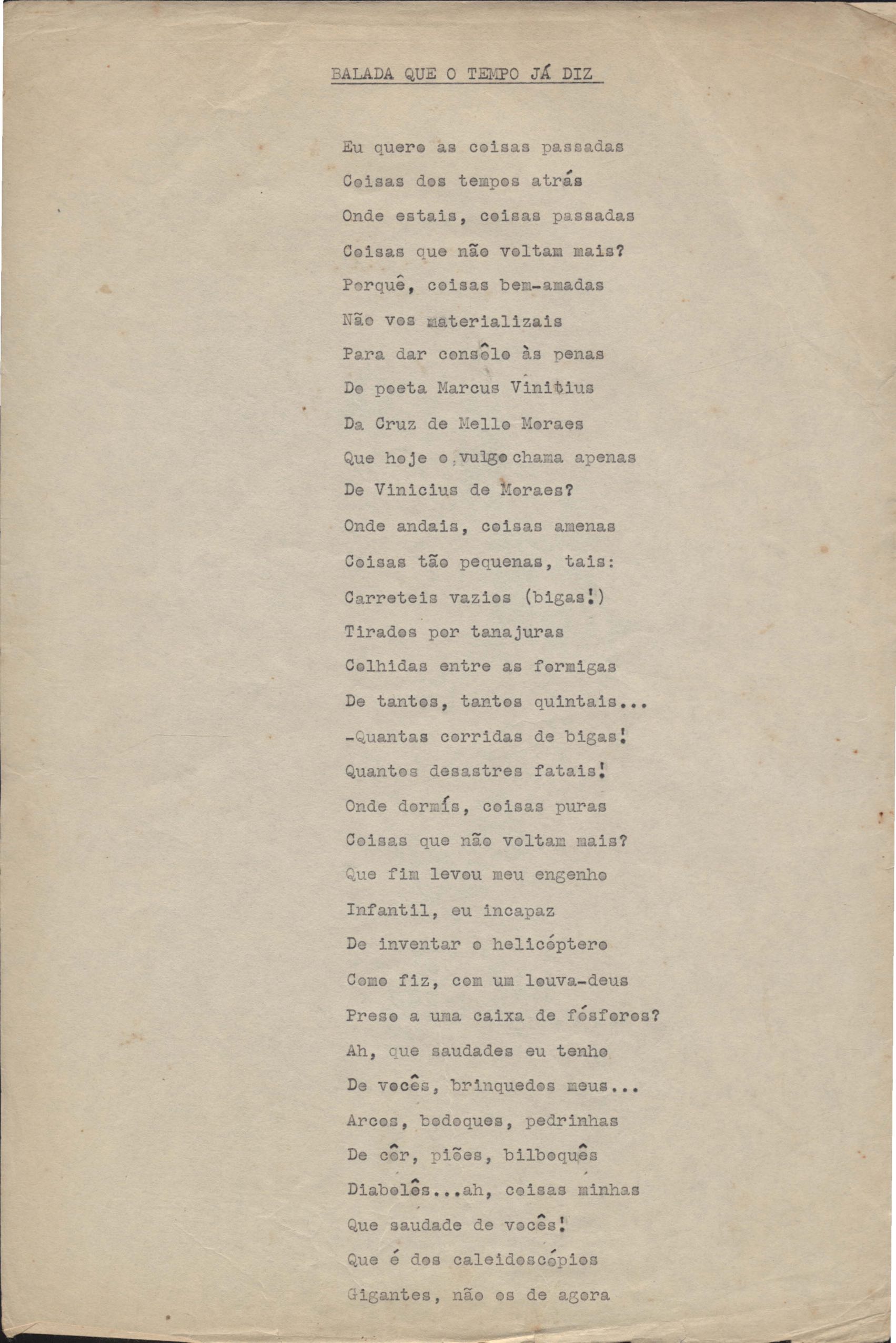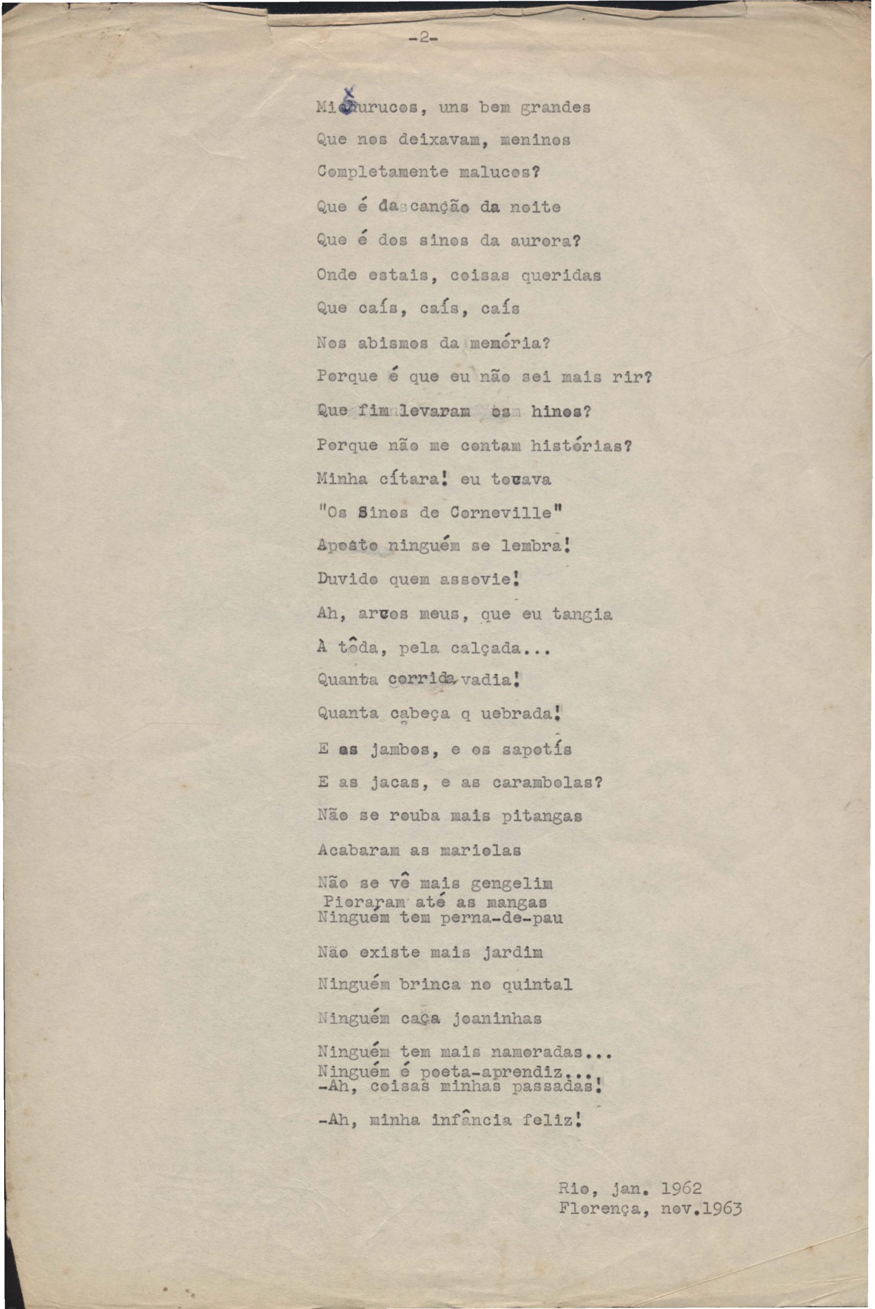 Poema. Há, no dossiê, vários rascunhos e poemas esparsos e inéditos. Alguns poemas do dossiê são encontrados também na primeira leva de documentos doados, e que faz parte do primeiro inventário. Na mesma página do poema "Quisera tanto" há o poema "Namorada". Há nota nos poemas: "Cada vez que eu penso nela", "O dia de Oxalá", "Menina, não banha nua" e "A morte sem pedágio".