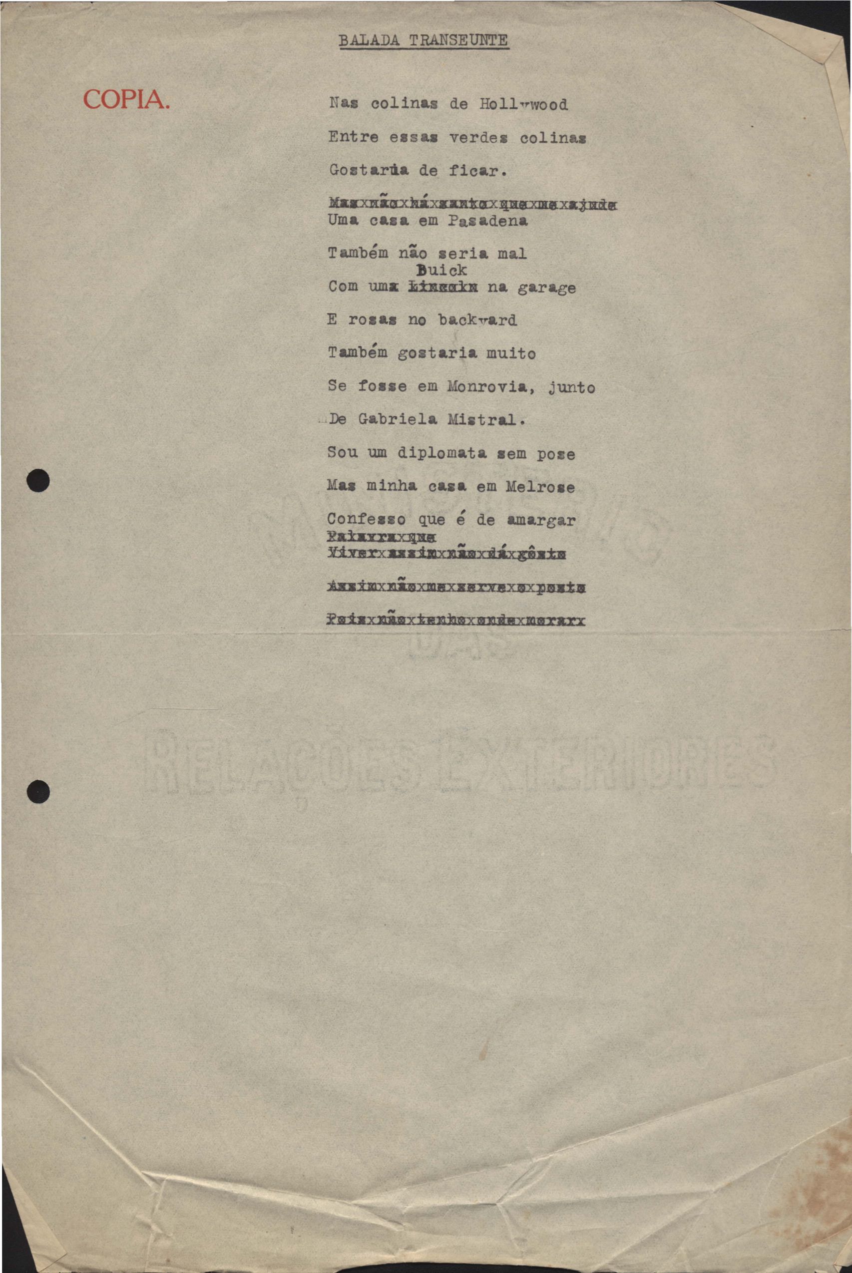 Poema. Há, no dossiê, vários rascunhos e poemas esparsos e inéditos. Alguns poemas do dossiê são encontrados também na primeira leva de documentos doados, e que faz parte do primeiro inventário. Na mesma página do poema "Quisera tanto" há o poema "Namorada". Há nota nos poemas: "Cada vez que eu penso nela", "O dia de Oxalá", "Menina, não banha nua" e "A morte sem pedágio".