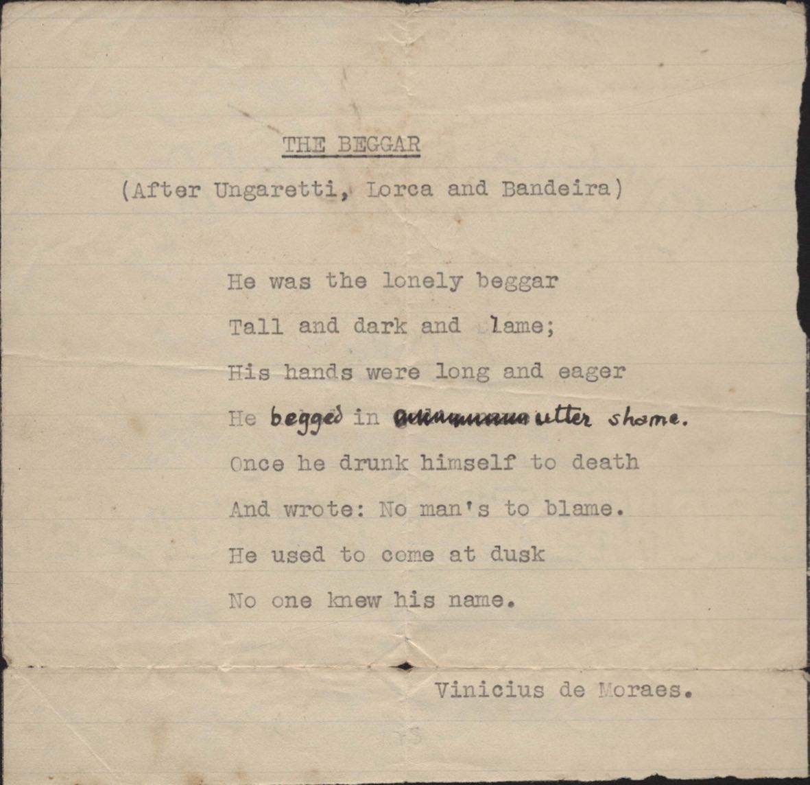 "The beggar (After Ungaretti, Lorca and Bandeira)"