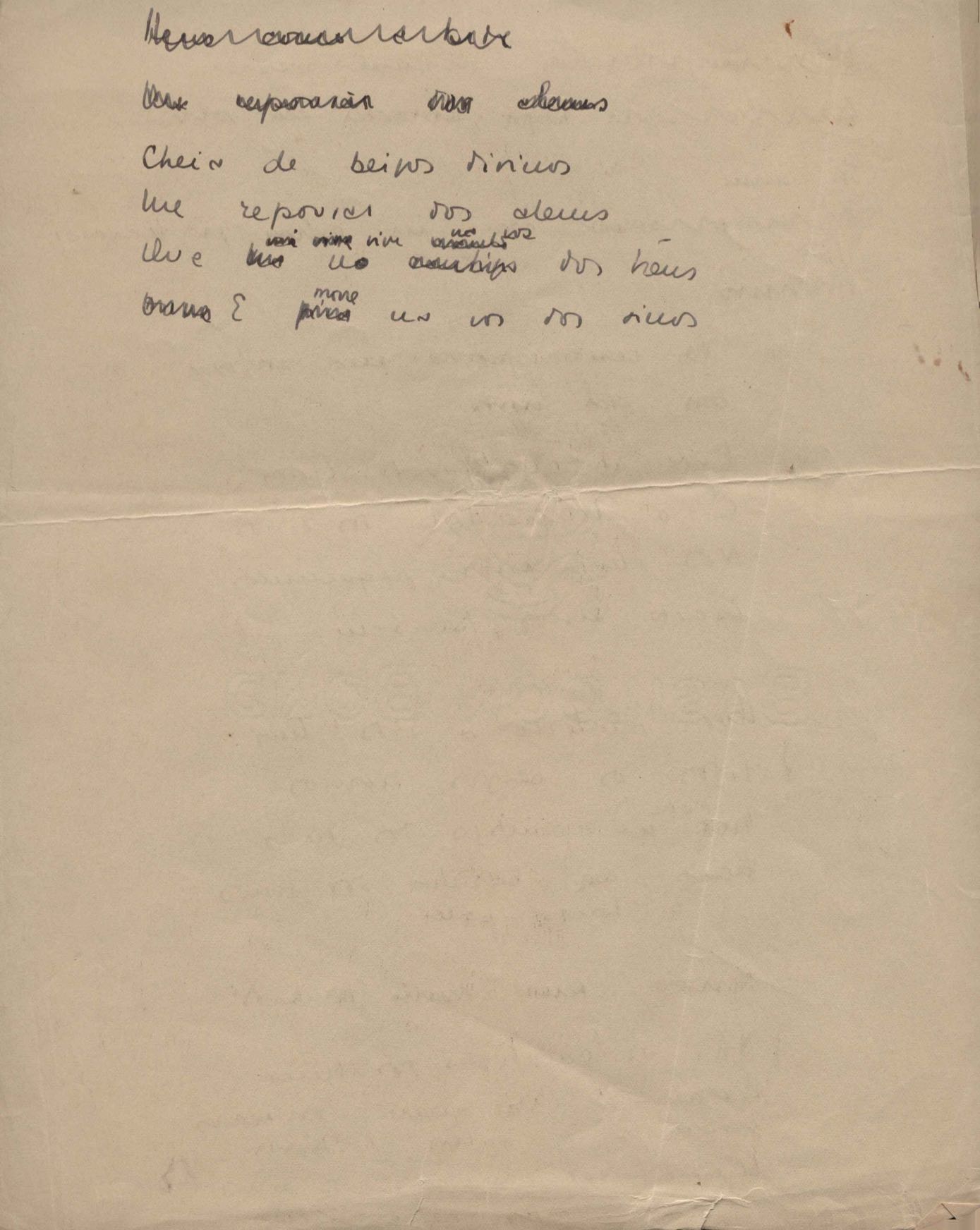 Poema. Há, no dossiê, vários rascunhos e poemas esparsos e inéditos. Alguns poemas do dossiê são encontrados também na primeira leva de documentos doados, e que faz parte do primeiro inventário. Na mesma página do poema "Quisera tanto" há o poema "Namorada". Há nota nos poemas: "Cada vez que eu penso nela", "O dia de Oxalá", "Menina, não banha nua" e "A morte sem pedágio".
