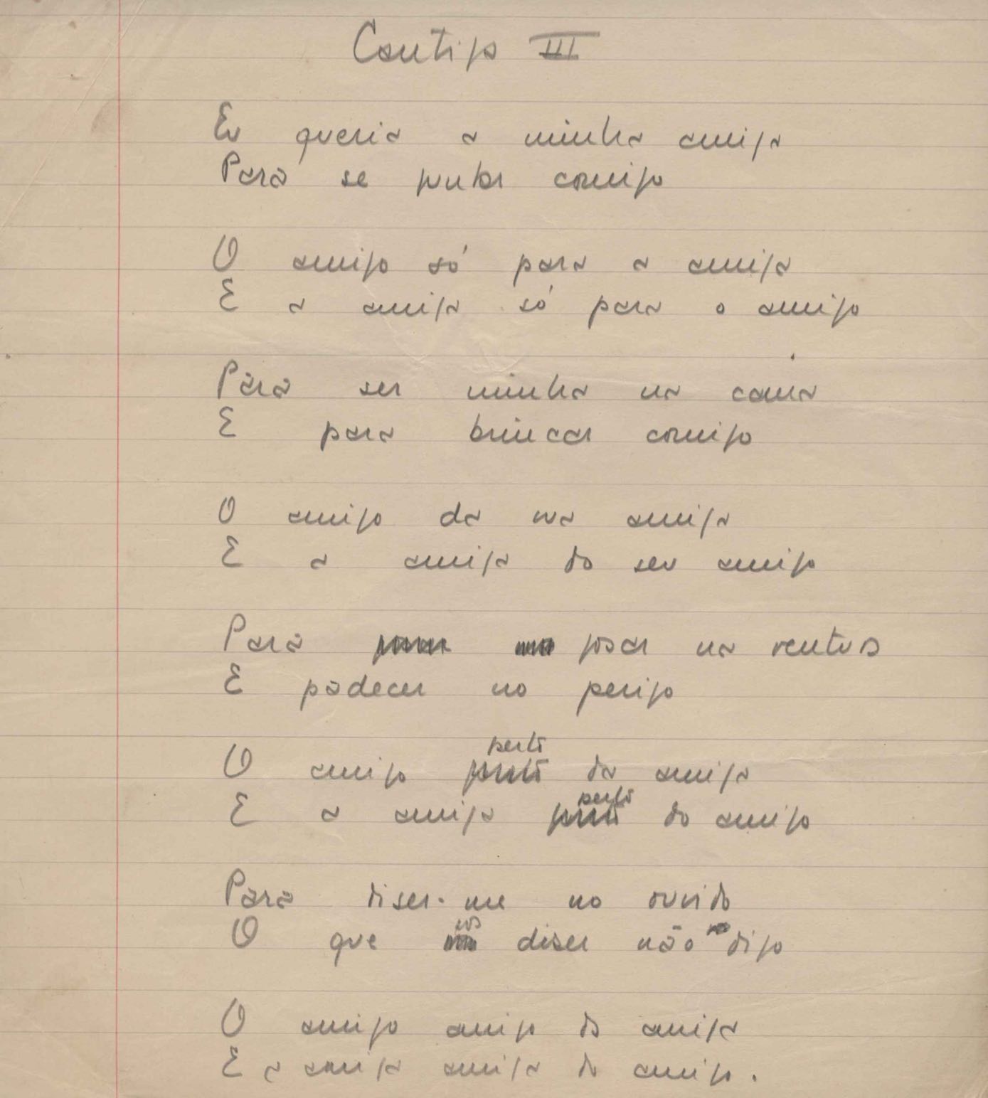Poema. Há, no dossiê, vários rascunhos e poemas esparsos e inéditos. Alguns poemas do dossiê são encontrados também na primeira leva de documentos doados, e que faz parte do primeiro inventário. Na mesma página do poema "Quisera tanto" há o poema "Namorada". Há nota nos poemas: "Cada vez que eu penso nela", "O dia de Oxalá", "Menina, não banha nua" e "A morte sem pedágio".