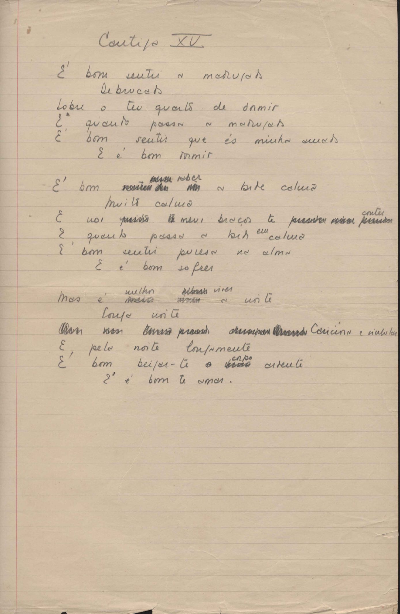 Poema. Há, no dossiê, vários rascunhos e poemas esparsos e inéditos. Alguns poemas do dossiê são encontrados também na primeira leva de documentos doados, e que faz parte do primeiro inventário. Na mesma página do poema "Quisera tanto" há o poema "Namorada". Há nota nos poemas: "Cada vez que eu penso nela", "O dia de Oxalá", "Menina, não banha nua" e "A morte sem pedágio".