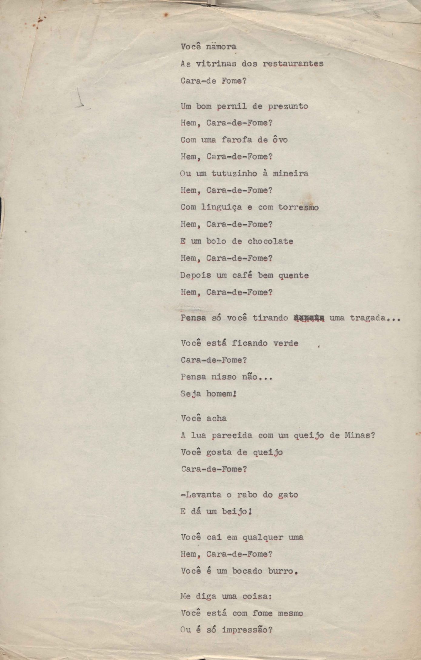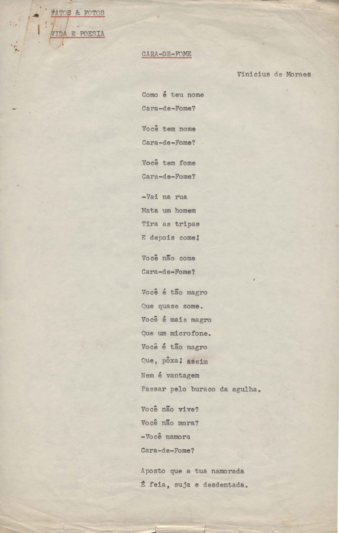 Poema. Há, no dossiê, vários rascunhos e poemas esparsos e inéditos. Alguns poemas do dossiê são encontrados também na primeira leva de documentos doados, e que faz parte do primeiro inventário. Na mesma página do poema "Quisera tanto" há o poema "Namorada". Há nota nos poemas: "Cada vez que eu penso nela", "O dia de Oxalá", "Menina, não banha nua" e "A morte sem pedágio".