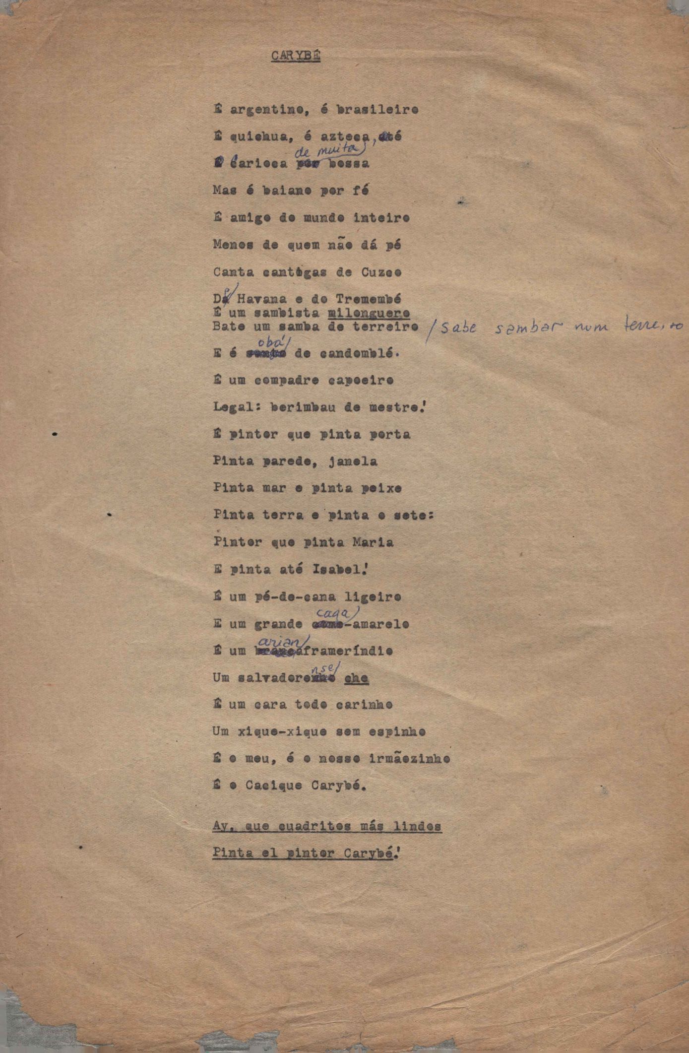 Poema. Há, no dossiê, vários rascunhos e poemas esparsos e inéditos. Alguns poemas do dossiê são encontrados também na primeira leva de documentos doados, e que faz parte do primeiro inventário. Na mesma página do poema "Quisera tanto" há o poema "Namorada". Há nota nos poemas: "Cada vez que eu penso nela", "O dia de Oxalá", "Menina, não banha nua" e "A morte sem pedágio".