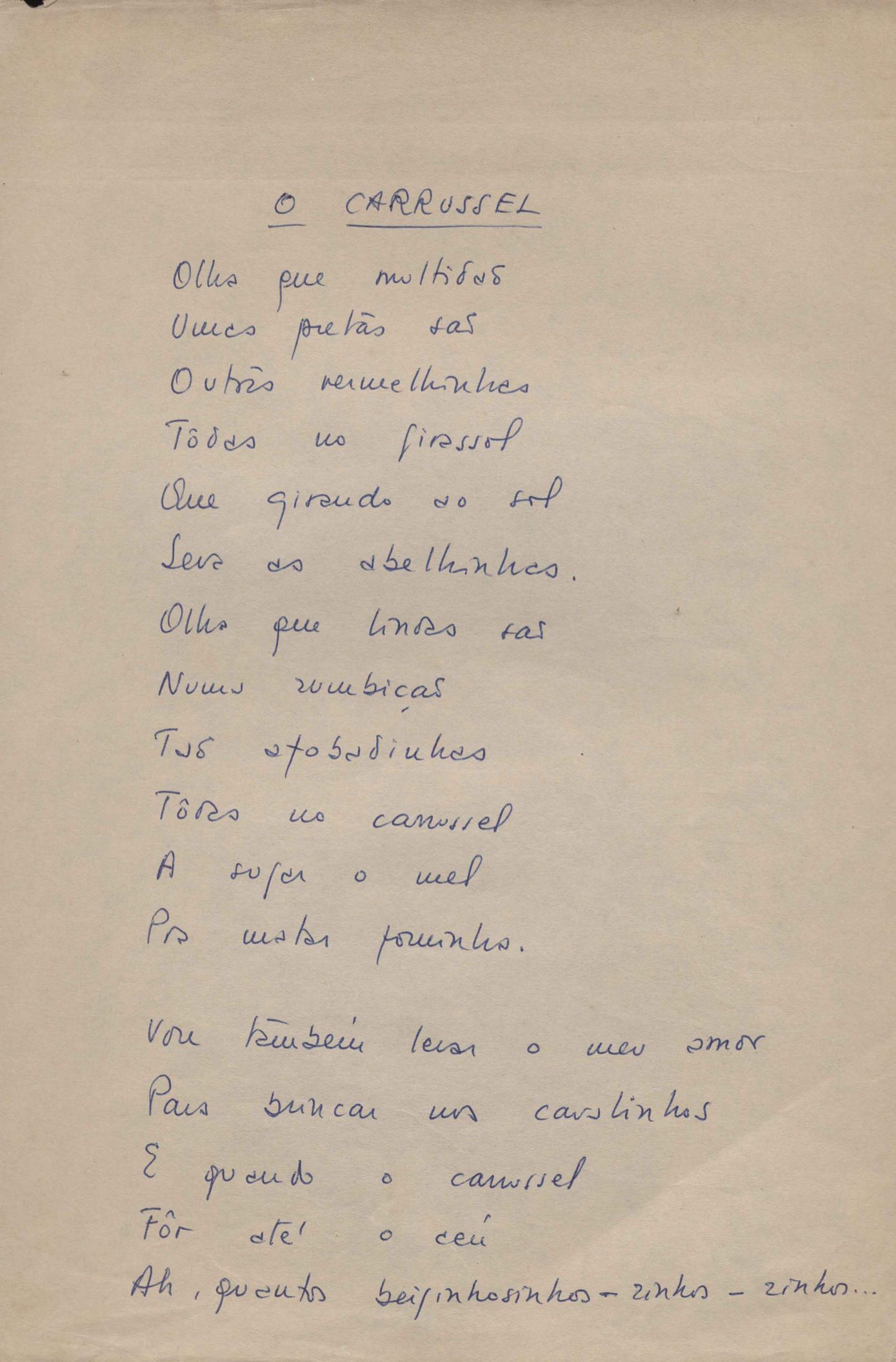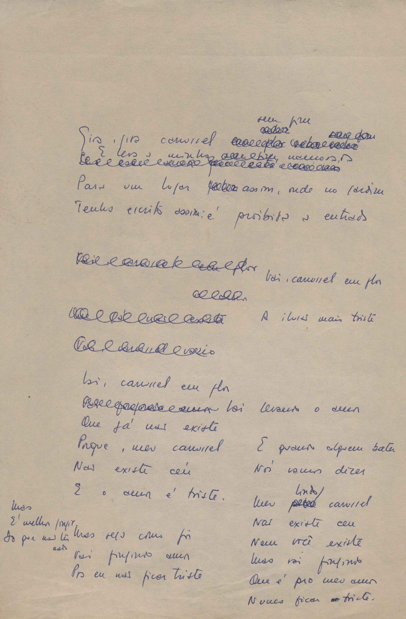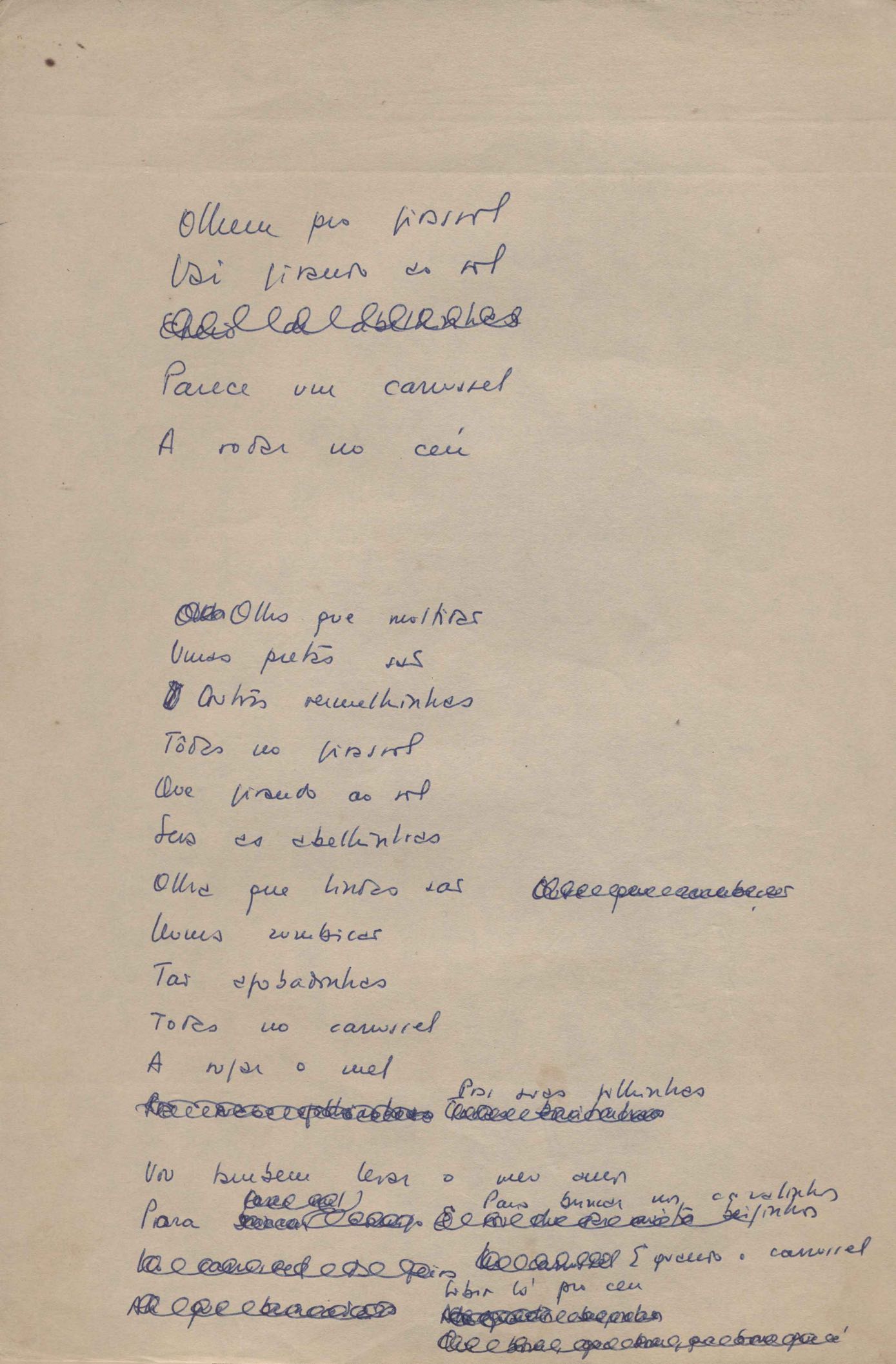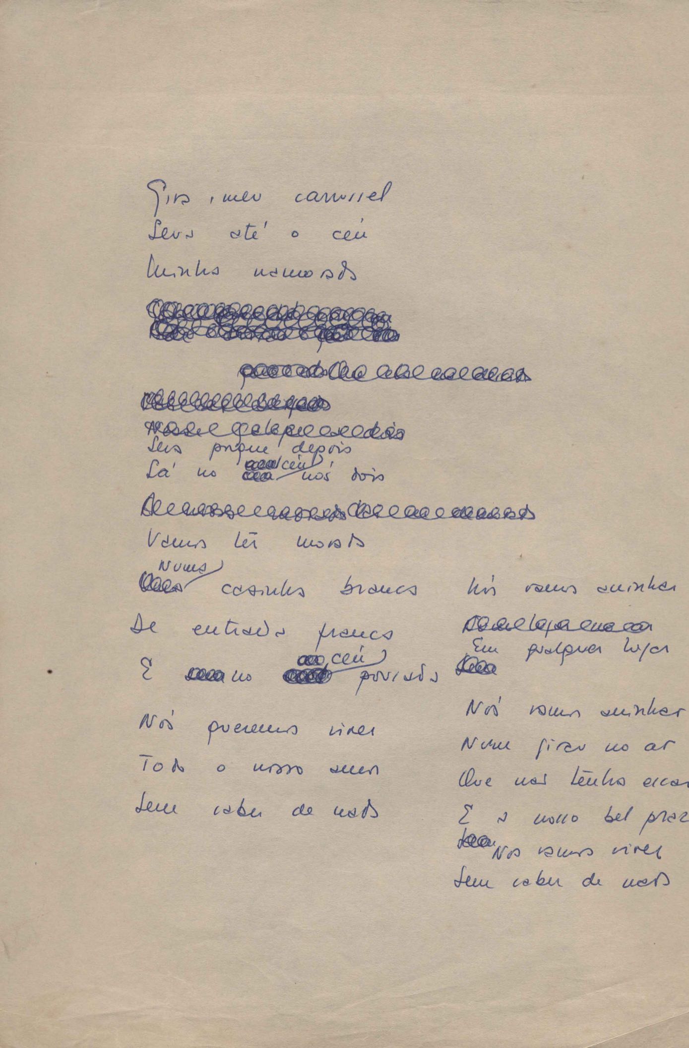 Poema. Há, no dossiê, vários rascunhos e poemas esparsos e inéditos. Alguns poemas do dossiê são encontrados também na primeira leva de documentos doados, e que faz parte do primeiro inventário. Na mesma página do poema "Quisera tanto" há o poema "Namorada". Há nota nos poemas: "Cada vez que eu penso nela", "O dia de Oxalá", "Menina, não banha nua" e "A morte sem pedágio".