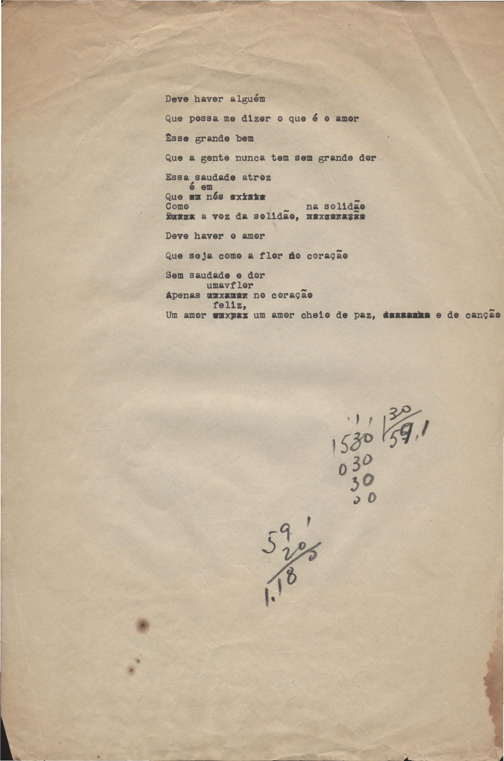 Poema. Há, no dossiê, vários rascunhos e poemas esparsos e inéditos. Alguns poemas do dossiê são encontrados também na primeira leva de documentos doados, e que faz parte do primeiro inventário. Na mesma página do poema "Quisera tanto" há o poema "Namorada". Há nota nos poemas: "Cada vez que eu penso nela", "O dia de Oxalá", "Menina, não banha nua" e "A morte sem pedágio".