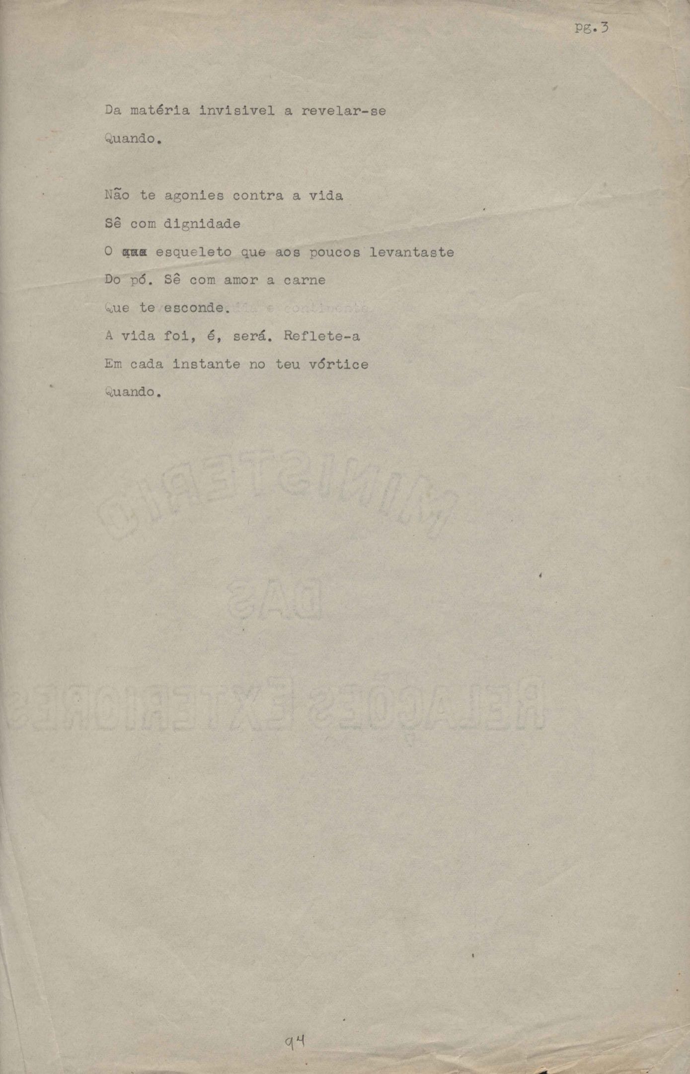 Poema. Há, no dossiê, vários rascunhos e poemas esparsos e inéditos. Alguns poemas do dossiê são encontrados também na primeira leva de documentos doados, e que faz parte do primeiro inventário. Na mesma página do poema "Quisera tanto" há o poema "Namorada". Há nota nos poemas: "Cada vez que eu penso nela", "O dia de Oxalá", "Menina, não banha nua" e "A morte sem pedágio".