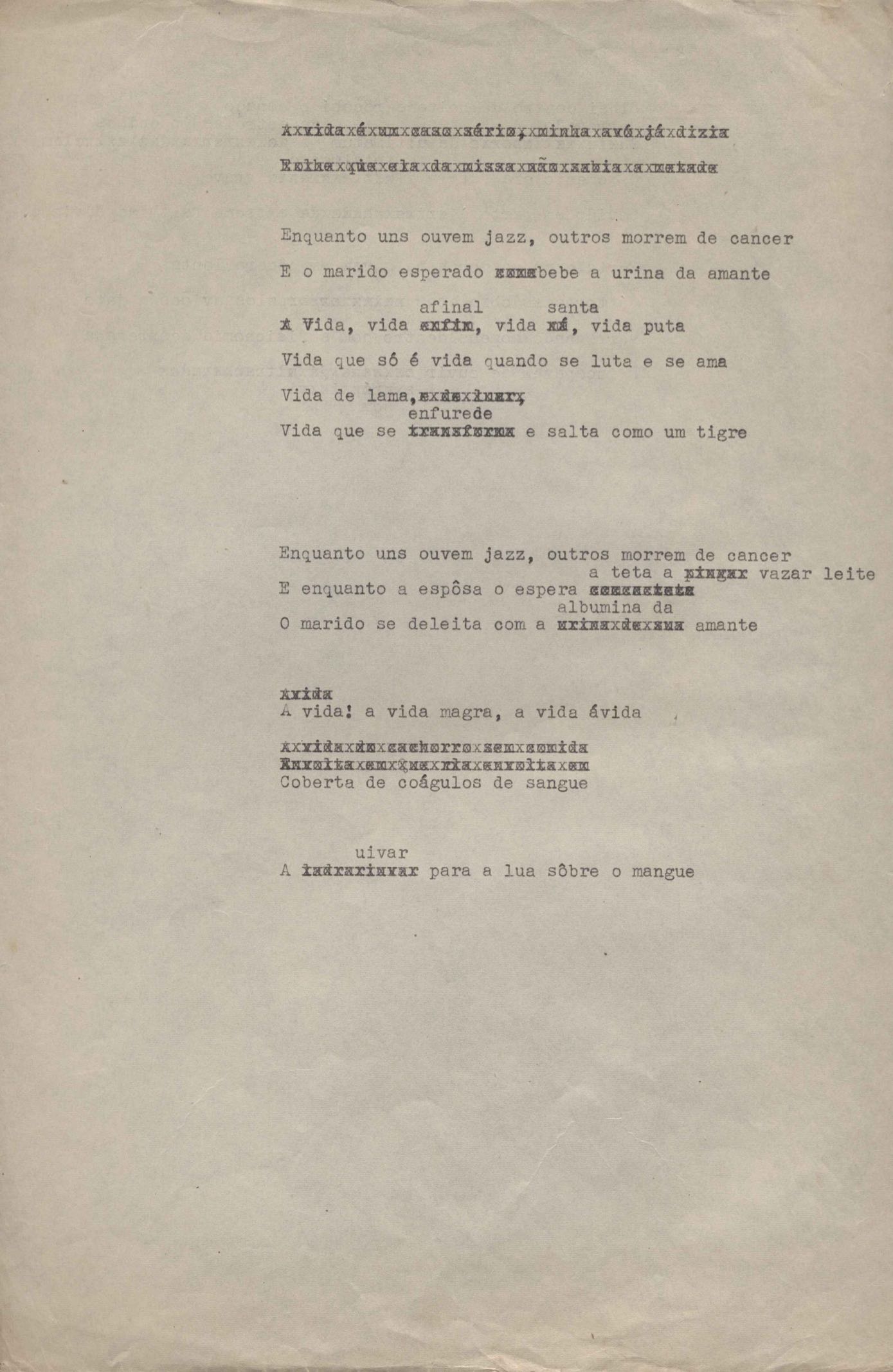 Poema. Há, no dossiê, vários rascunhos e poemas esparsos e inéditos. Alguns poemas do dossiê são encontrados também na primeira leva de documentos doados, e que faz parte do primeiro inventário. Na mesma página do poema "Quisera tanto" há o poema "Namorada". Há nota nos poemas: "Cada vez que eu penso nela", "O dia de Oxalá", "Menina, não banha nua" e "A morte sem pedágio".
