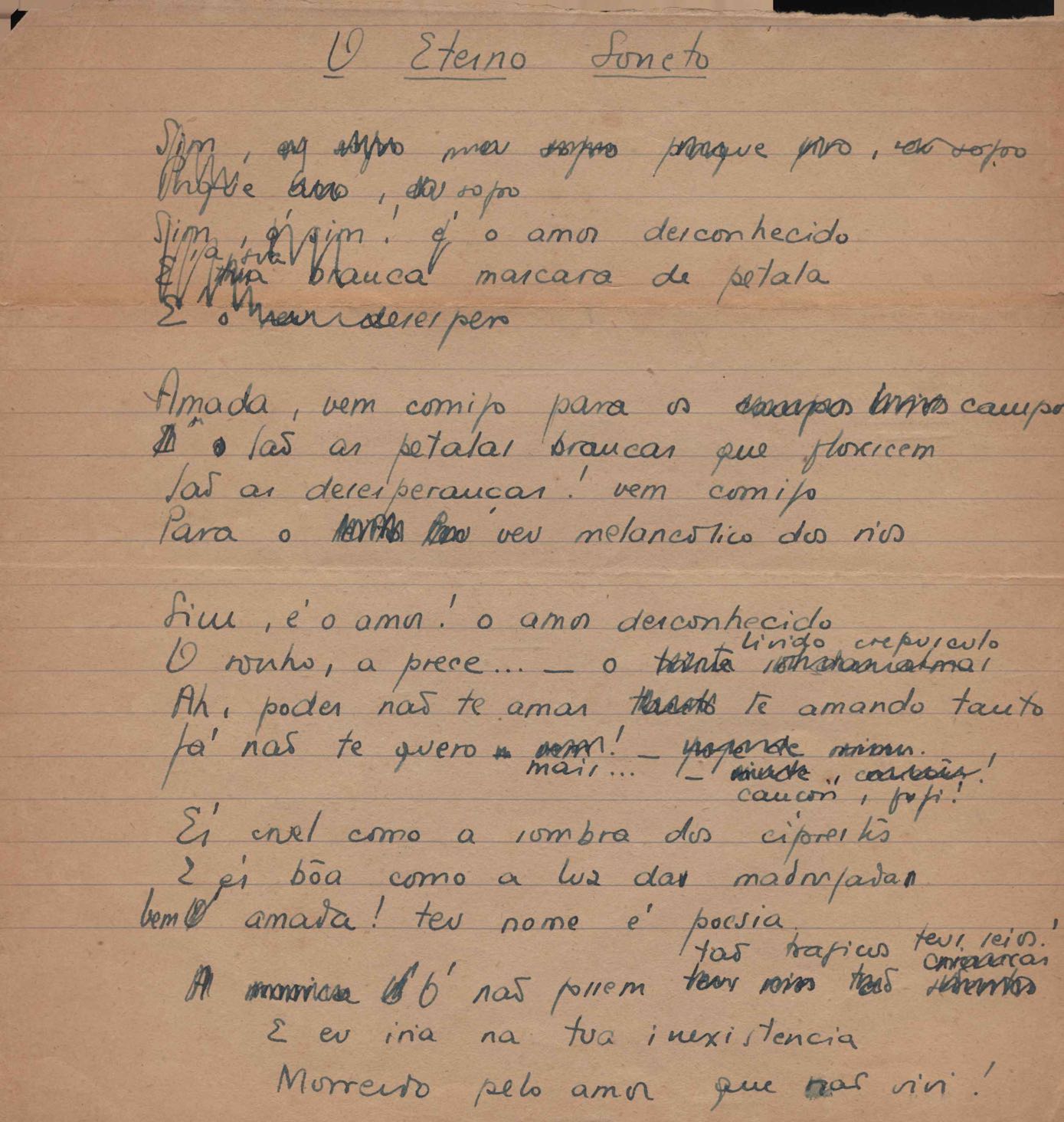 Poema. Há, no dossiê, vários rascunhos e poemas esparsos e inéditos. Alguns poemas do dossiê são encontrados também na primeira leva de documentos doados, e que faz parte do primeiro inventário. Na mesma página do poema "Quisera tanto" há o poema "Namorada". Há nota nos poemas: "Cada vez que eu penso nela", "O dia de Oxalá", "Menina, não banha nua" e "A morte sem pedágio".