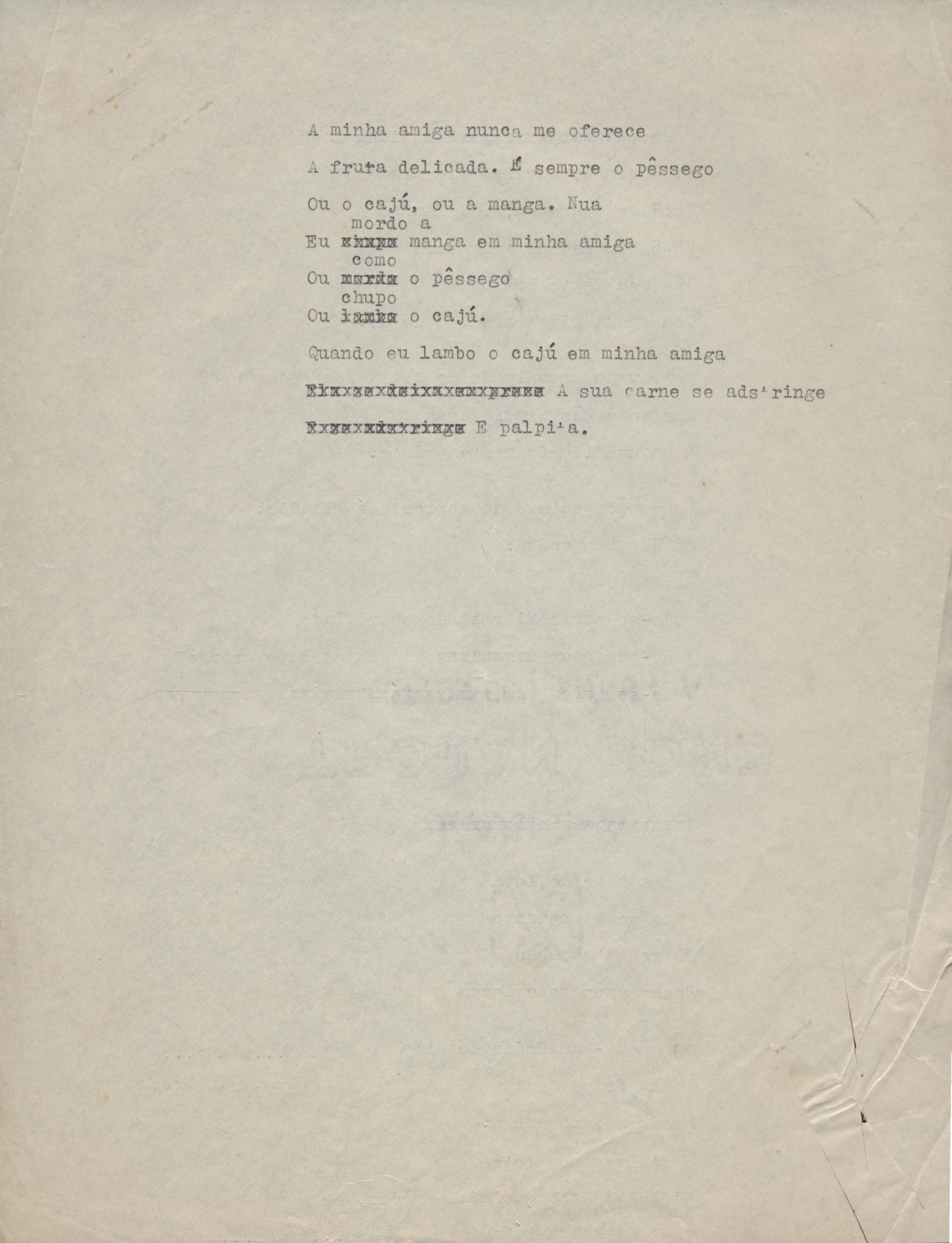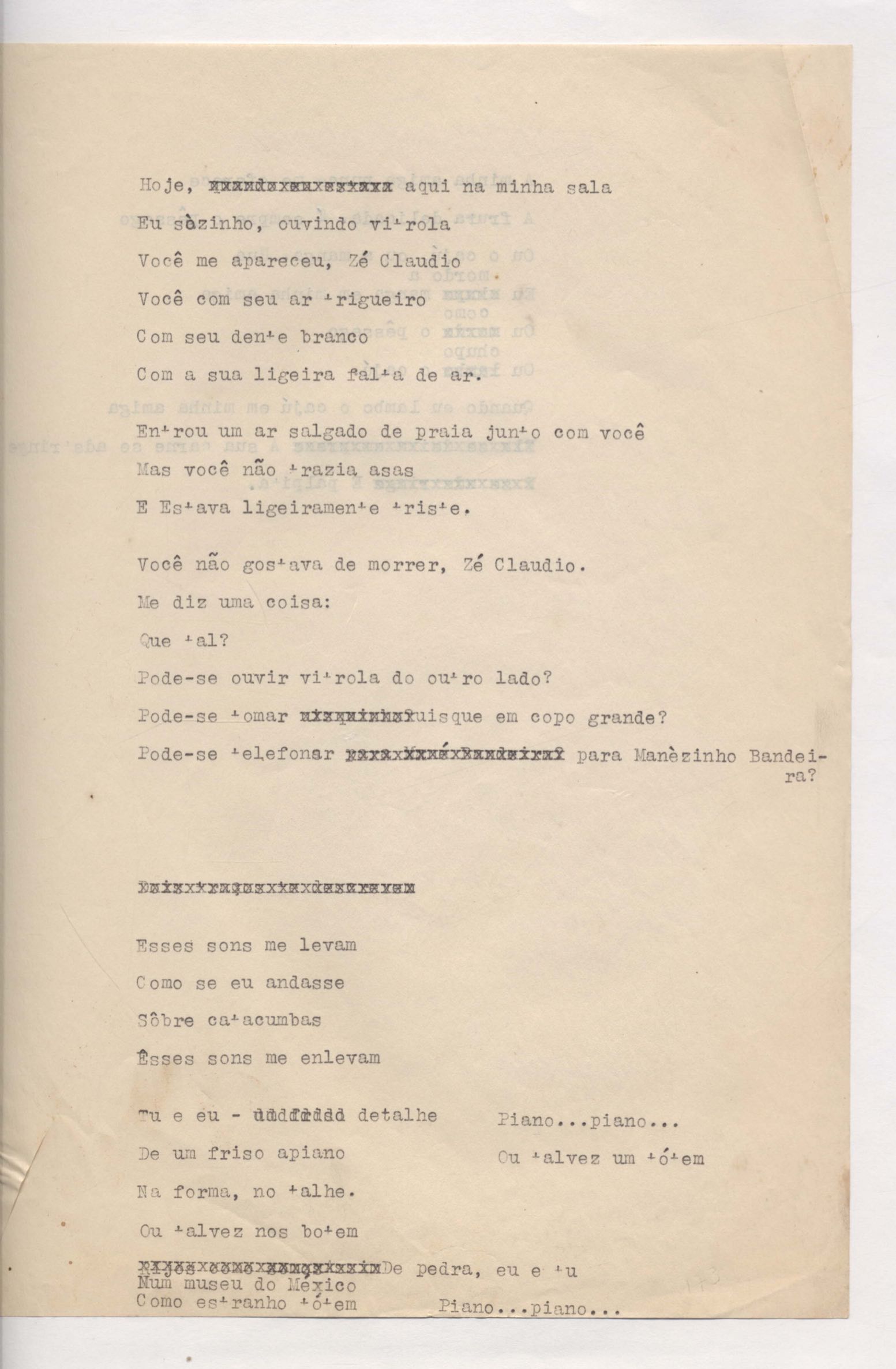 Poema. Há, no dossiê, vários rascunhos e poemas esparsos e inéditos. Alguns poemas do dossiê são encontrados também na primeira leva de documentos doados, e que faz parte do primeiro inventário. Na mesma página do poema "Quisera tanto" há o poema "Namorada". Há nota nos poemas: "Cada vez que eu penso nela", "O dia de Oxalá", "Menina, não banha nua" e "A morte sem pedágio".