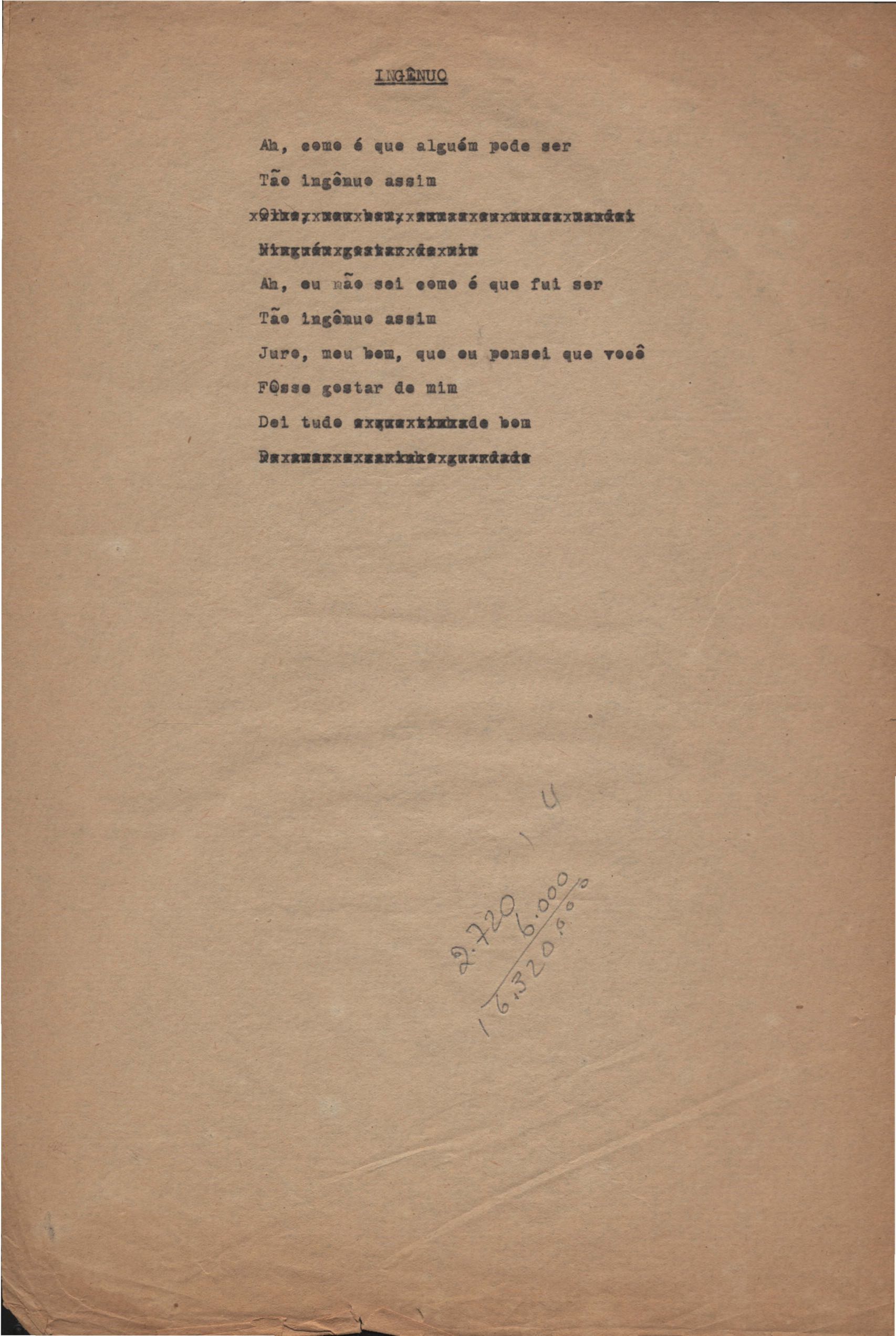 Poema. Há, no dossiê, vários rascunhos e poemas esparsos e inéditos. Alguns poemas do dossiê são encontrados também na primeira leva de documentos doados, e que faz parte do primeiro inventário. Na mesma página do poema "Quisera tanto" há o poema "Namorada". Há nota nos poemas: "Cada vez que eu penso nela", "O dia de Oxalá", "Menina, não banha nua" e "A morte sem pedágio".