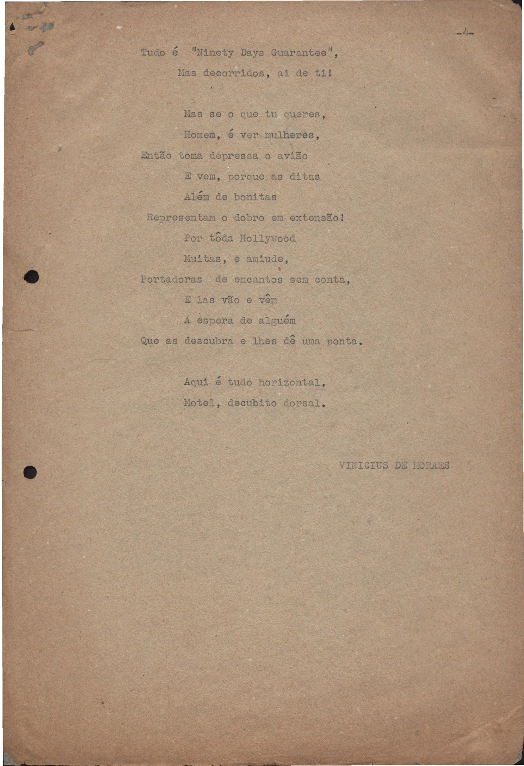 Poema. Há, no dossiê, vários rascunhos e poemas esparsos e inéditos. Alguns poemas do dossiê são encontrados também na primeira leva de documentos doados, e que faz parte do primeiro inventário. Na mesma página do poema "Quisera tanto" há o poema "Namorada". Há nota nos poemas: "Cada vez que eu penso nela", "O dia de Oxalá", "Menina, não banha nua" e "A morte sem pedágio".