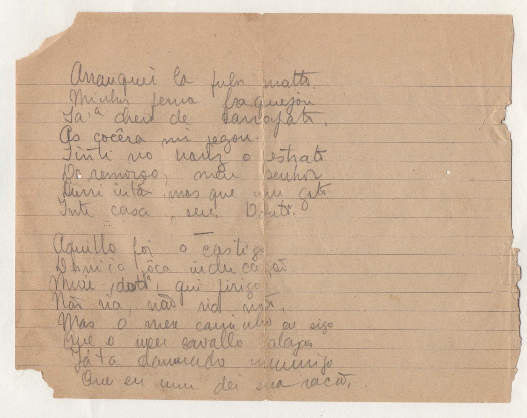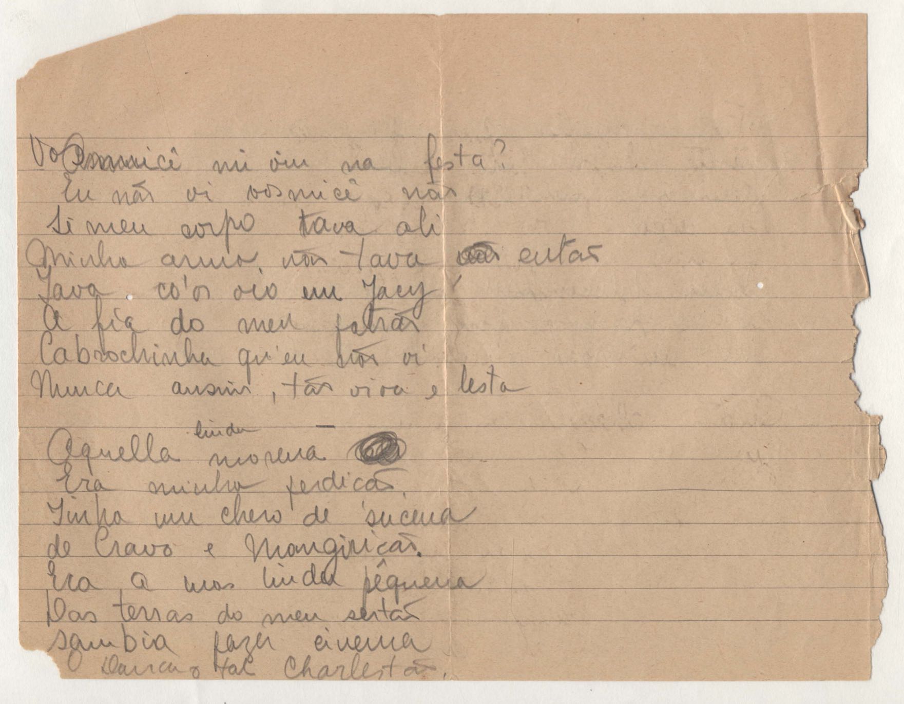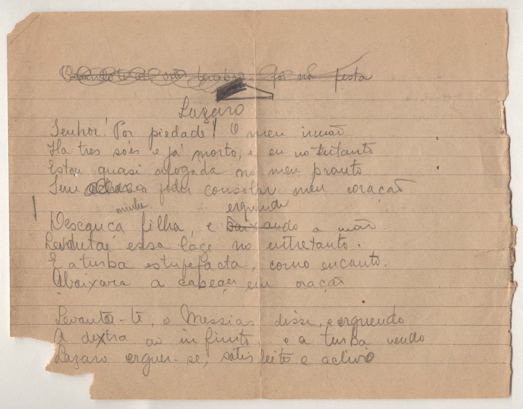 Poema. Há, no dossiê, vários rascunhos e poemas esparsos e inéditos. Alguns poemas do dossiê são encontrados também na primeira leva de documentos doados, e que faz parte do primeiro inventário. Na mesma página do poema "Quisera tanto" há o poema "Namorada". Há nota nos poemas: "Cada vez que eu penso nela", "O dia de Oxalá", "Menina, não banha nua" e "A morte sem pedágio".