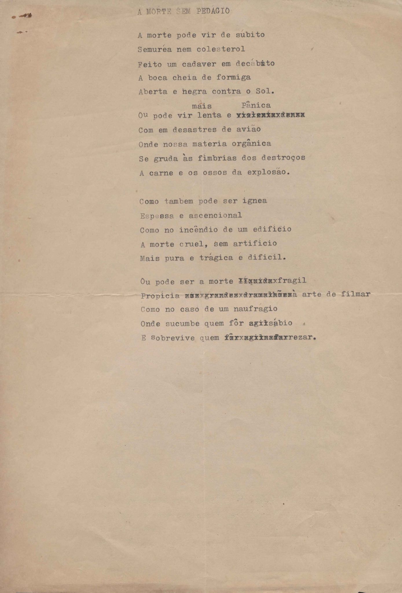 Poema. Há, no dossiê, vários rascunhos e poemas esparsos e inéditos. Alguns poemas do dossiê são encontrados também na primeira leva de documentos doados, e que faz parte do primeiro inventário. Na mesma página do poema "Quisera tanto" há o poema "Namorada". Há nota nos poemas: "Cada vez que eu penso nela", "O dia de Oxalá", "Menina, não banha nua" e "A morte sem pedágio".