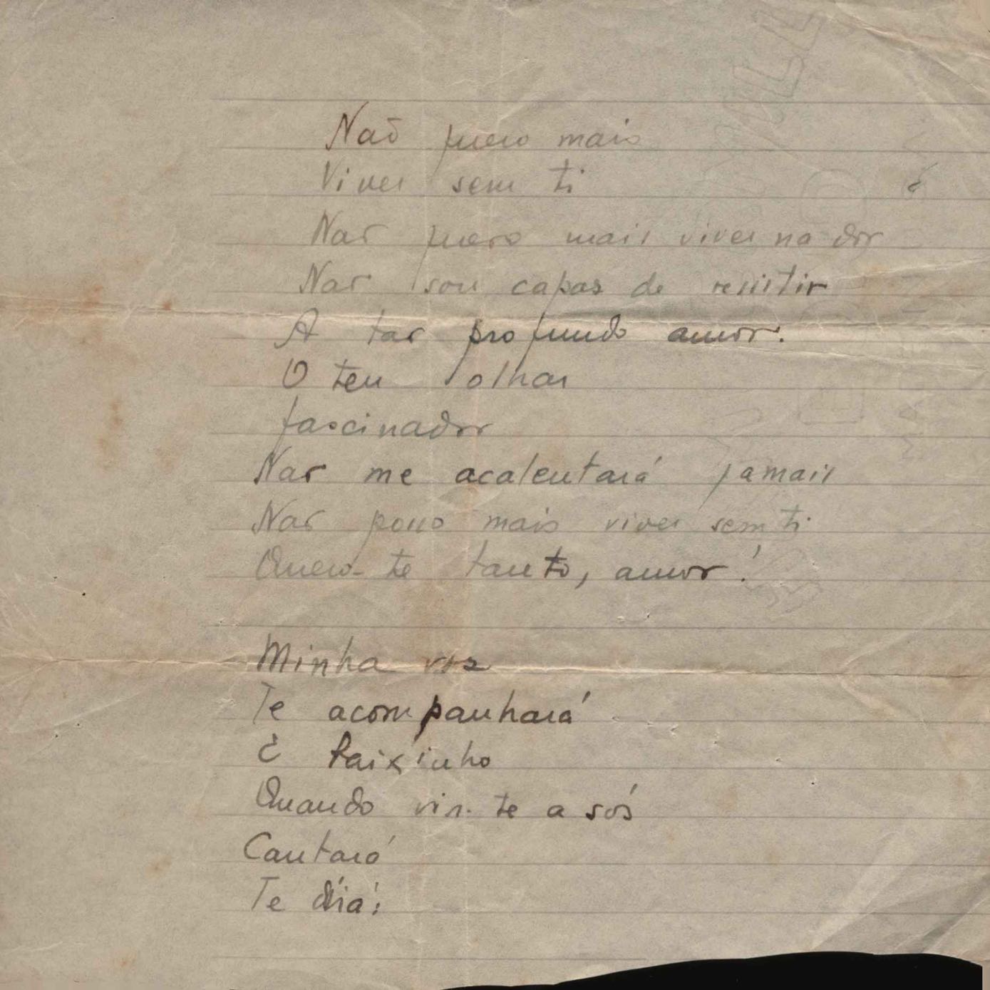 Poema. Há, no dossiê, vários rascunhos e poemas esparsos e inéditos. Alguns poemas do dossiê são encontrados também na primeira leva de documentos doados, e que faz parte do primeiro inventário. Na mesma página do poema "Quisera tanto" há o poema "Namorada". Há nota nos poemas: "Cada vez que eu penso nela", "O dia de Oxalá", "Menina, não banha nua" e "A morte sem pedágio".
