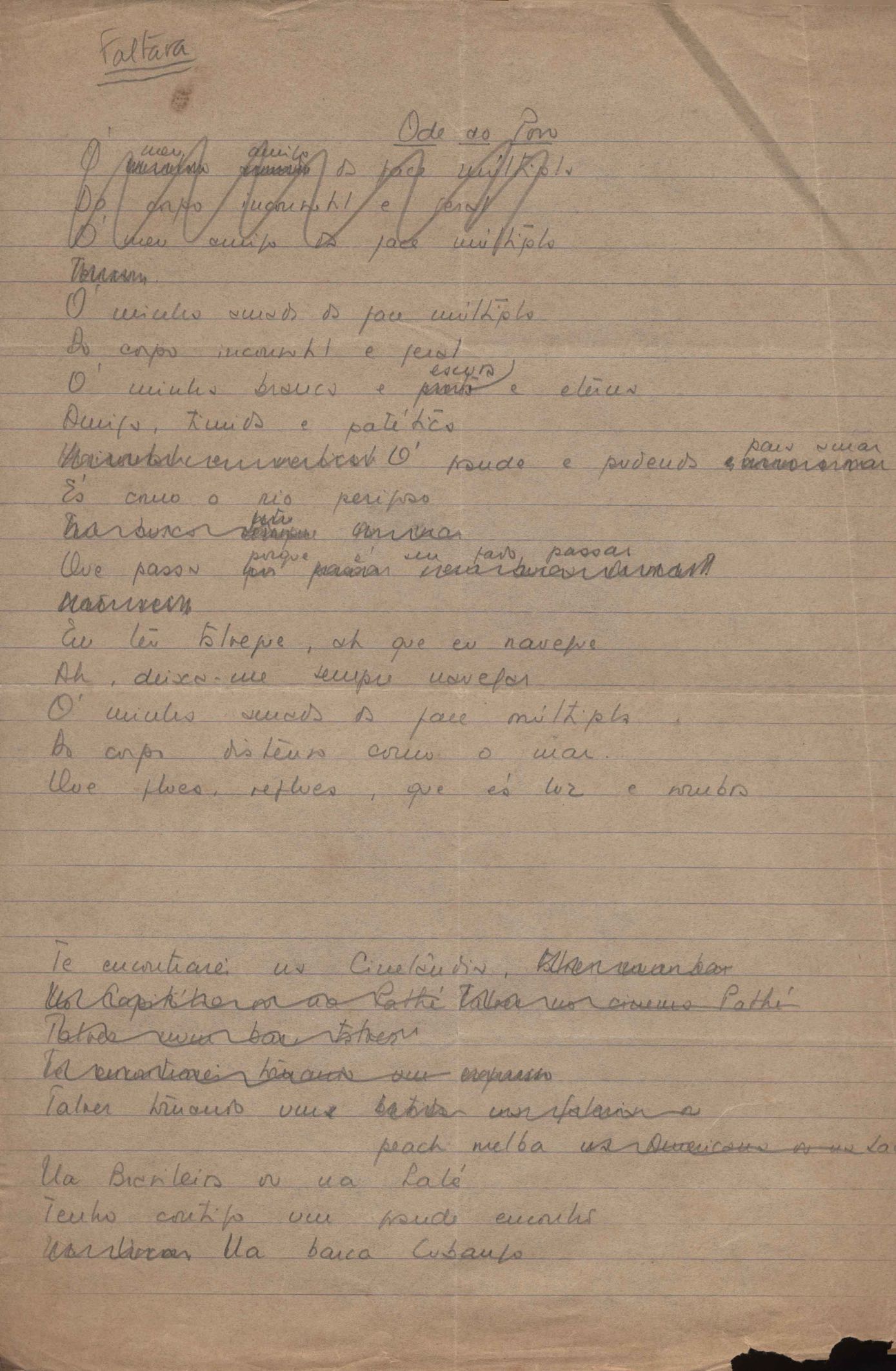 Poema. Há, no dossiê, vários rascunhos e poemas esparsos e inéditos. Alguns poemas do dossiê são encontrados também na primeira leva de documentos doados, e que faz parte do primeiro inventário. Na mesma página do poema "Quisera tanto" há o poema "Namorada". Há nota nos poemas: "Cada vez que eu penso nela", "O dia de Oxalá", "Menina, não banha nua" e "A morte sem pedágio".