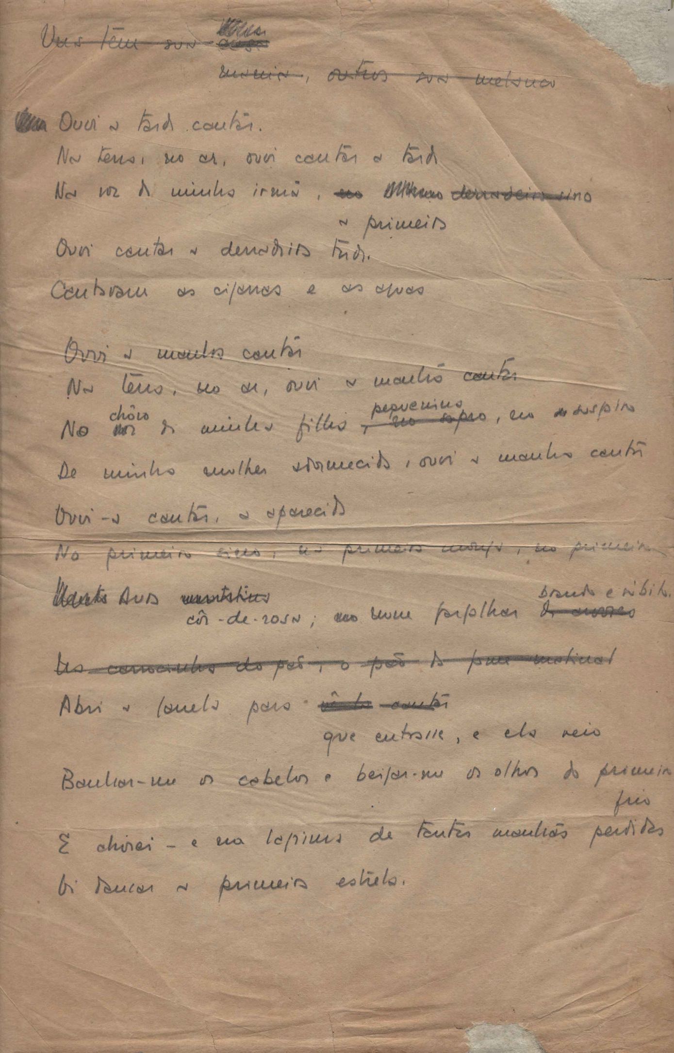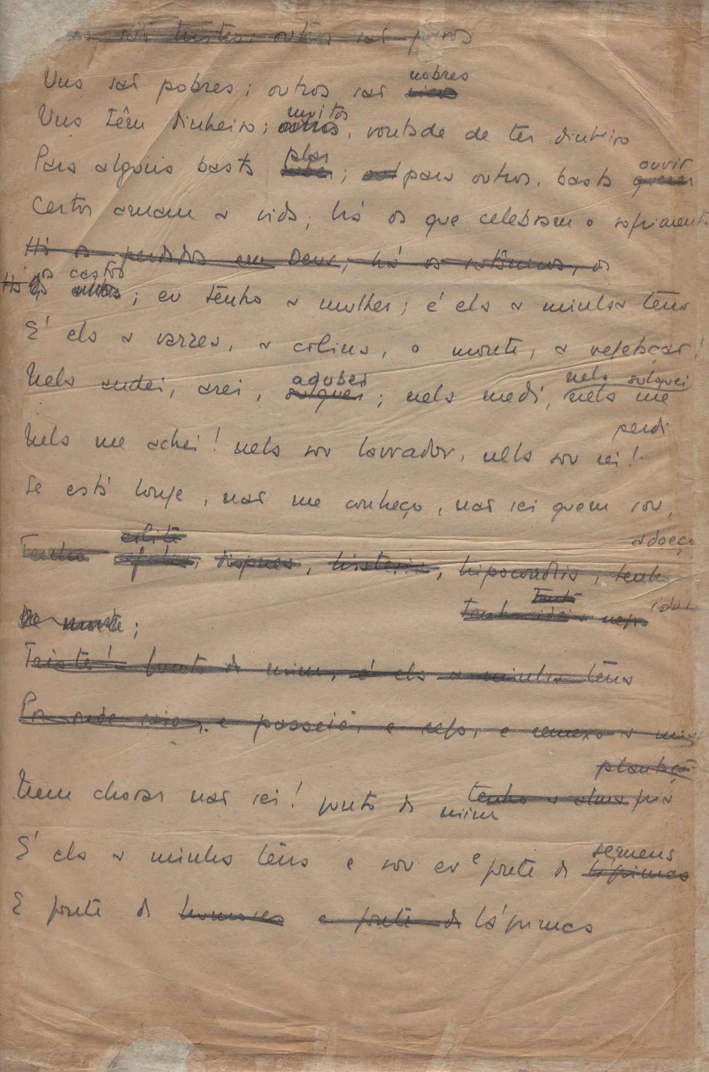 Poema. Há, no dossiê, vários rascunhos e poemas esparsos e inéditos. Alguns poemas do dossiê são encontrados também na primeira leva de documentos doados, e que faz parte do primeiro inventário. Na mesma página do poema "Quisera tanto" há o poema "Namorada". Há nota nos poemas: "Cada vez que eu penso nela", "O dia de Oxalá", "Menina, não banha nua" e "A morte sem pedágio".