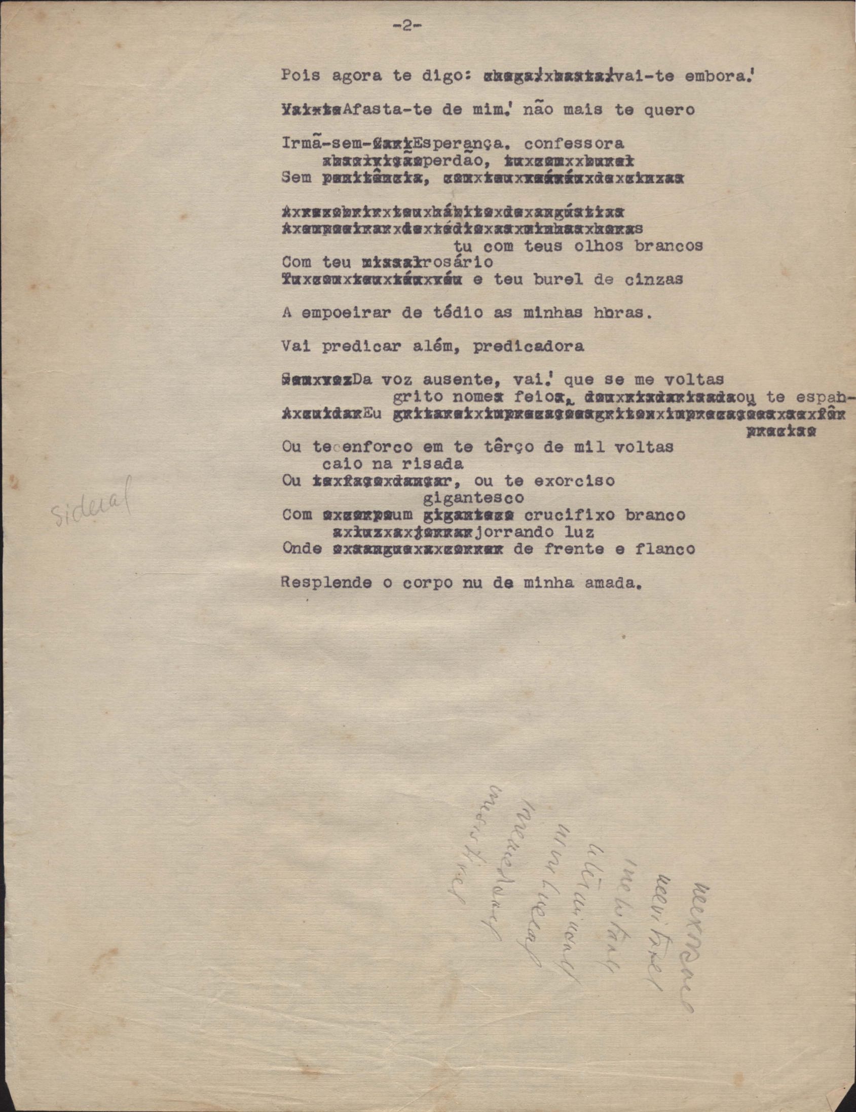 Poema. Há, no dossiê, vários rascunhos e poemas esparsos e inéditos. Alguns poemas do dossiê são encontrados também na primeira leva de documentos doados, e que faz parte do primeiro inventário. Na mesma página do poema "Quisera tanto" há o poema "Namorada". Há nota nos poemas: "Cada vez que eu penso nela", "O dia de Oxalá", "Menina, não banha nua" e "A morte sem pedágio".