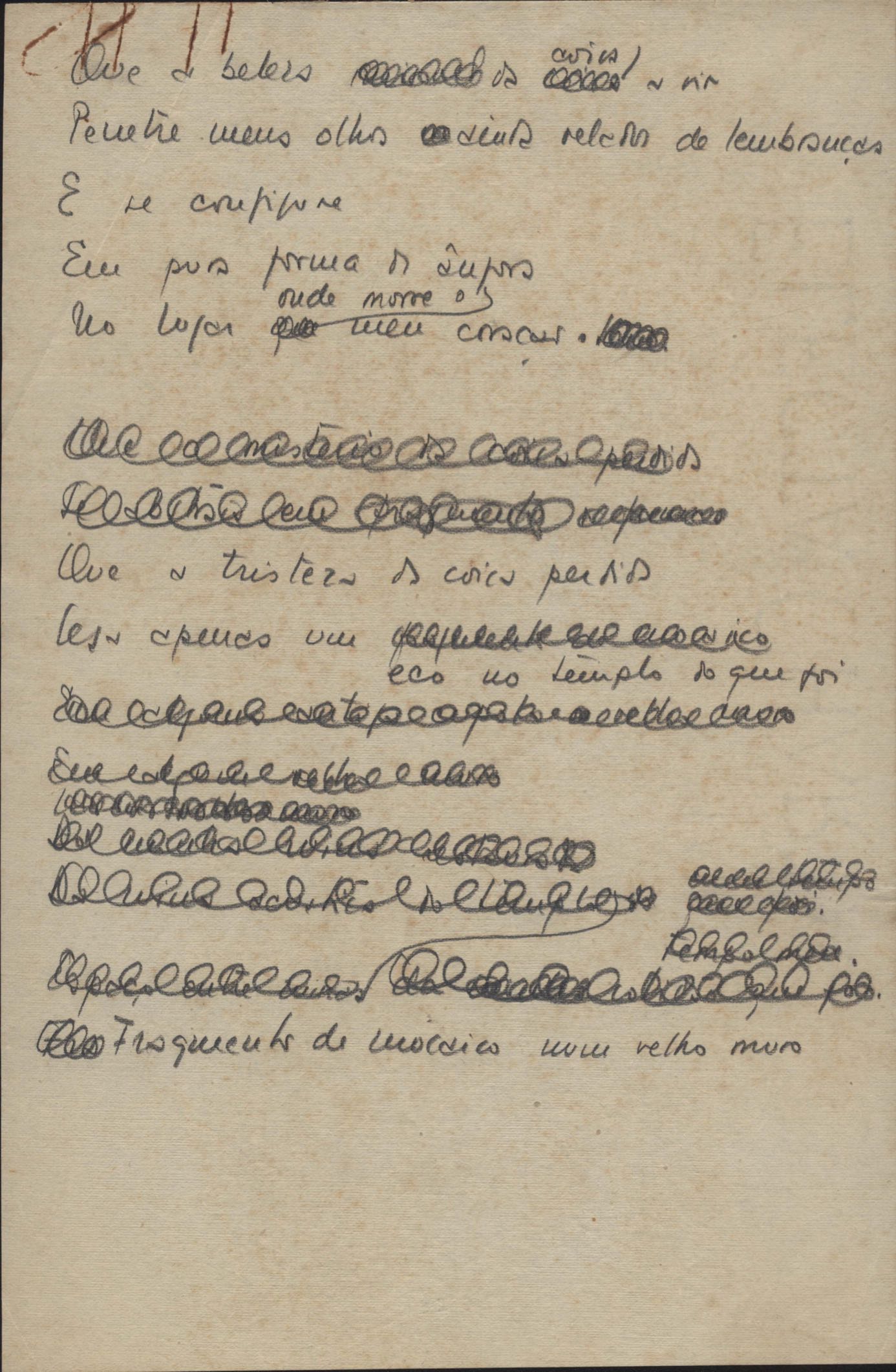 Poema. Há, no dossiê, vários rascunhos e poemas esparsos e inéditos. Alguns poemas do dossiê são encontrados também na primeira leva de documentos doados, e que faz parte do primeiro inventário. Na mesma página do poema "Quisera tanto" há o poema "Namorada". Há nota nos poemas: "Cada vez que eu penso nela", "O dia de Oxalá", "Menina, não banha nua" e "A morte sem pedágio".