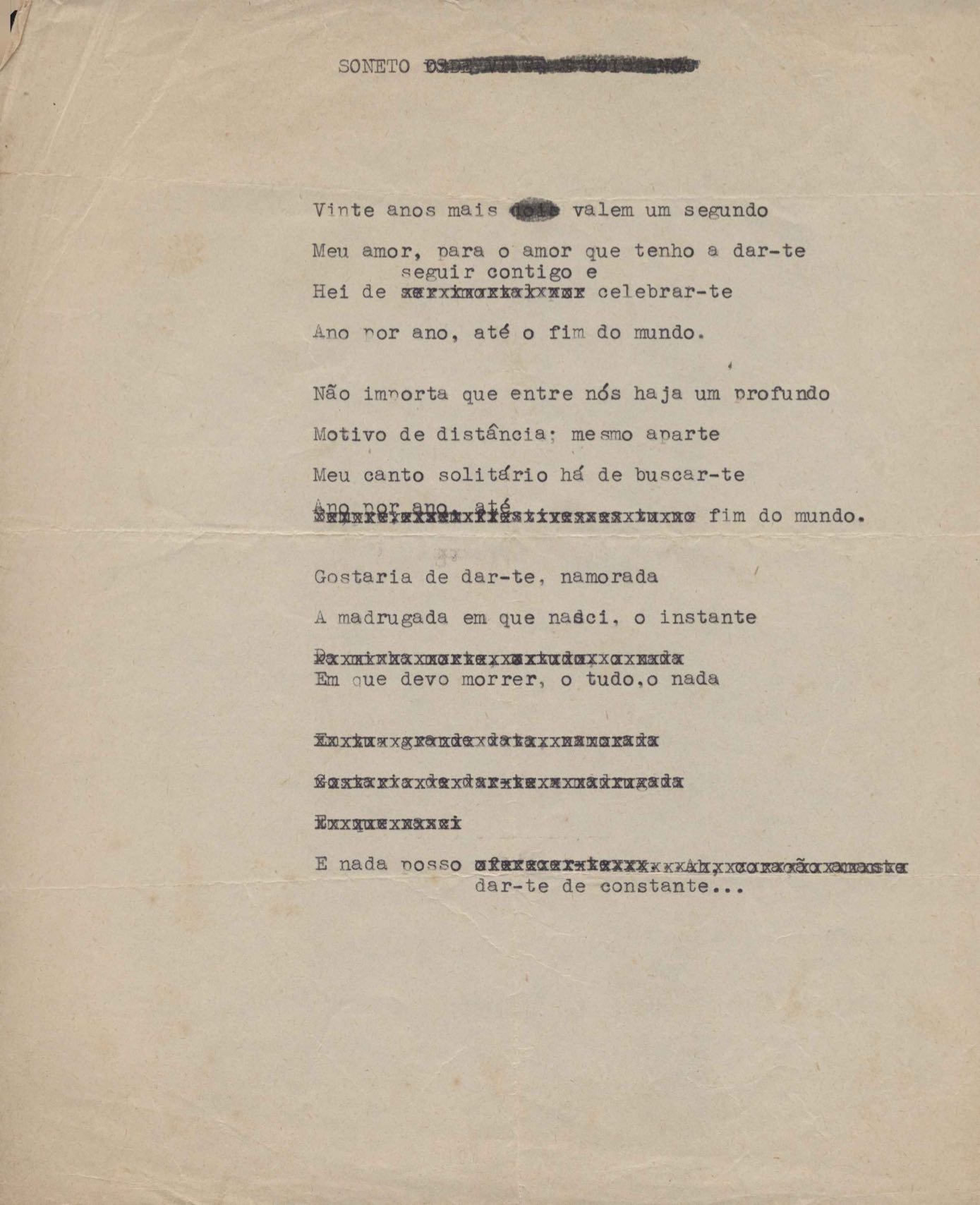 Poema. Há, no dossiê, vários rascunhos e poemas esparsos e inéditos. Alguns poemas do dossiê são encontrados também na primeira leva de documentos doados, e que faz parte do primeiro inventário. Na mesma página do poema "Quisera tanto" há o poema "Namorada". Há nota nos poemas: "Cada vez que eu penso nela", "O dia de Oxalá", "Menina, não banha nua" e "A morte sem pedágio".