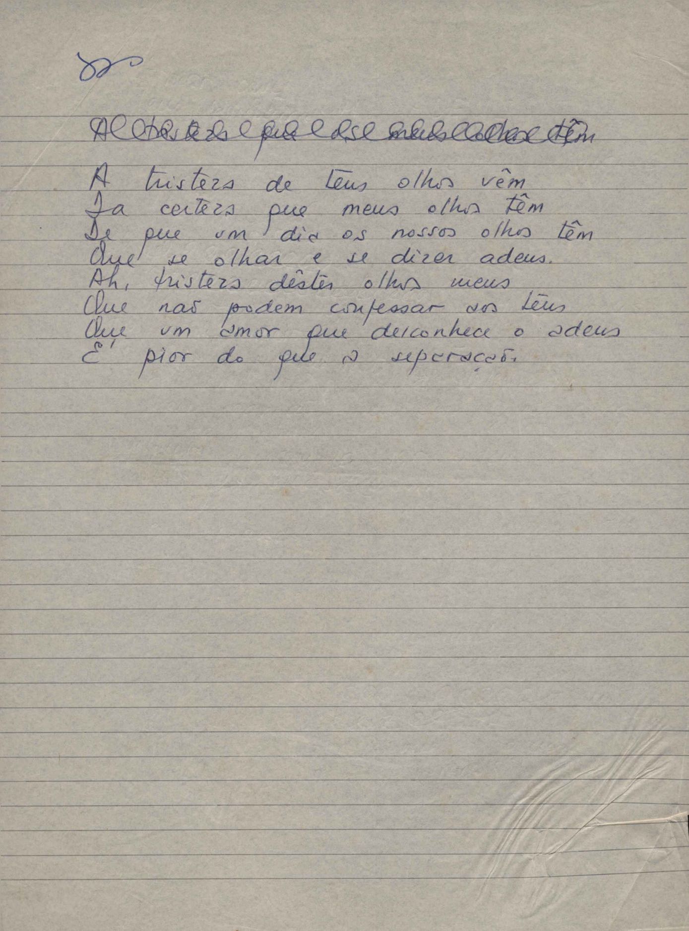 "A tristeza de teus olhos vêm (sic)"