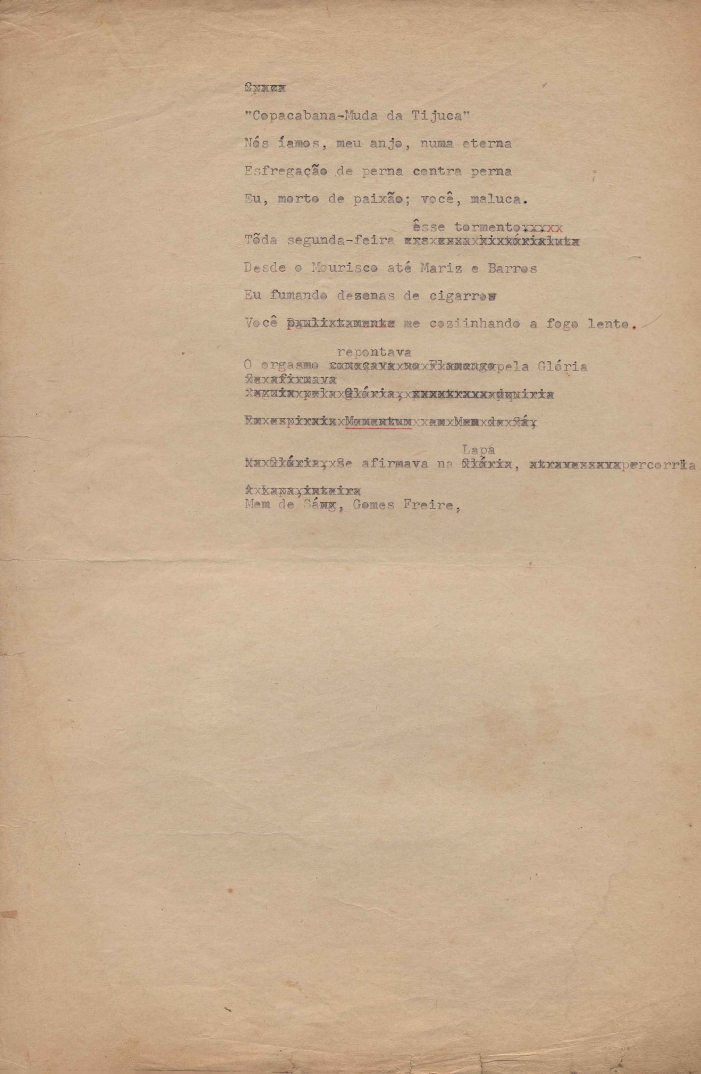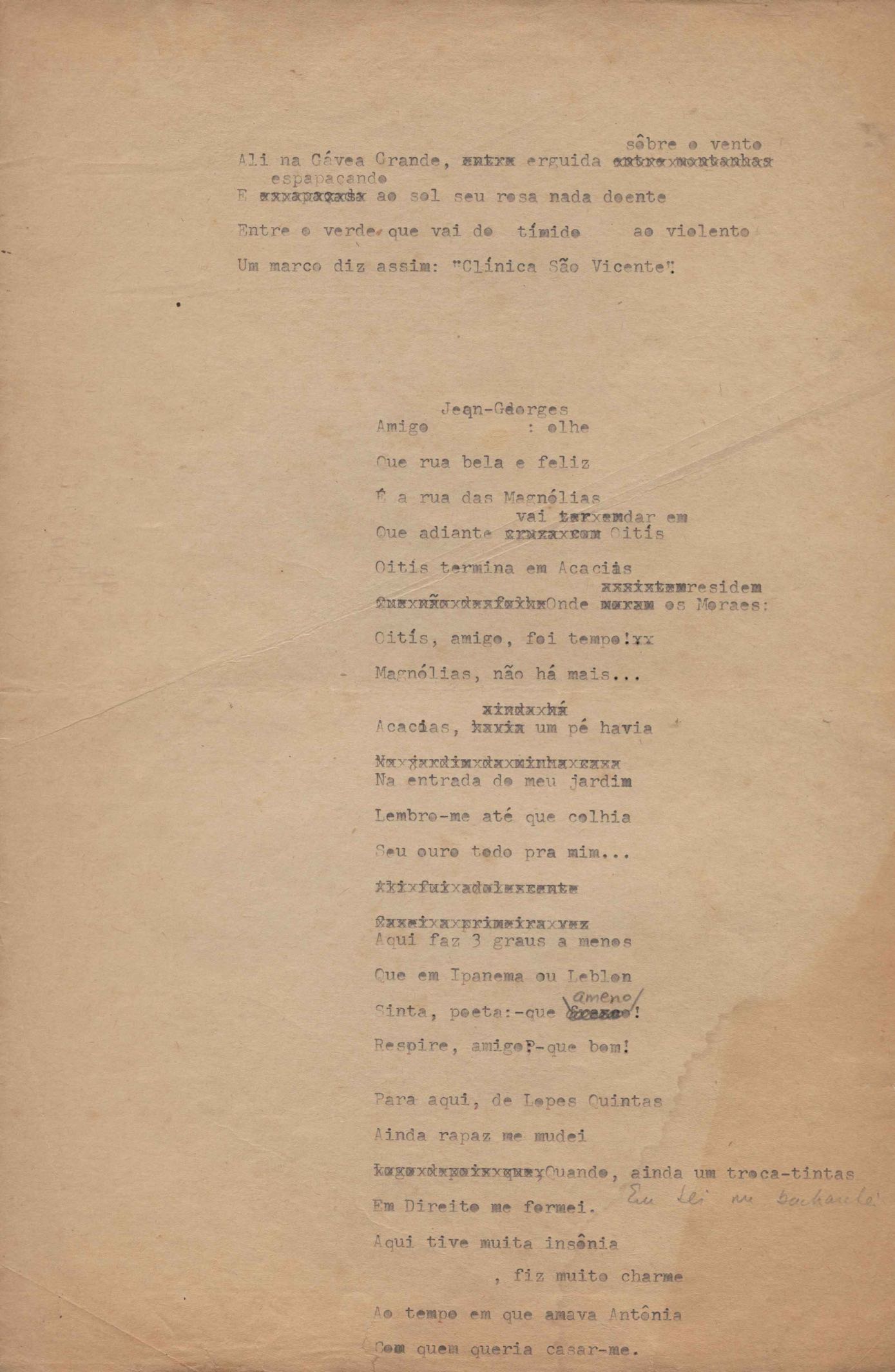 Poema. Há, no dossiê, vários rascunhos e poemas esparsos e inéditos. Alguns poemas do dossiê são encontrados também na primeira leva de documentos doados, e que faz parte do primeiro inventário. Na mesma página do poema "Quisera tanto" há o poema "Namorada". Há nota nos poemas: "Cada vez que eu penso nela", "O dia de Oxalá", "Menina, não banha nua" e "A morte sem pedágio".