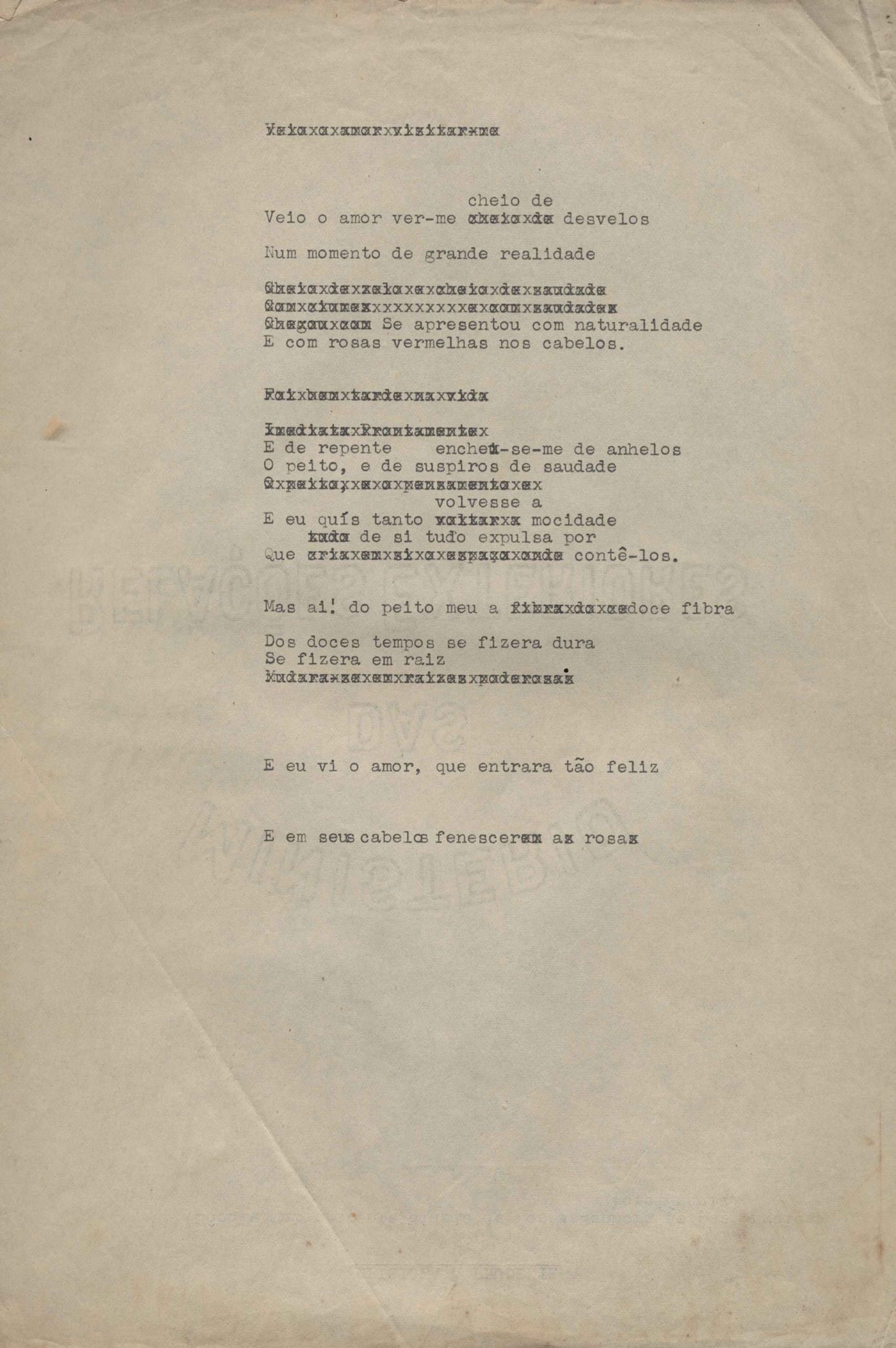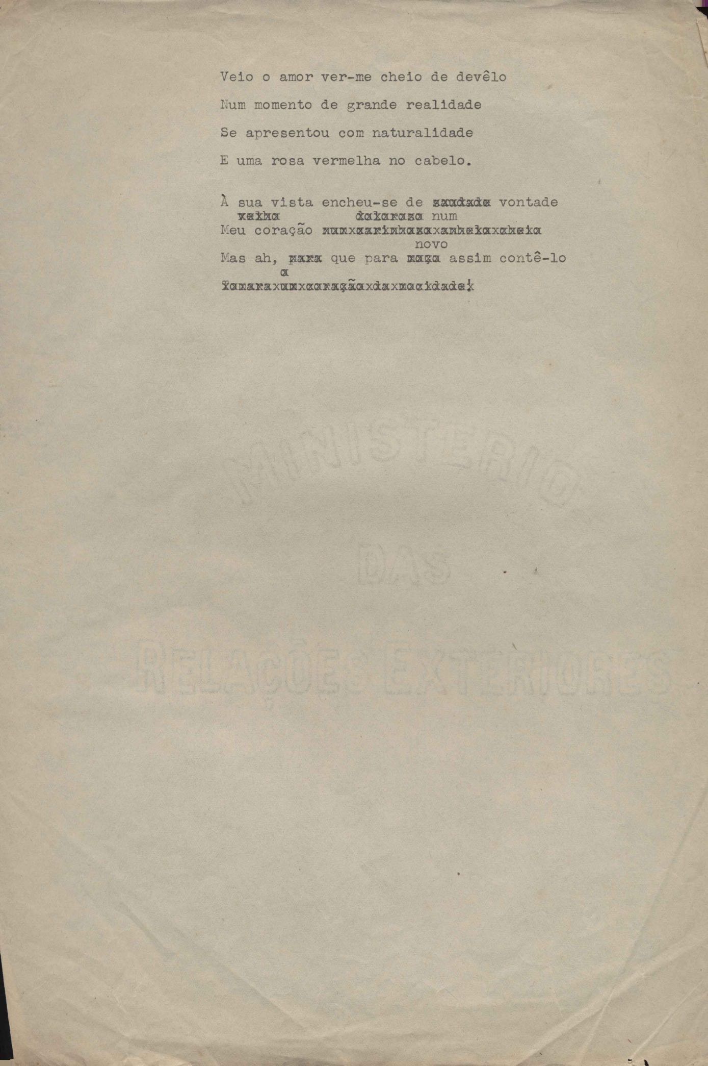 Poema. Há, no dossiê, vários rascunhos e poemas esparsos e inéditos. Alguns poemas do dossiê são encontrados também na primeira leva de documentos doados, e que faz parte do primeiro inventário. Na mesma página do poema "Quisera tanto" há o poema "Namorada". Há nota nos poemas: "Cada vez que eu penso nela", "O dia de Oxalá", "Menina, não banha nua" e "A morte sem pedágio".