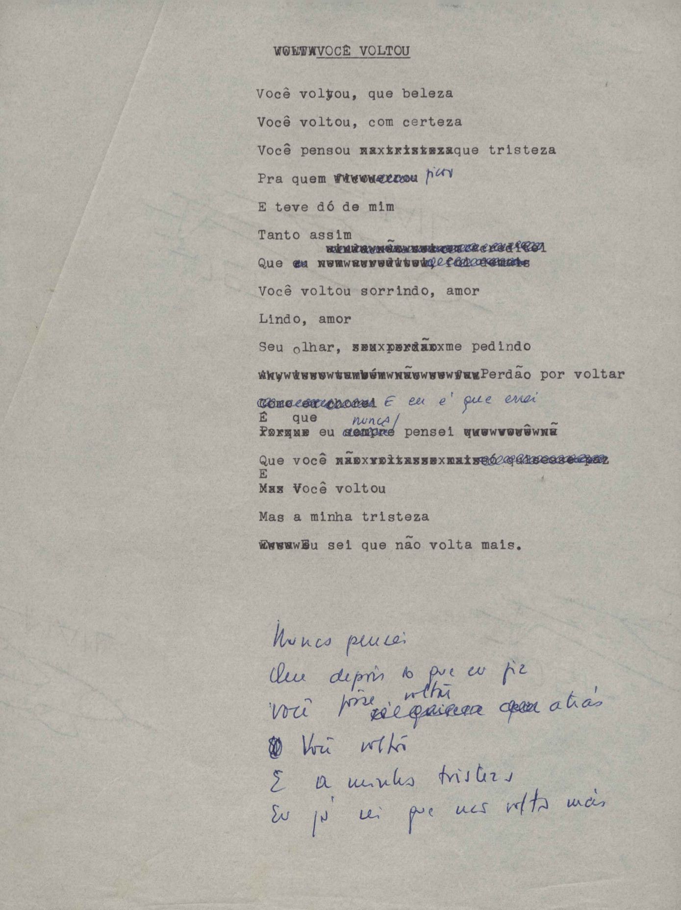Poema. Há, no dossiê, vários rascunhos e poemas esparsos e inéditos. Alguns poemas do dossiê são encontrados também na primeira leva de documentos doados, e que faz parte do primeiro inventário. Na mesma página do poema "Quisera tanto" há o poema "Namorada". Há nota nos poemas: "Cada vez que eu penso nela", "O dia de Oxalá", "Menina, não banha nua" e "A morte sem pedágio".