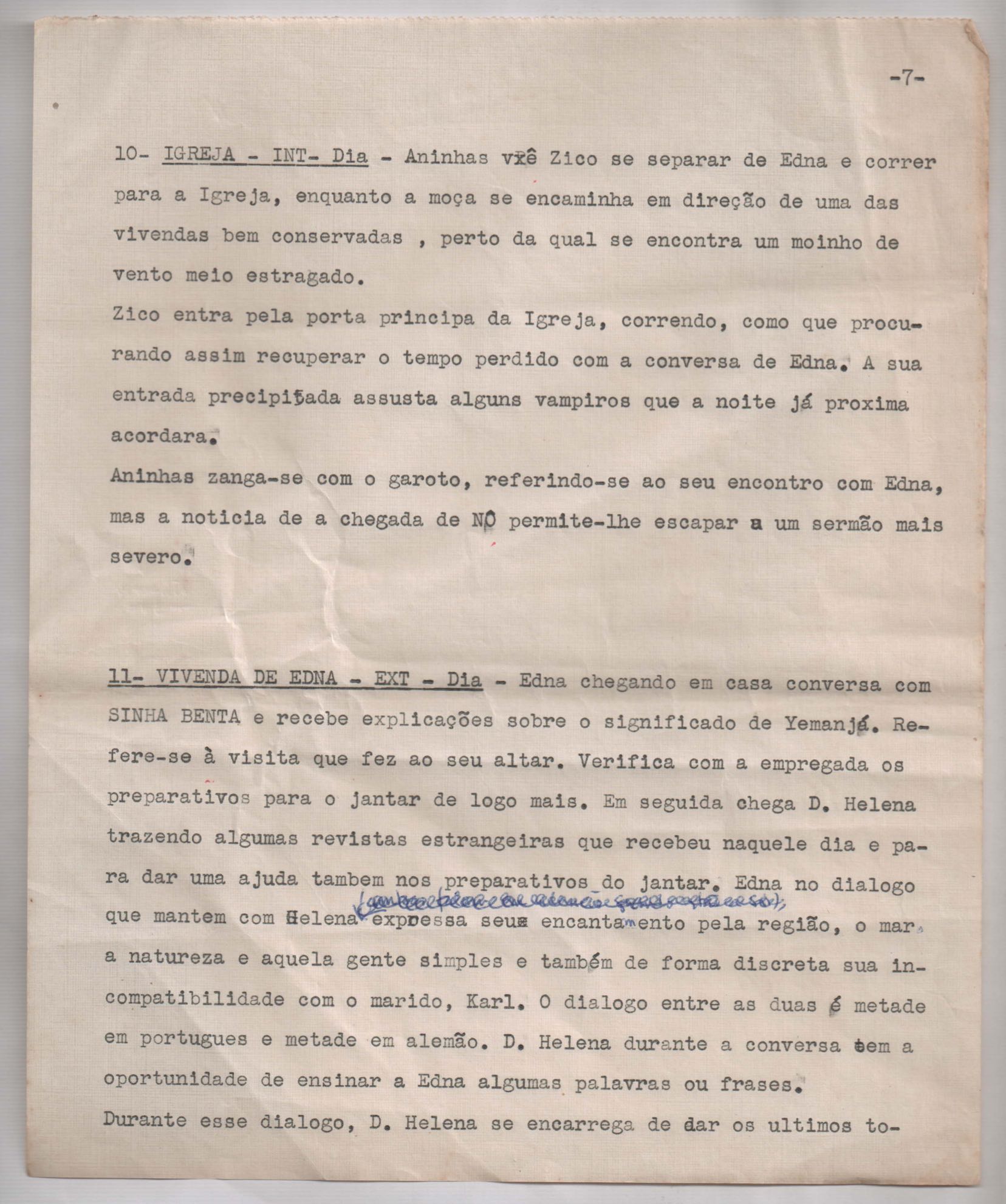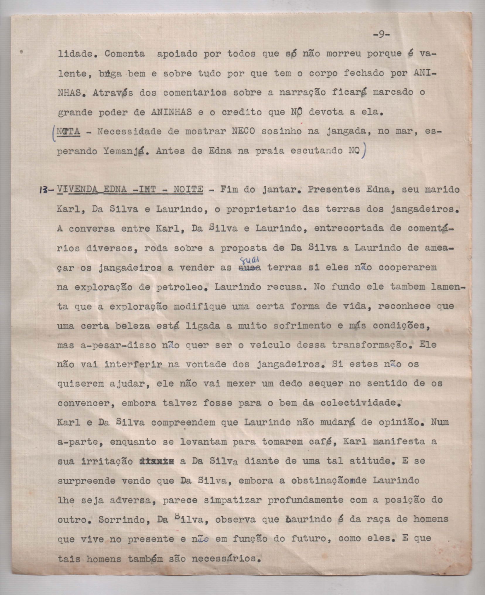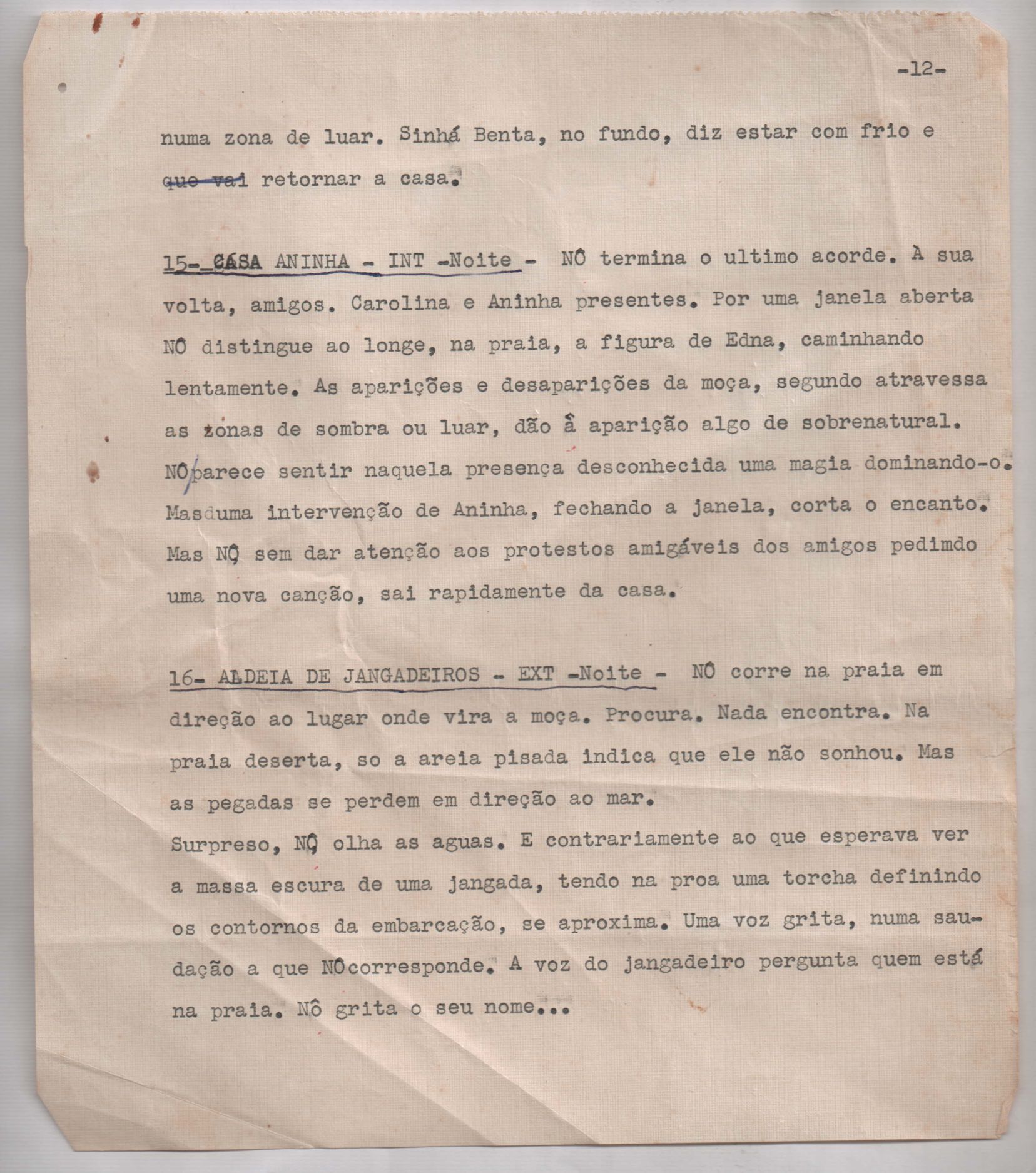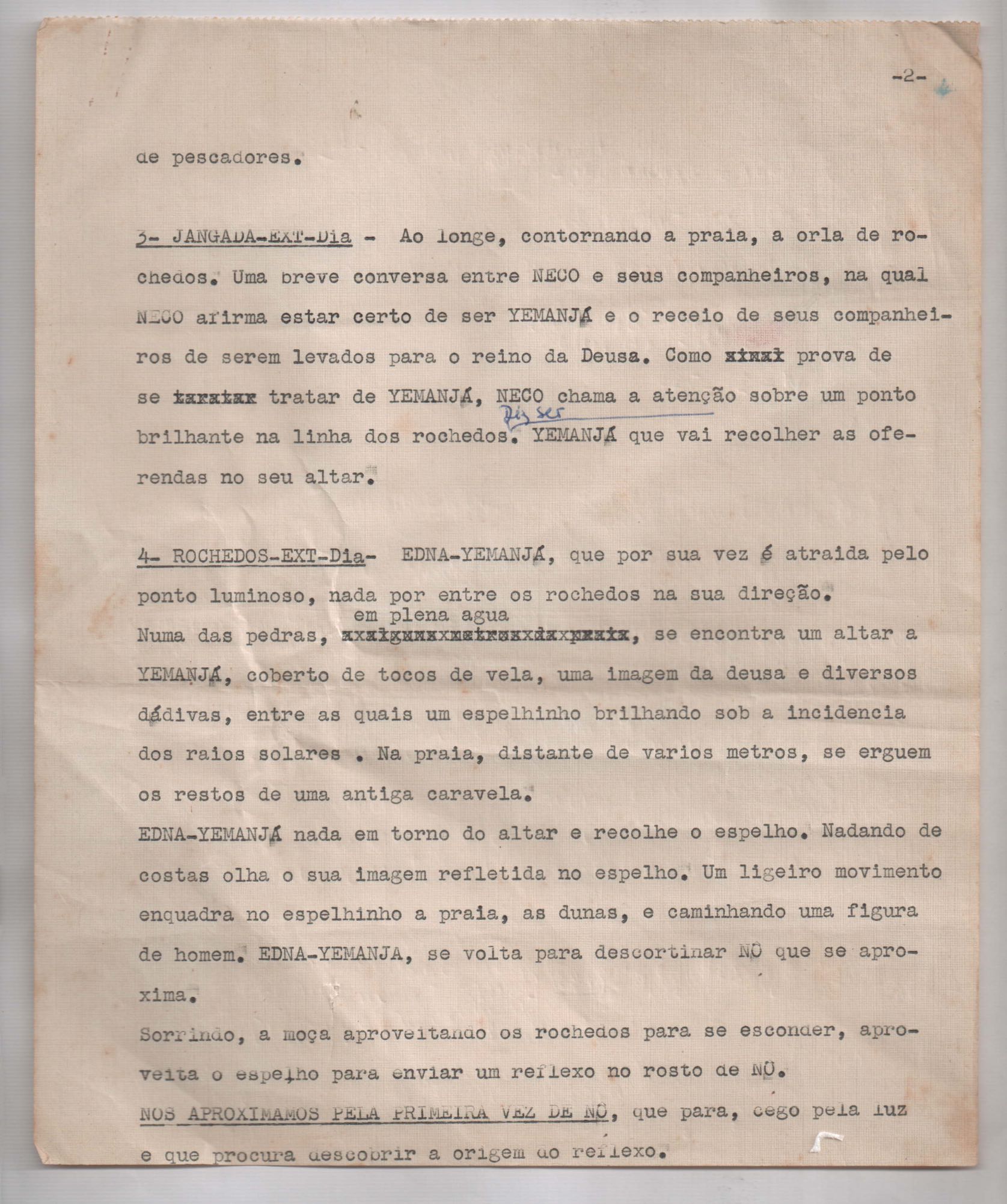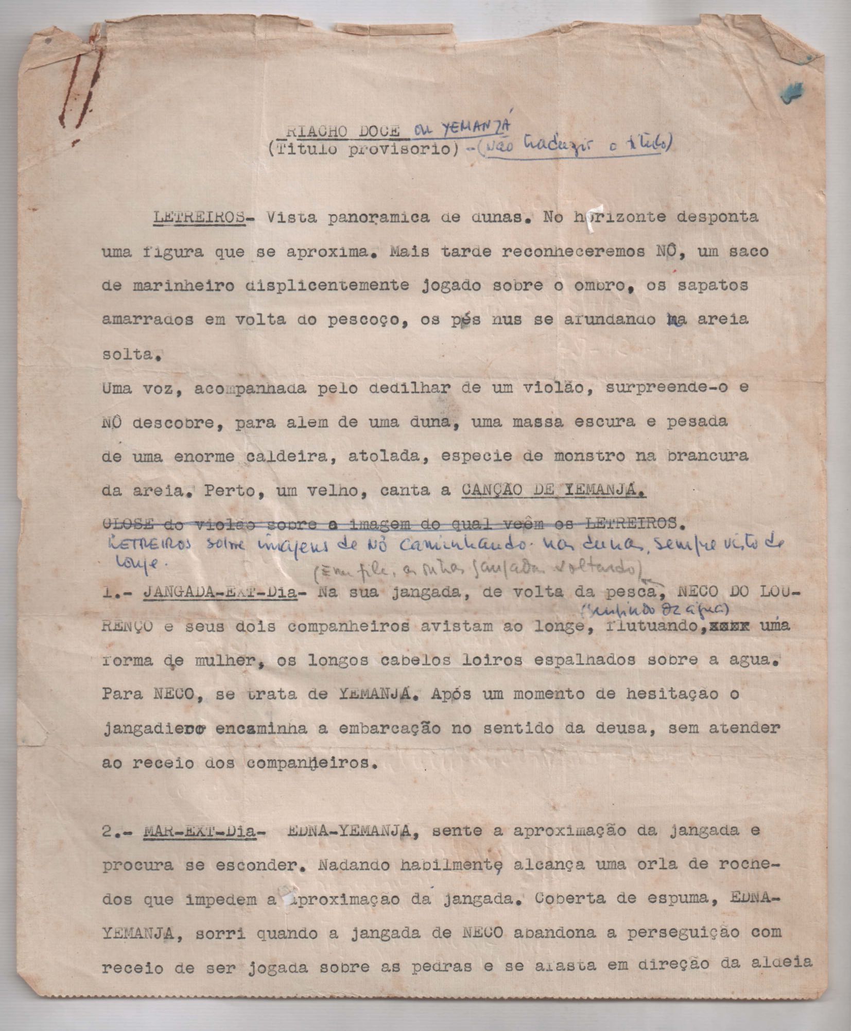 Roteiro para cinema. Anexo: Escaleta de "Riacho doce" ou "Iemanjá".