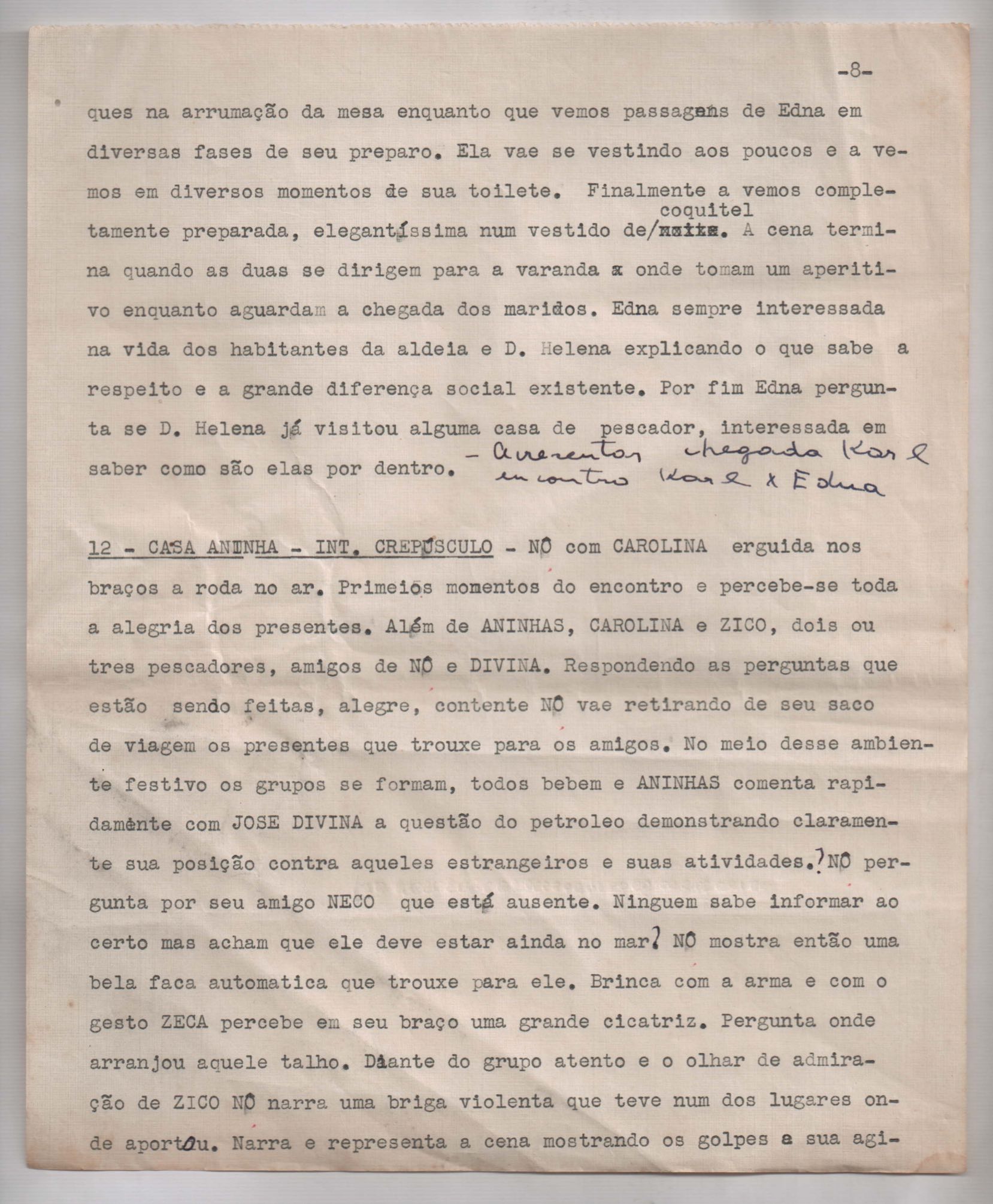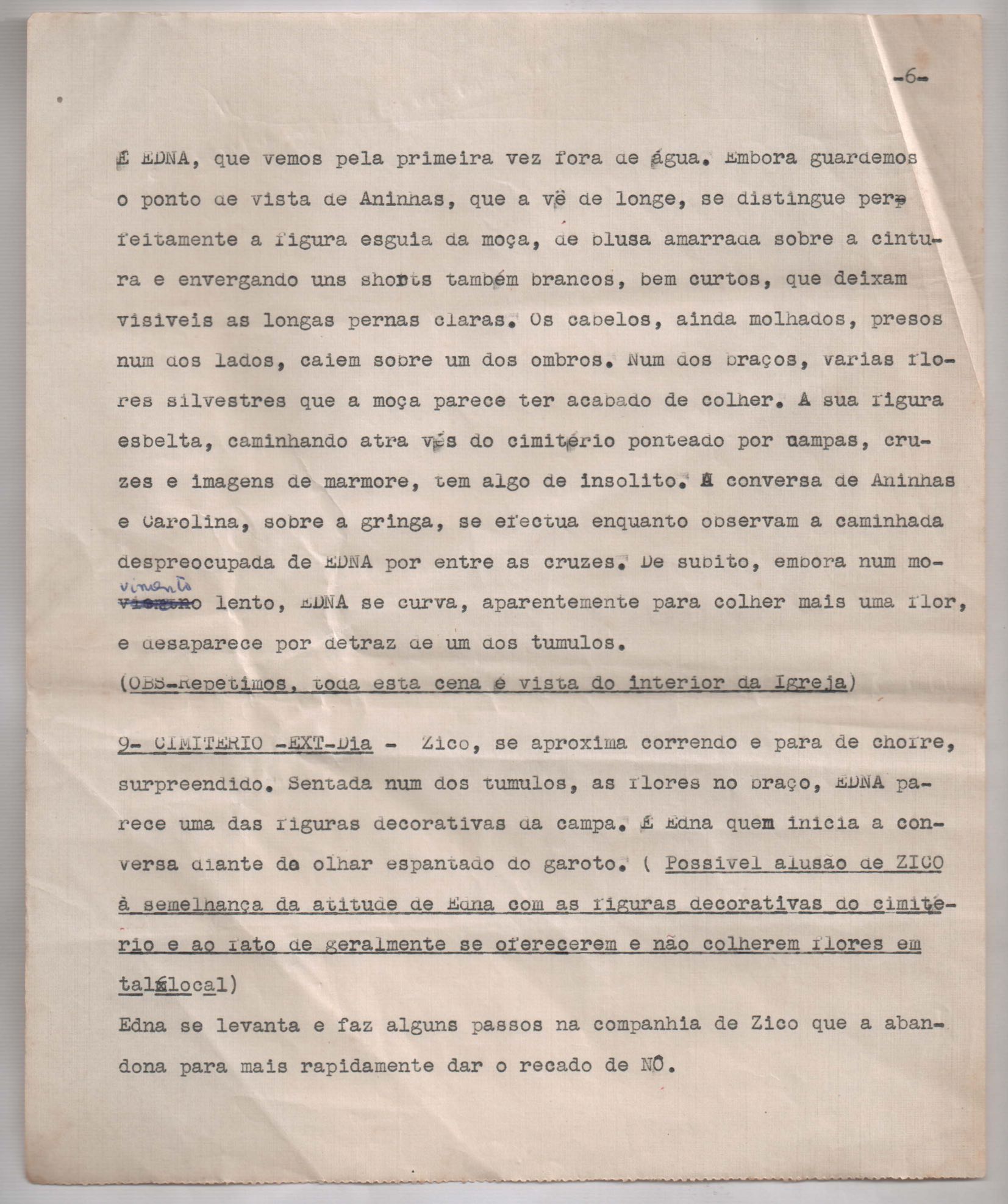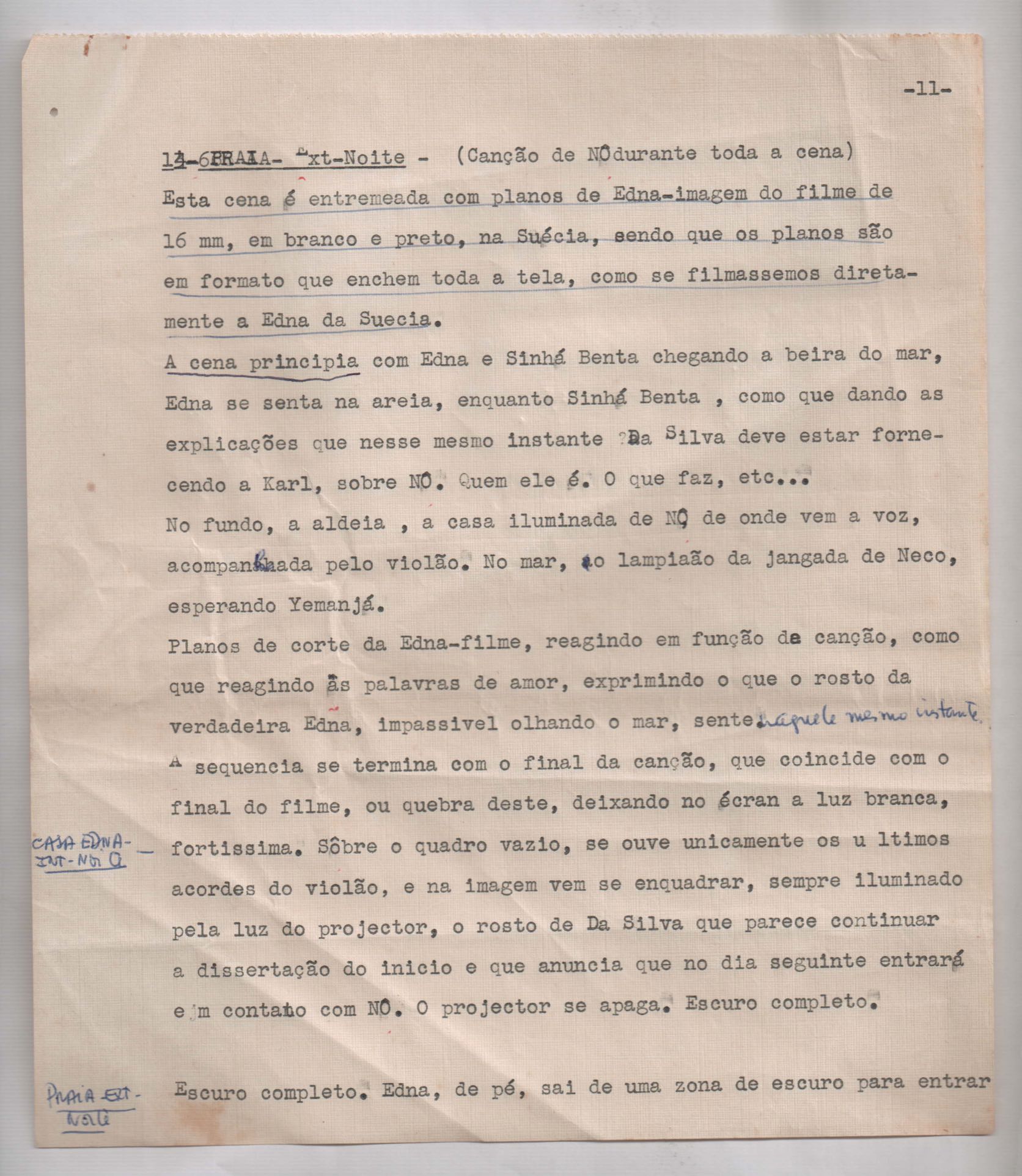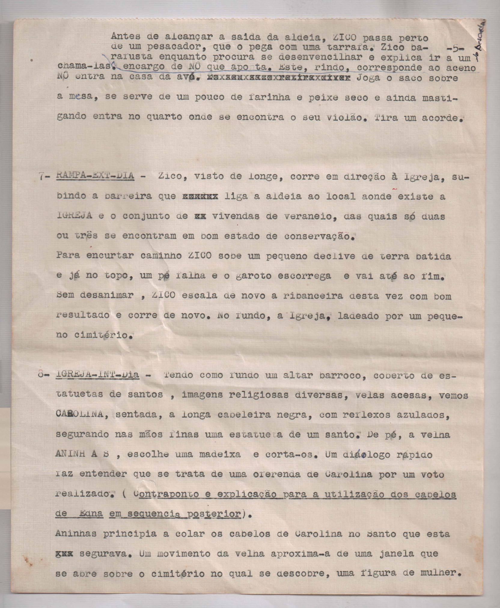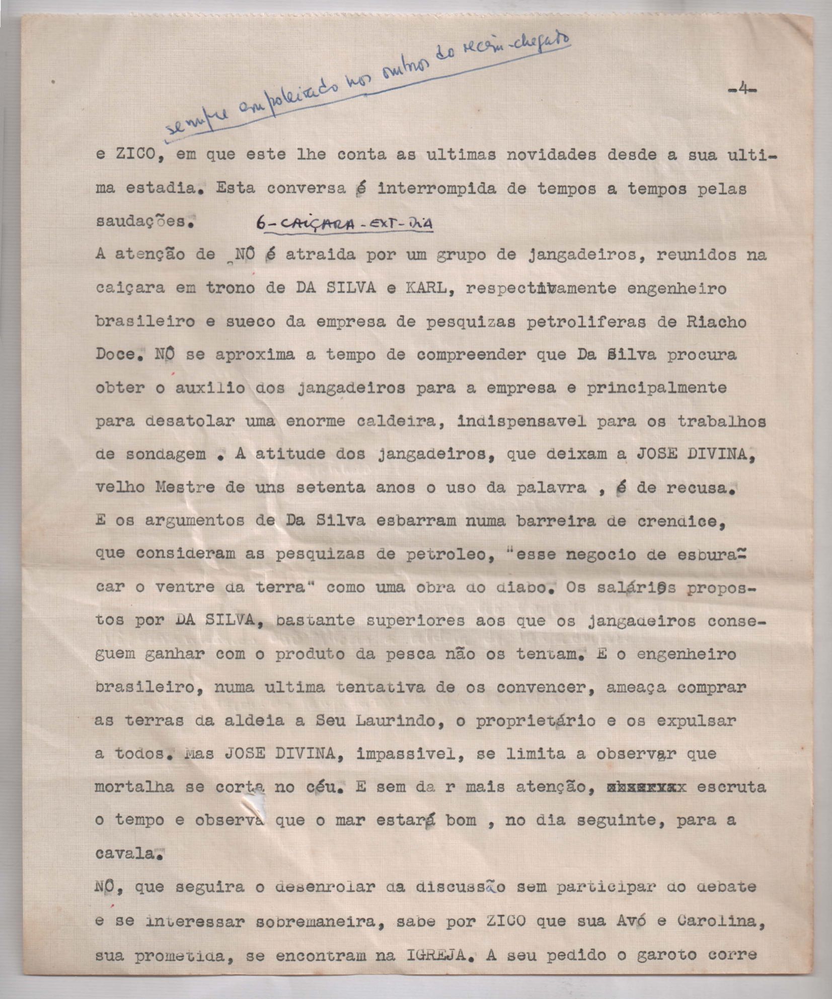 Roteiro para cinema. Anexo: Escaleta de "Riacho doce" ou "Iemanjá".