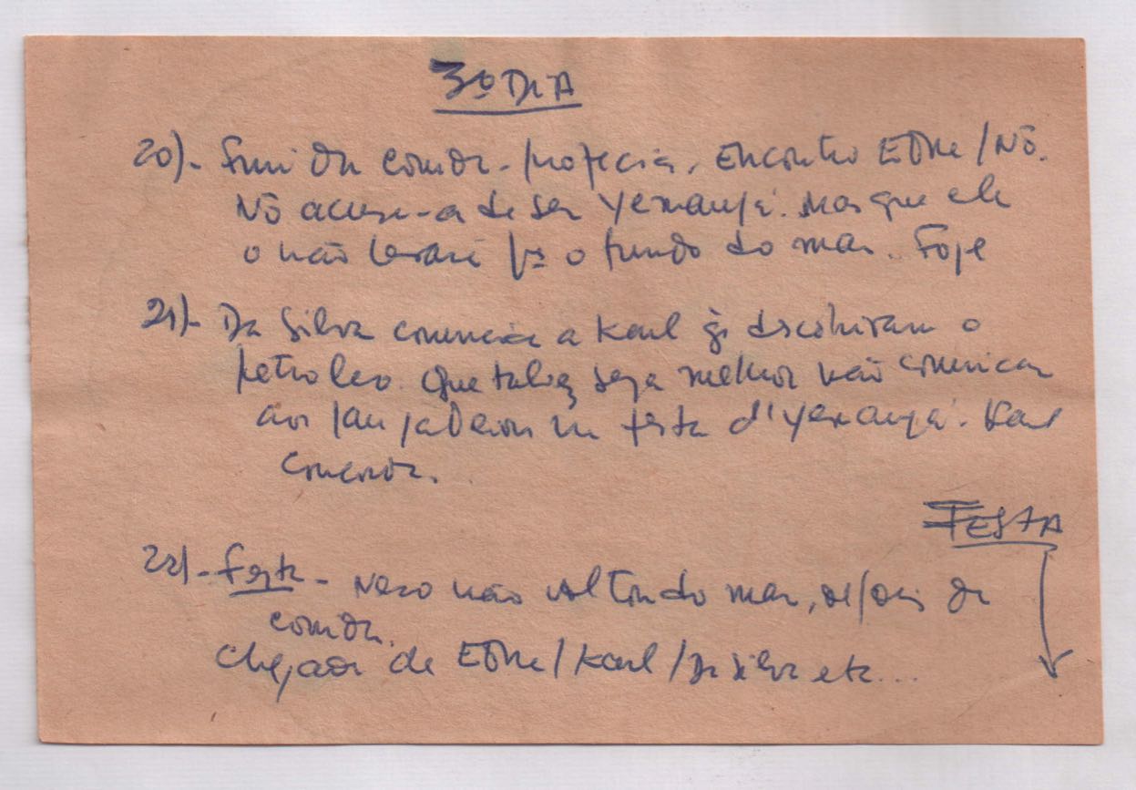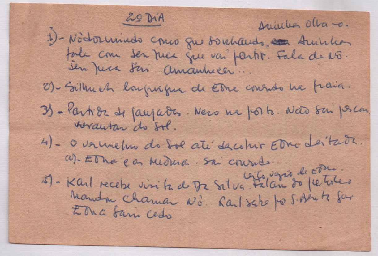 Roteiro para cinema. Anexo: Escaleta de "Riacho doce" ou "Iemanjá".