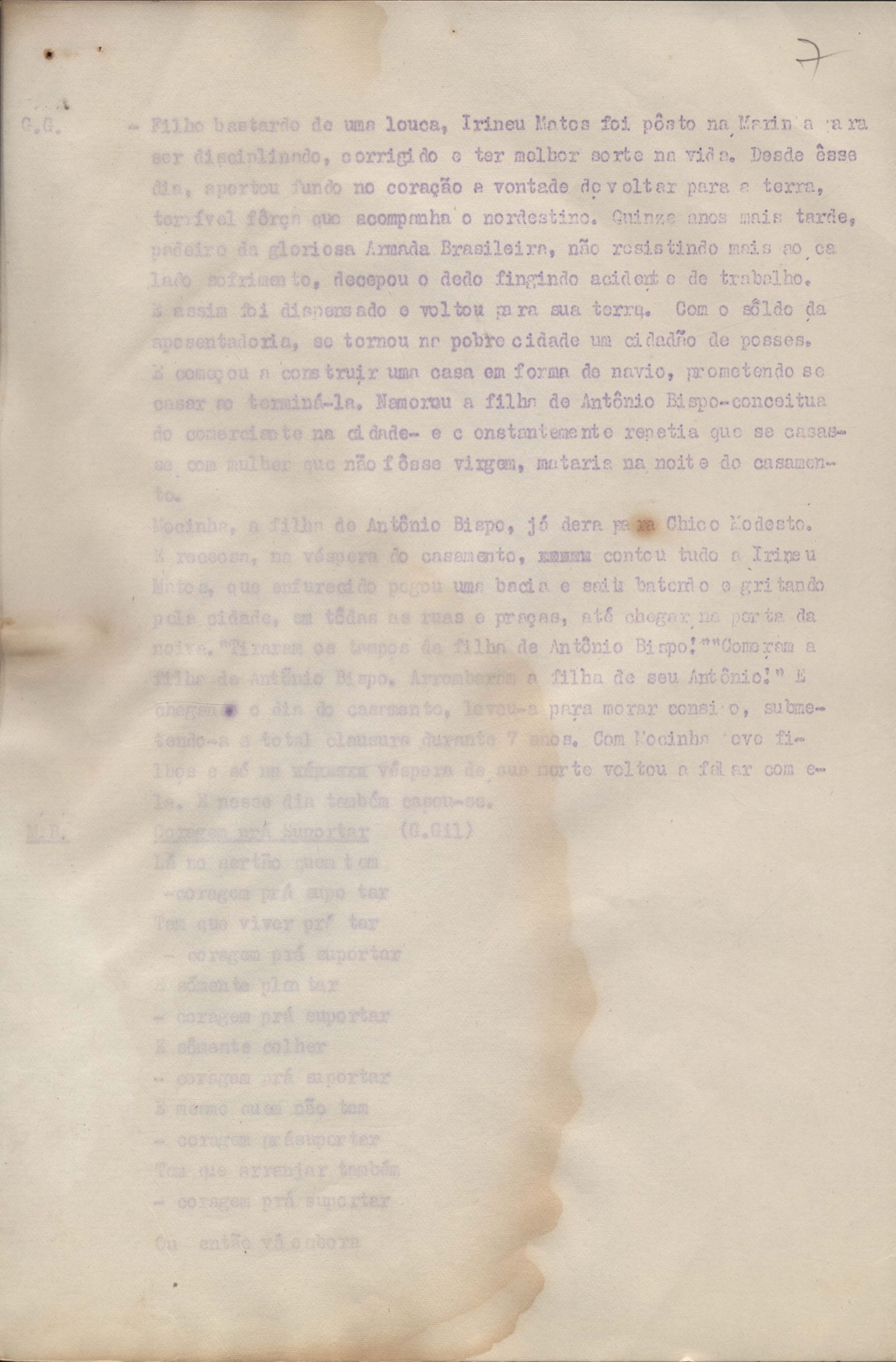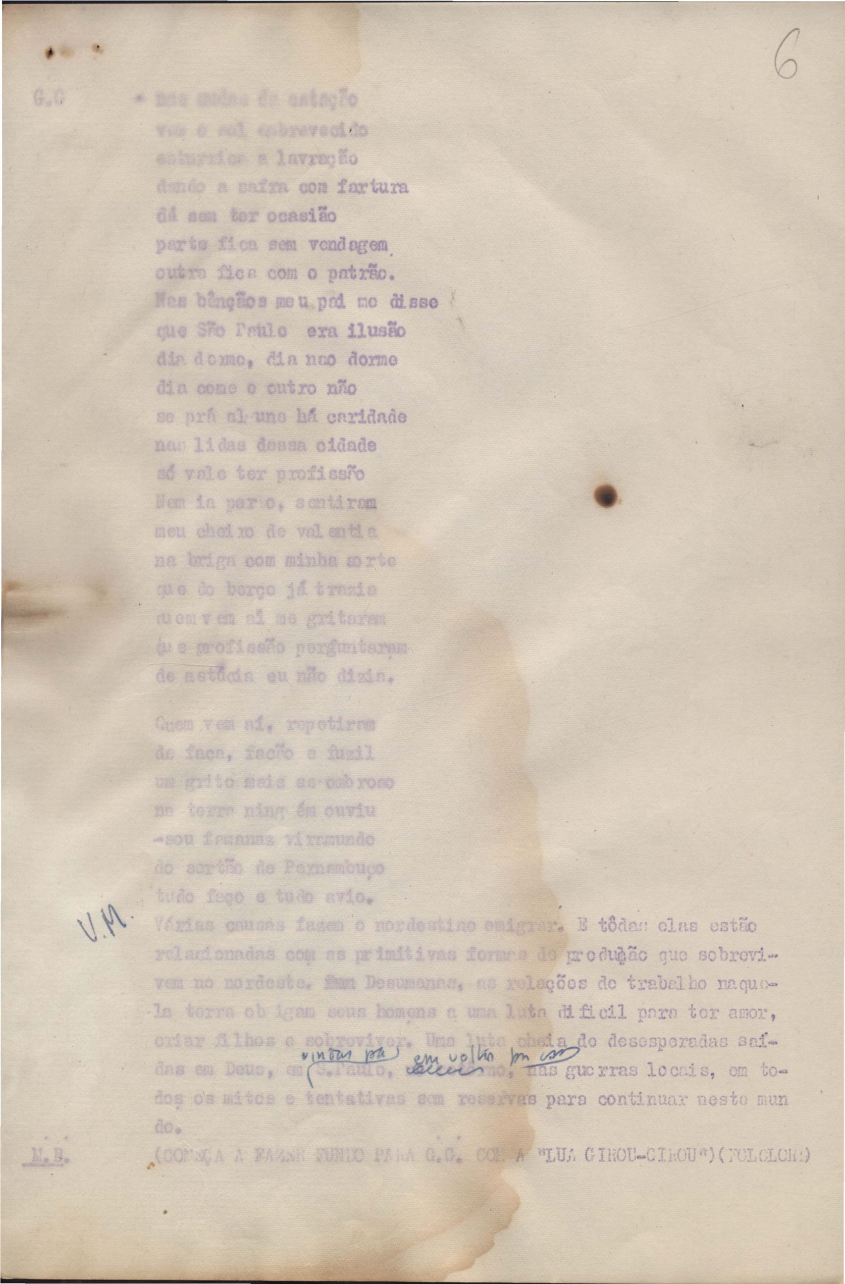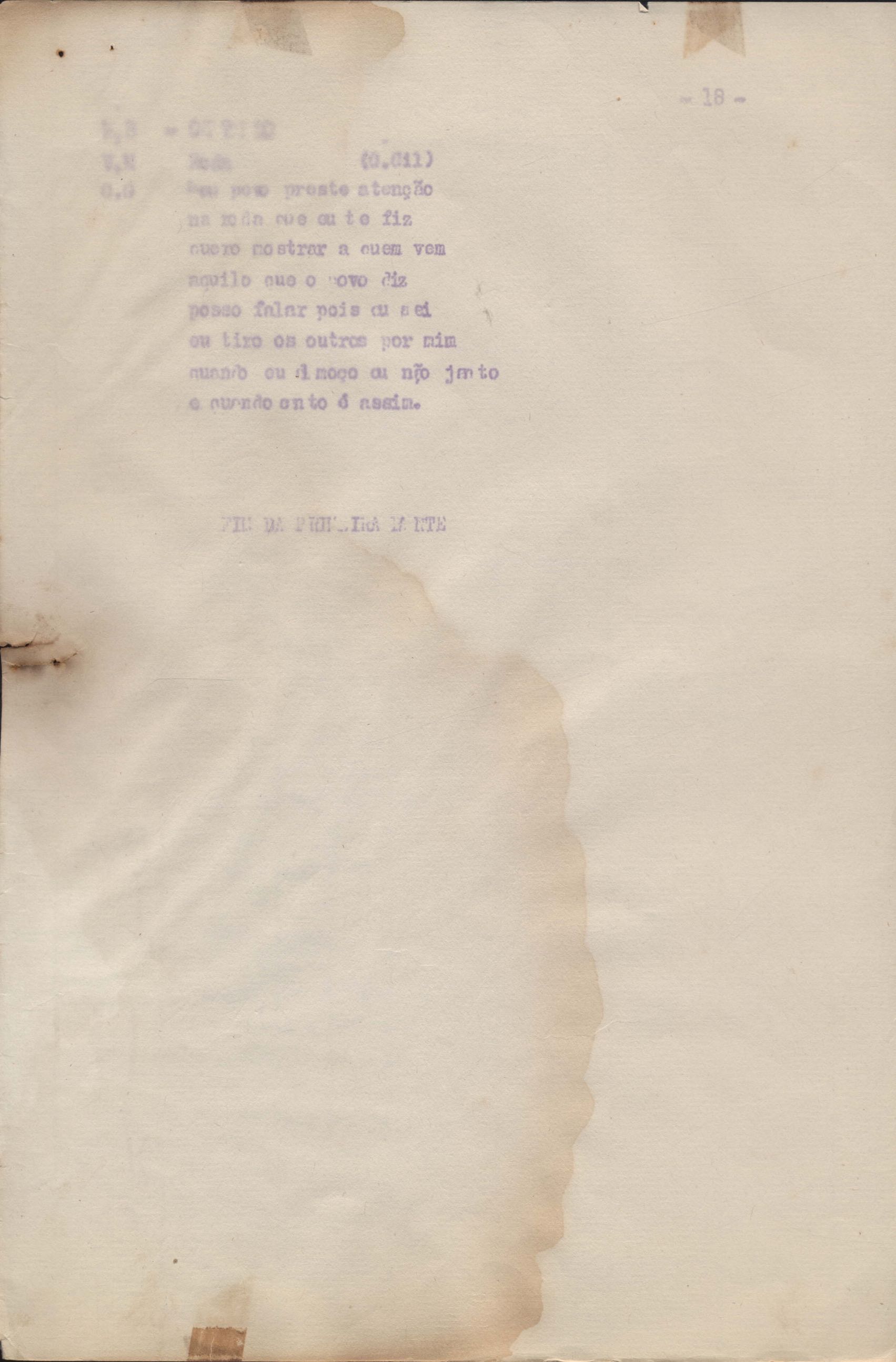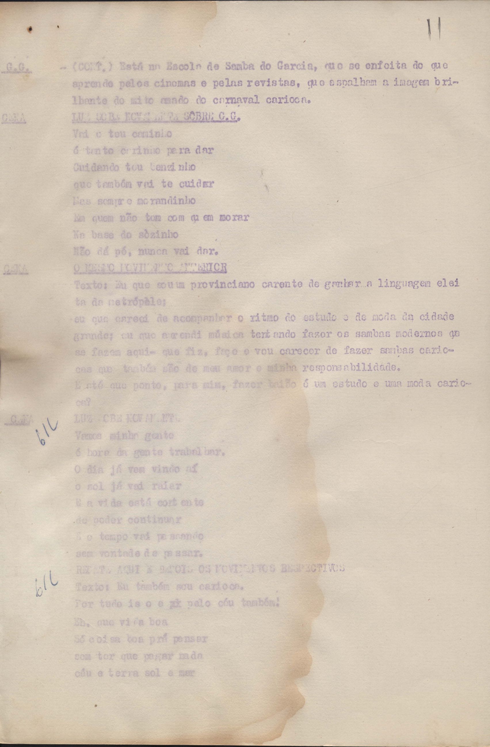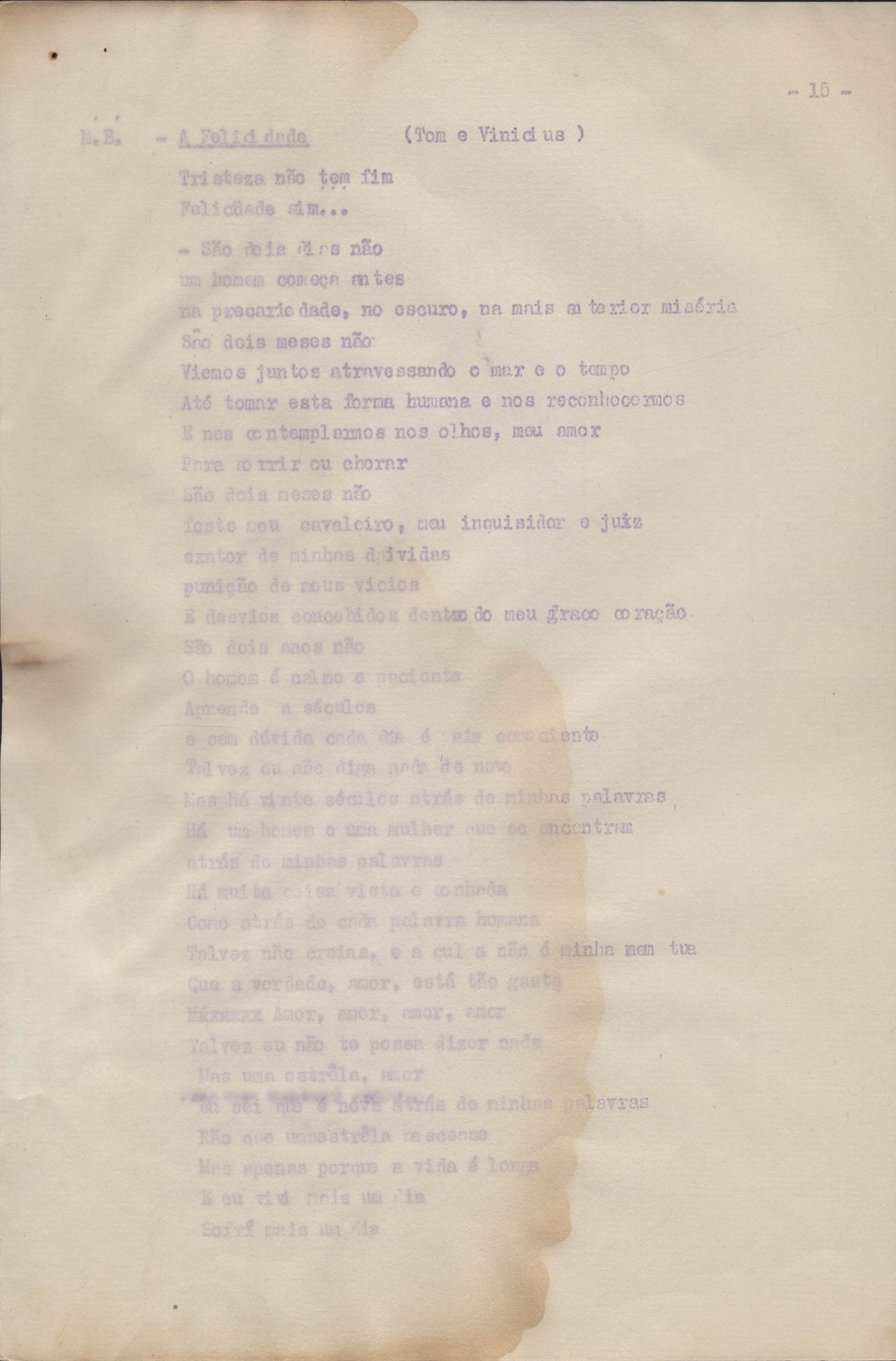 Roteiro para o show Pois é, realizado no Teatro Opinião no Rio de Janeiro, de VM ao lado de Maria Bethânia e Gilberto Gil, direção de Francis Hime. Cópia carbonada.