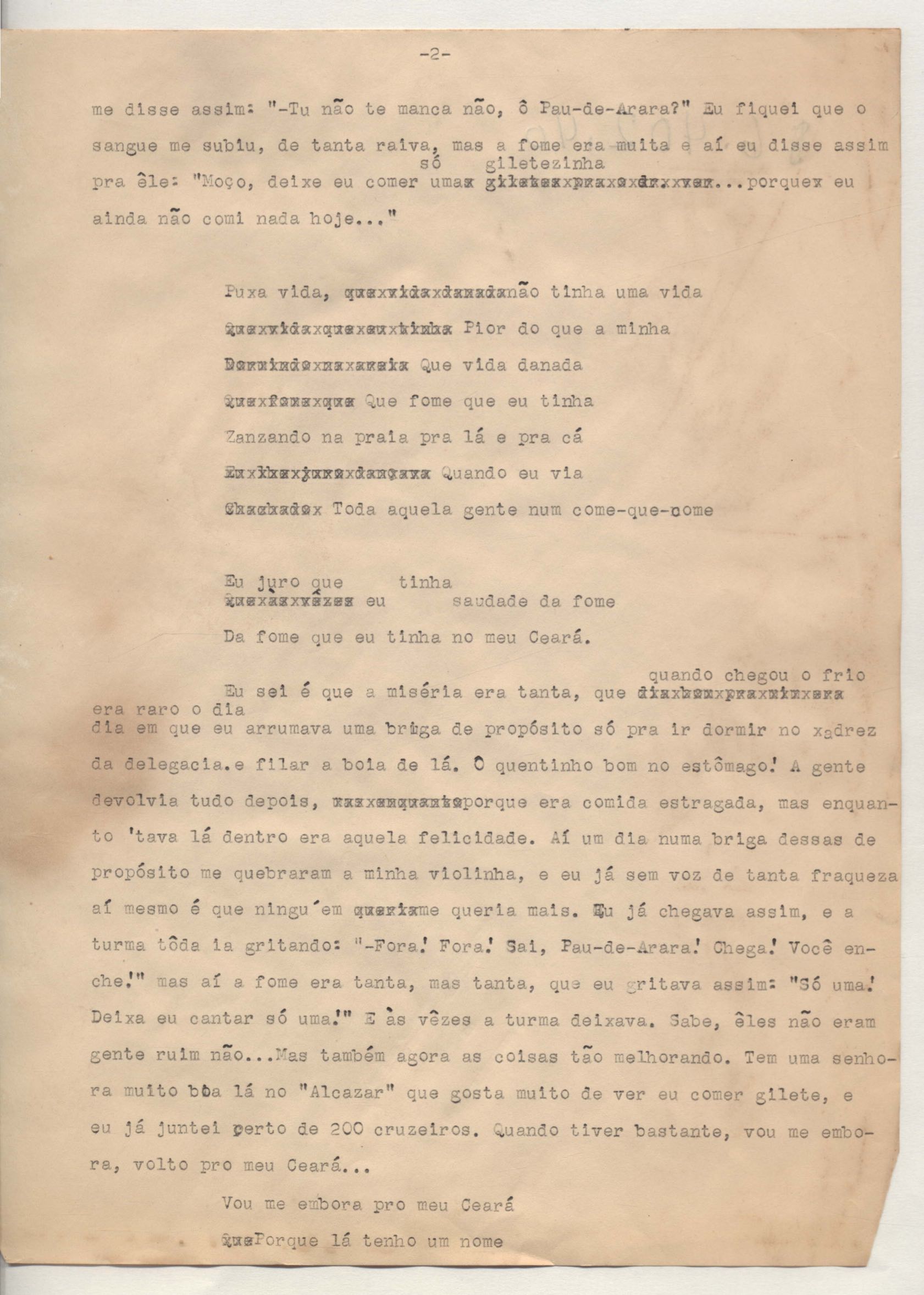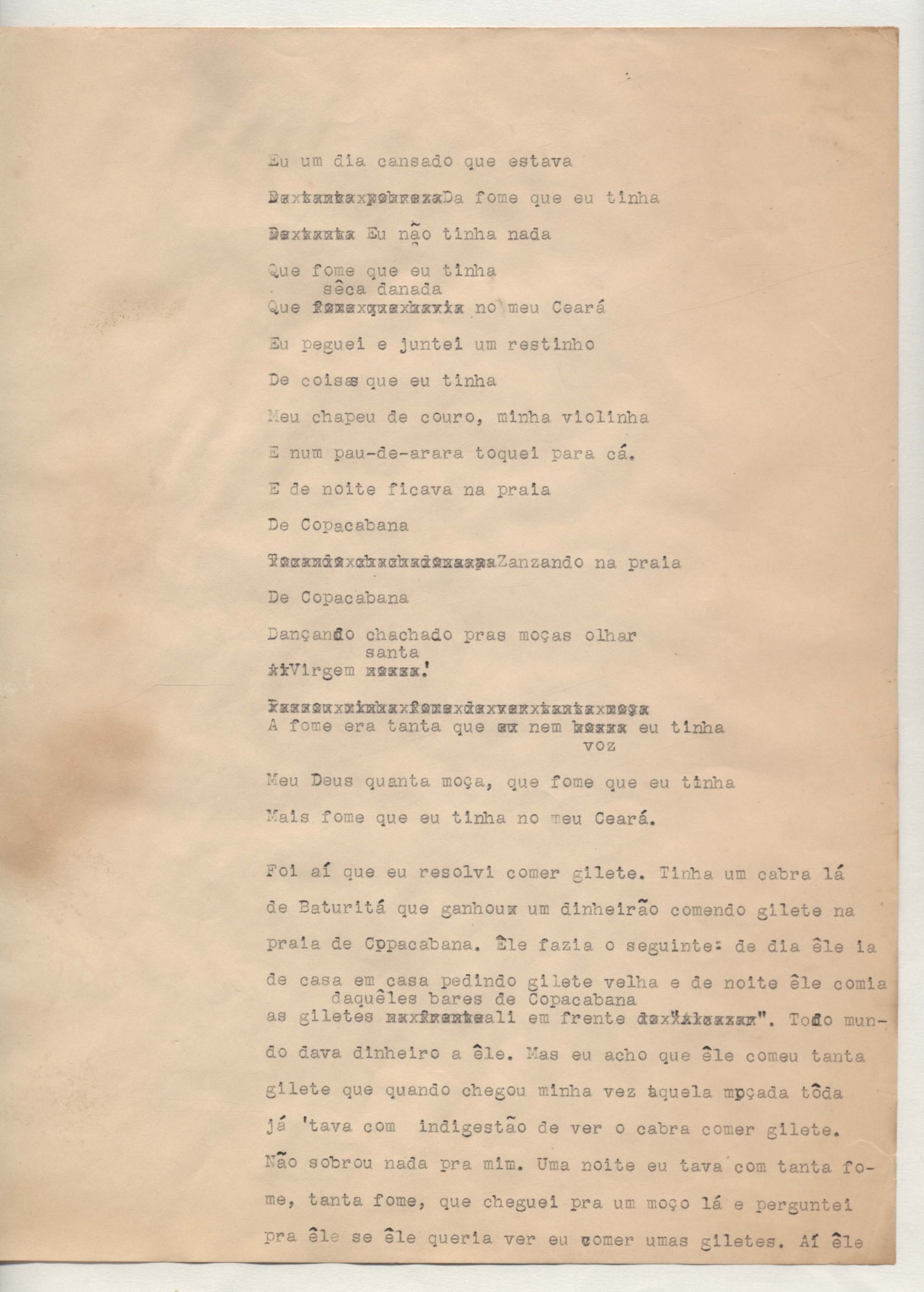 Letra de música. Música em parceria com Carlos Lyra. Rascunho.