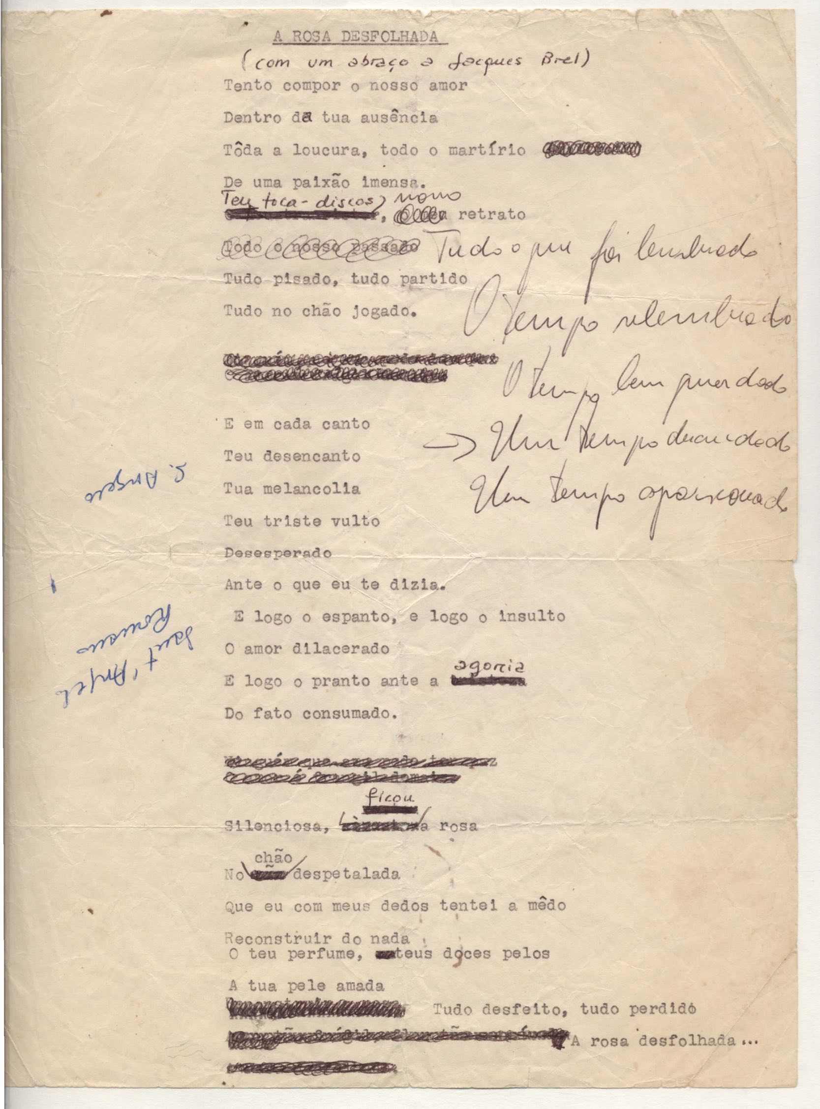 Letra de música. Música em parceria com Toquinho. Há rascunho.