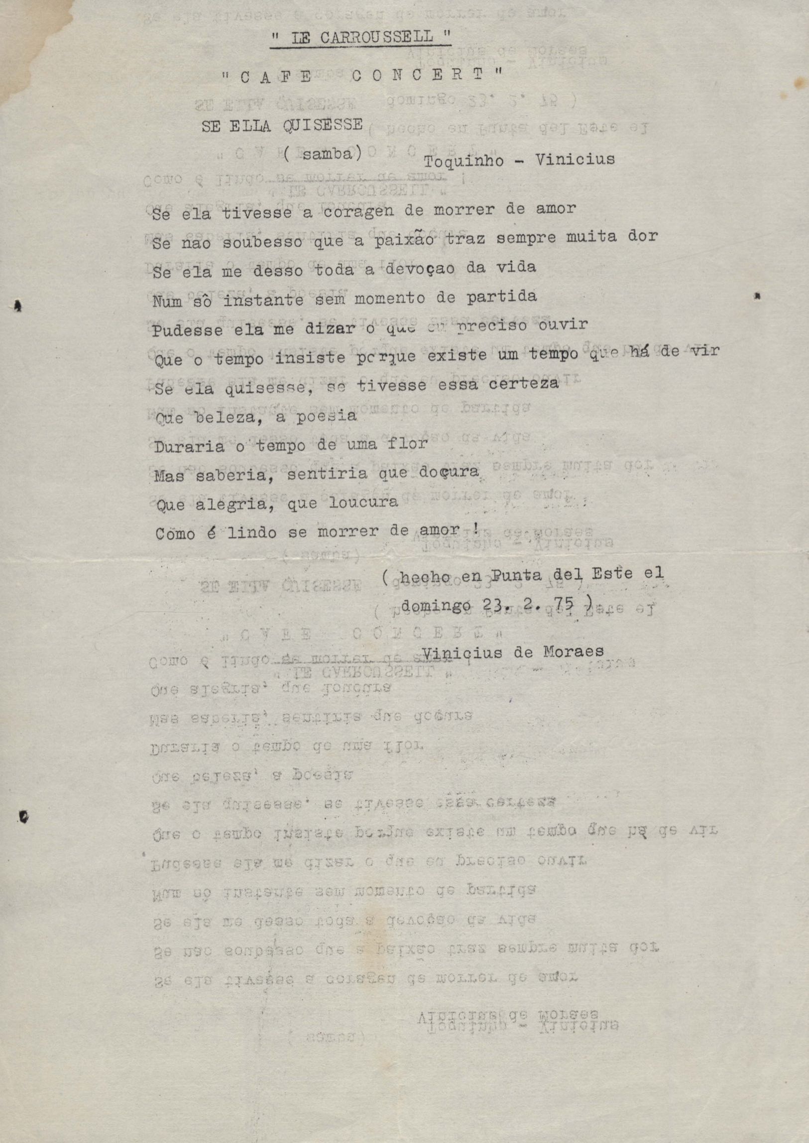Letra de música. Música em parceria com Toquinho. Há rascunho.