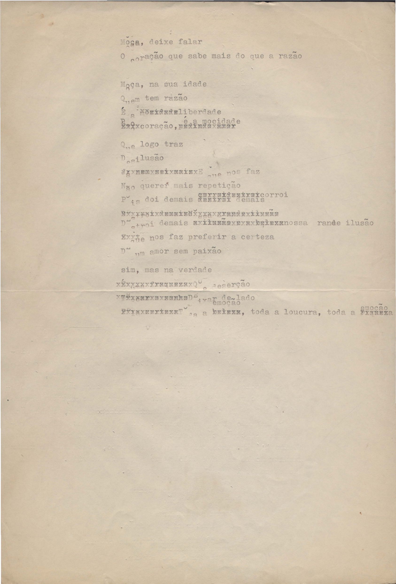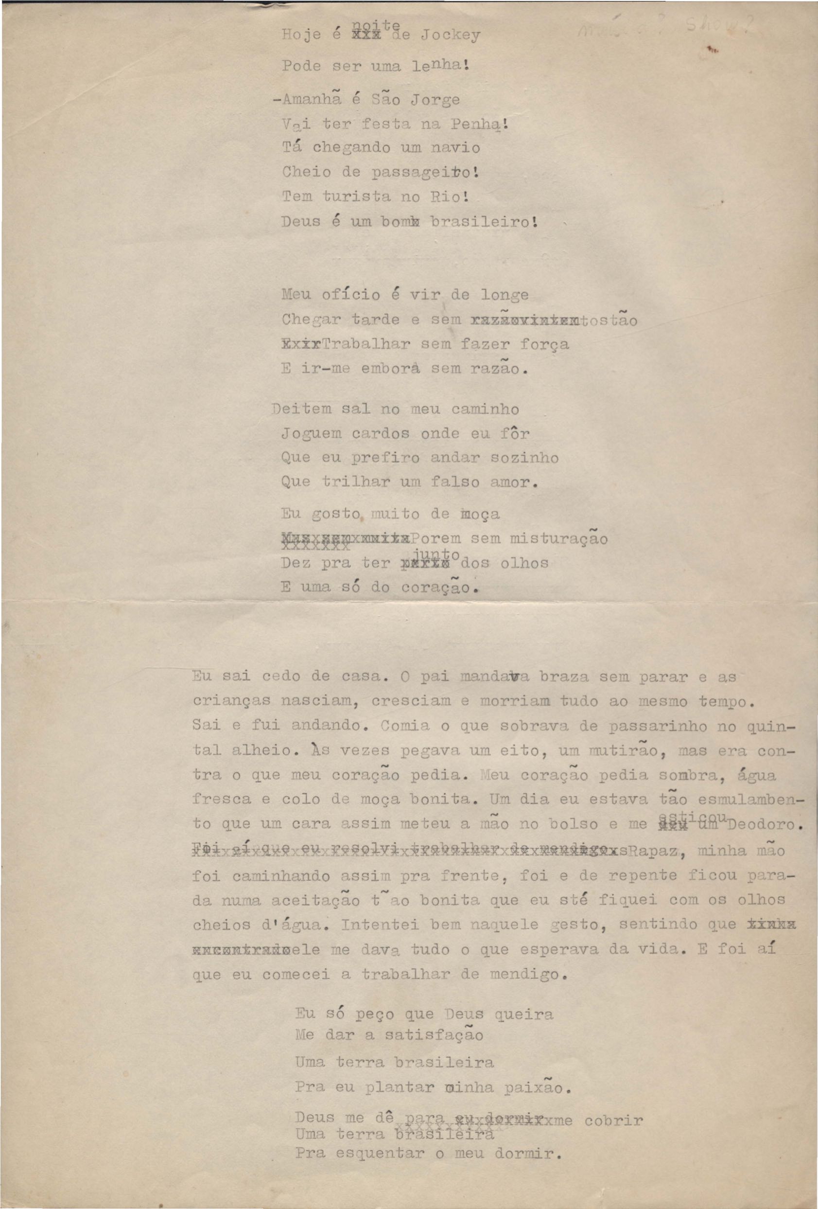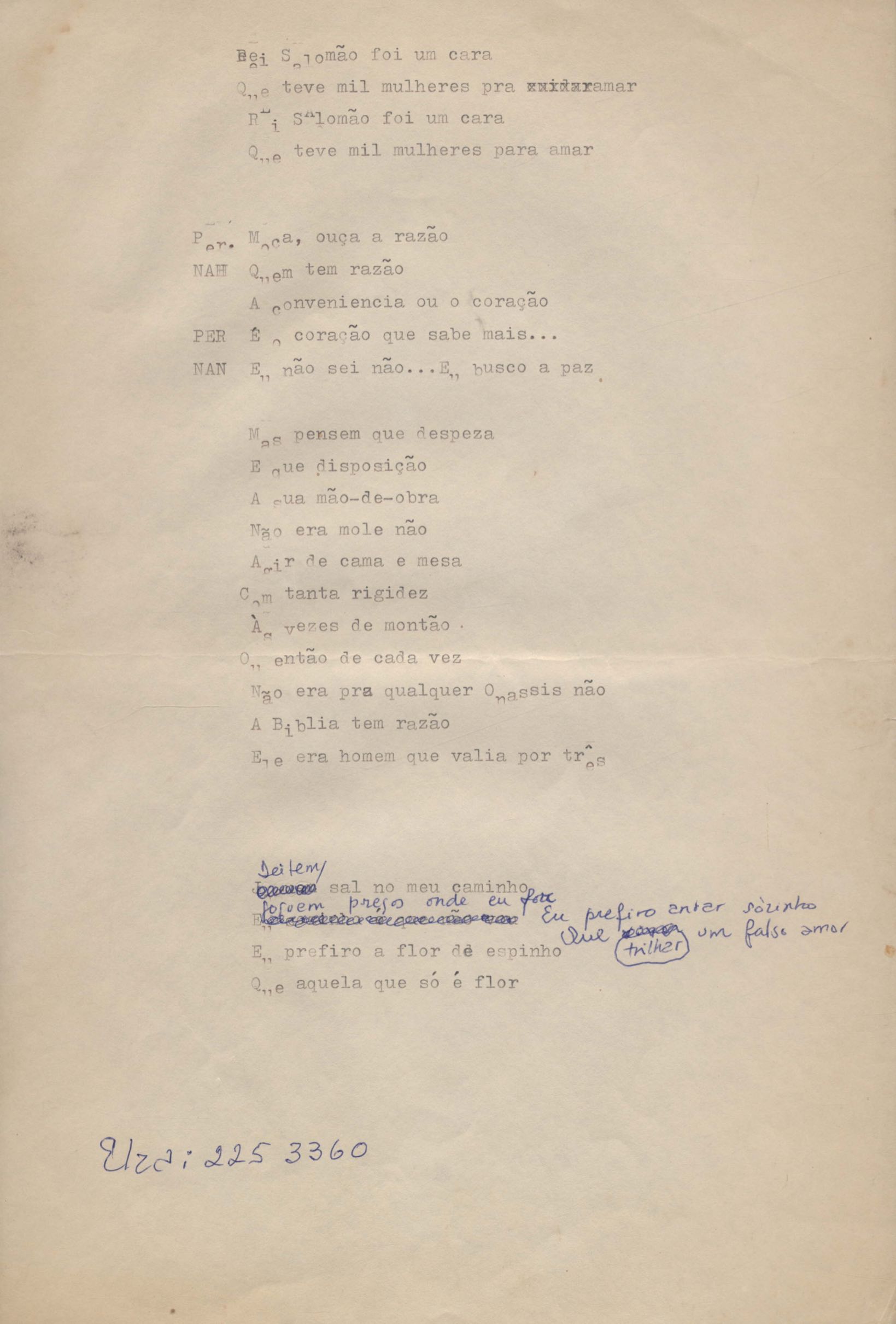 Letra de música. Música em parceria com Edu Lobo. Rascunho.