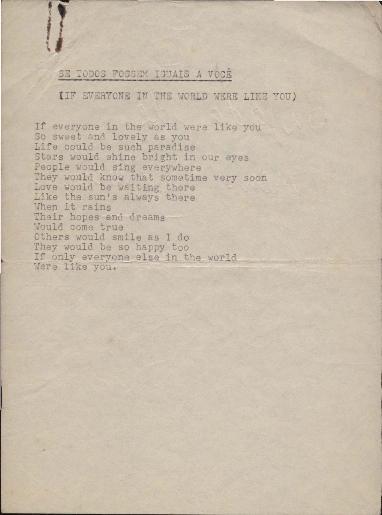 Letra de música. Música em parceria com Tom Jobim. Há rascunho.