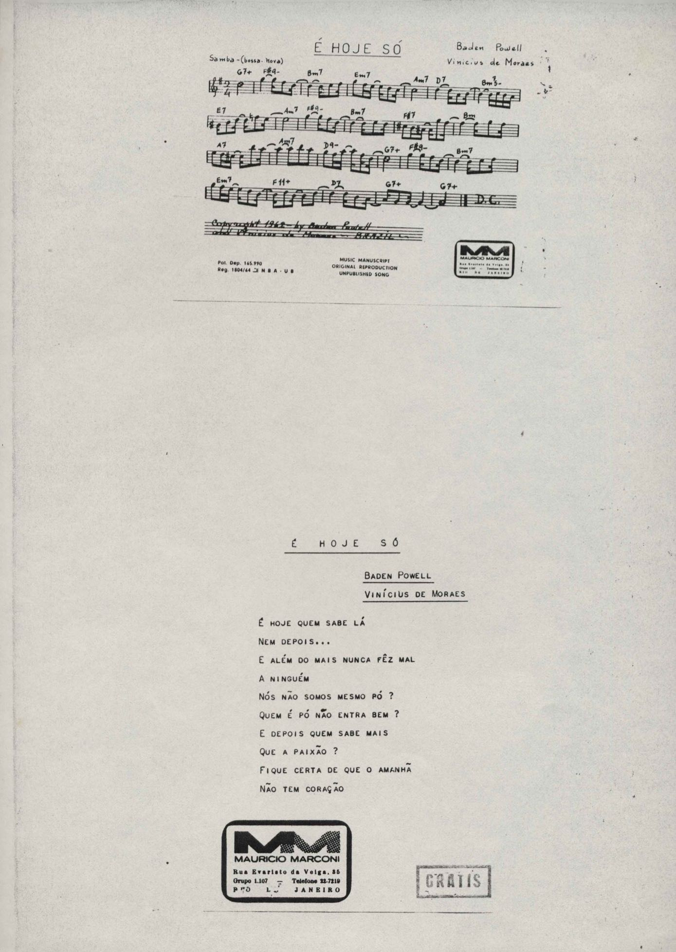Letra de música em parceria com Baden Powell.