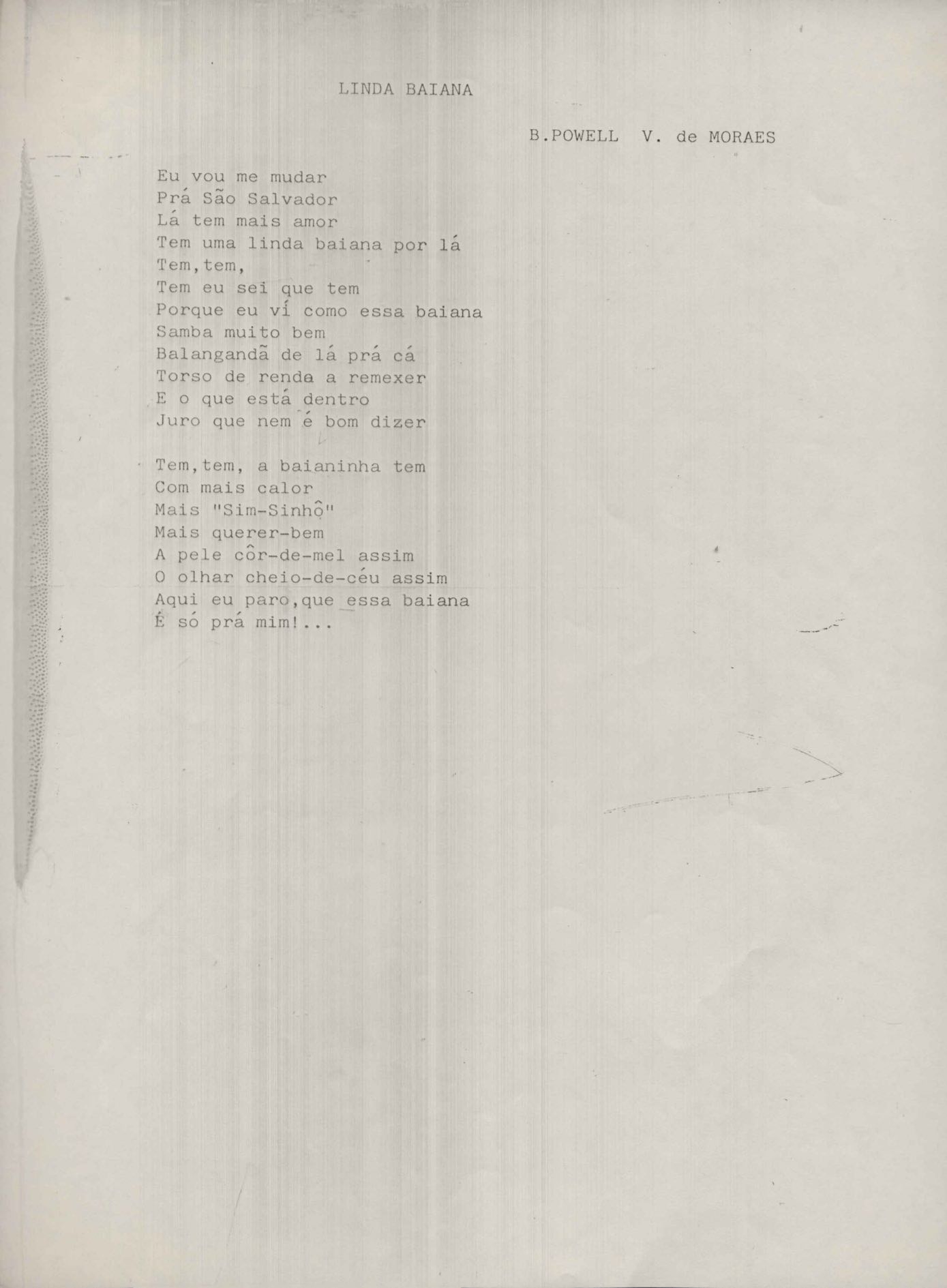 Letra de música em parceria com Baden Powell.