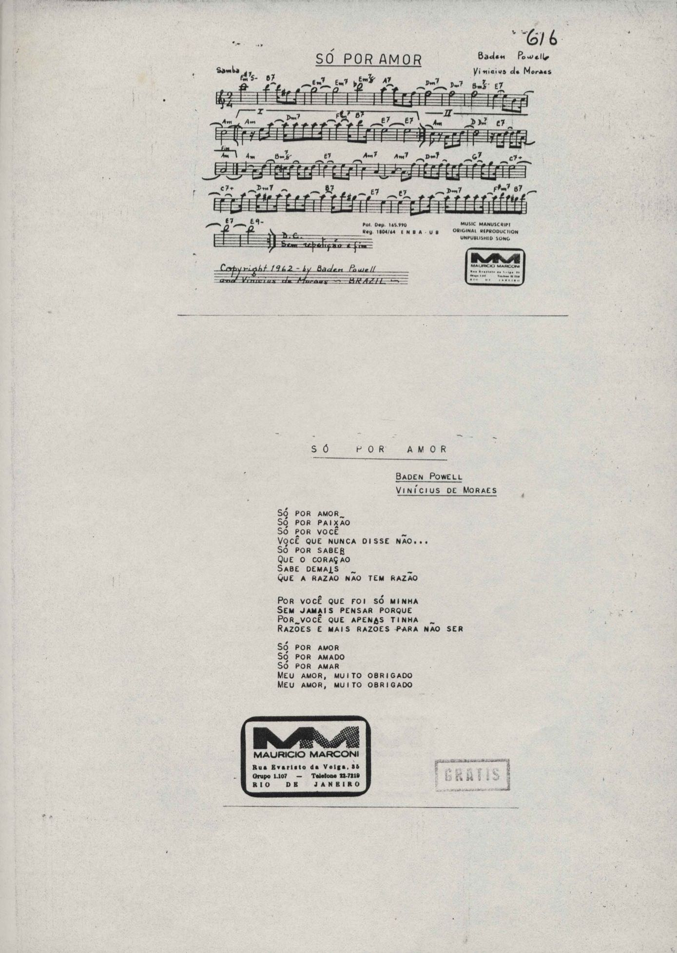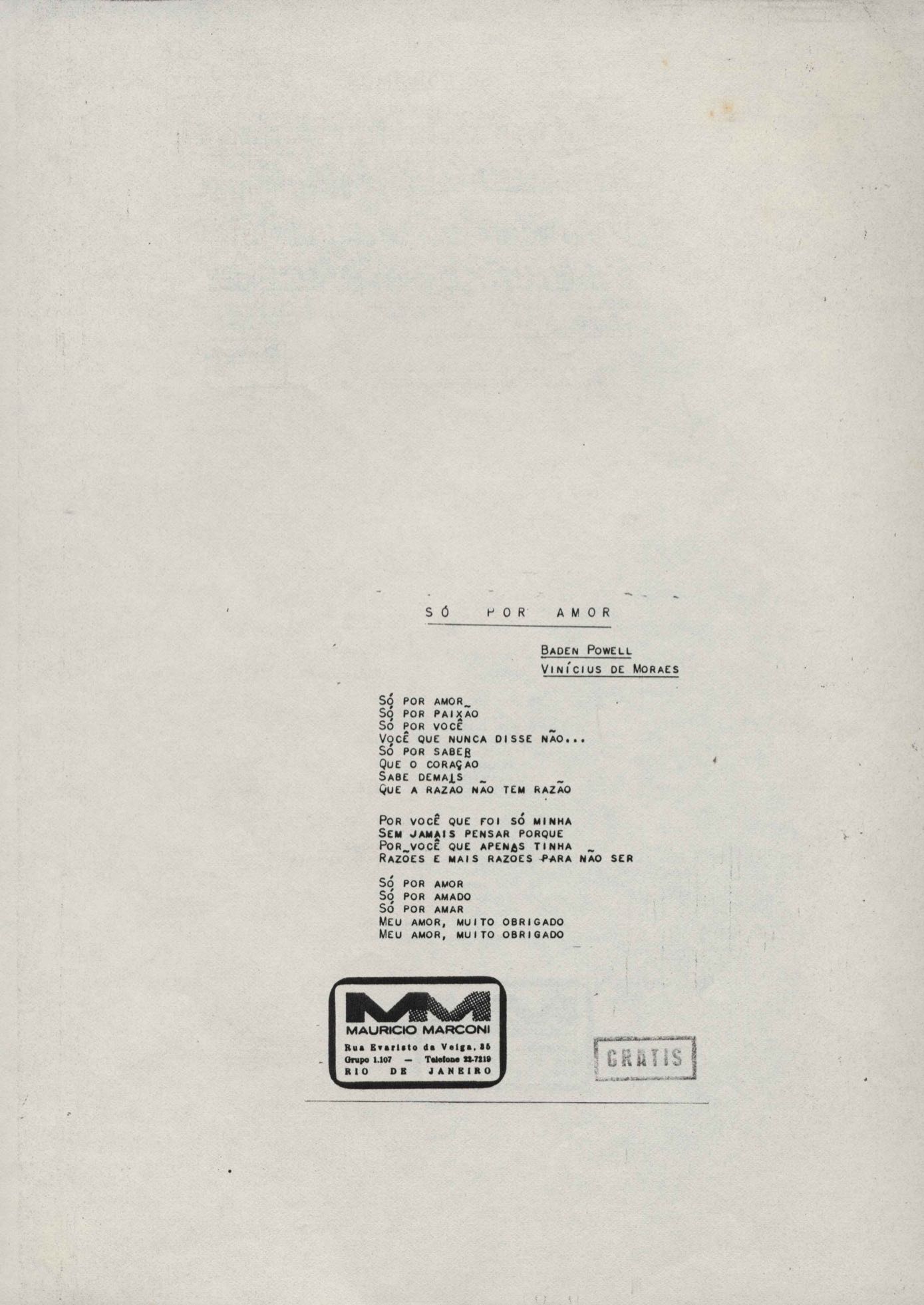 Letra de música em parceria com Baden Powell.