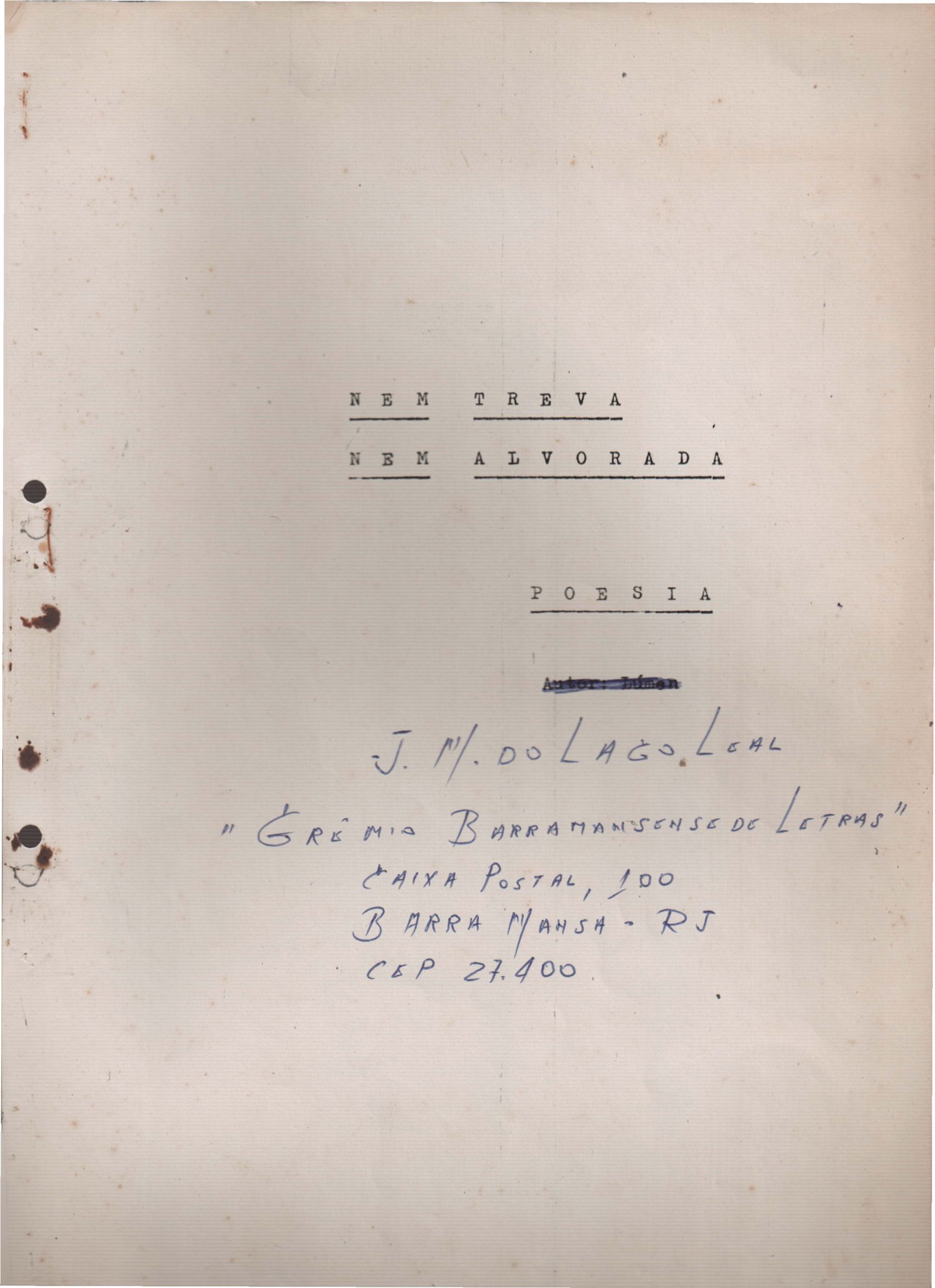 Há o nome do autor na primeira folha e um endereço manuscrito.