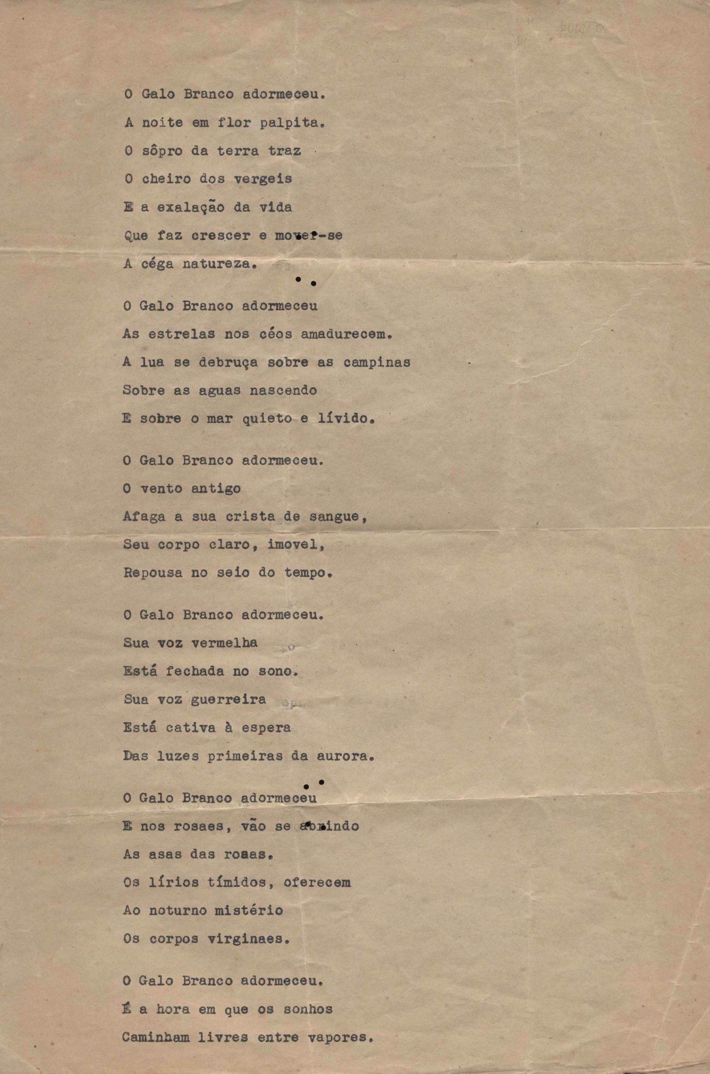 Há outra versão do "O Galo branco adormeceu" com o título "Poema" no livro