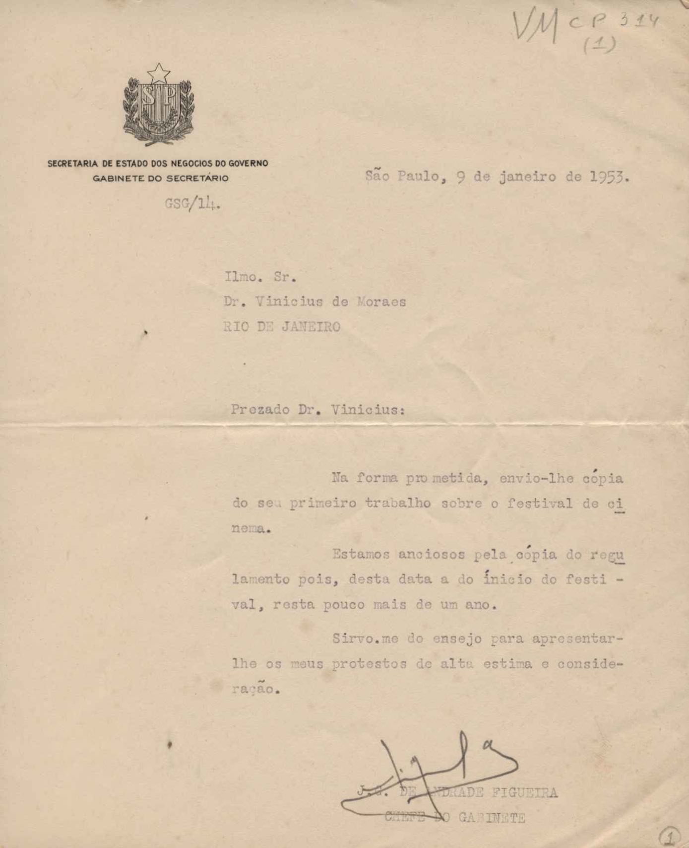 Remessa de cópia do primeiro trabalho de VM sobre o Festival de Cinema.