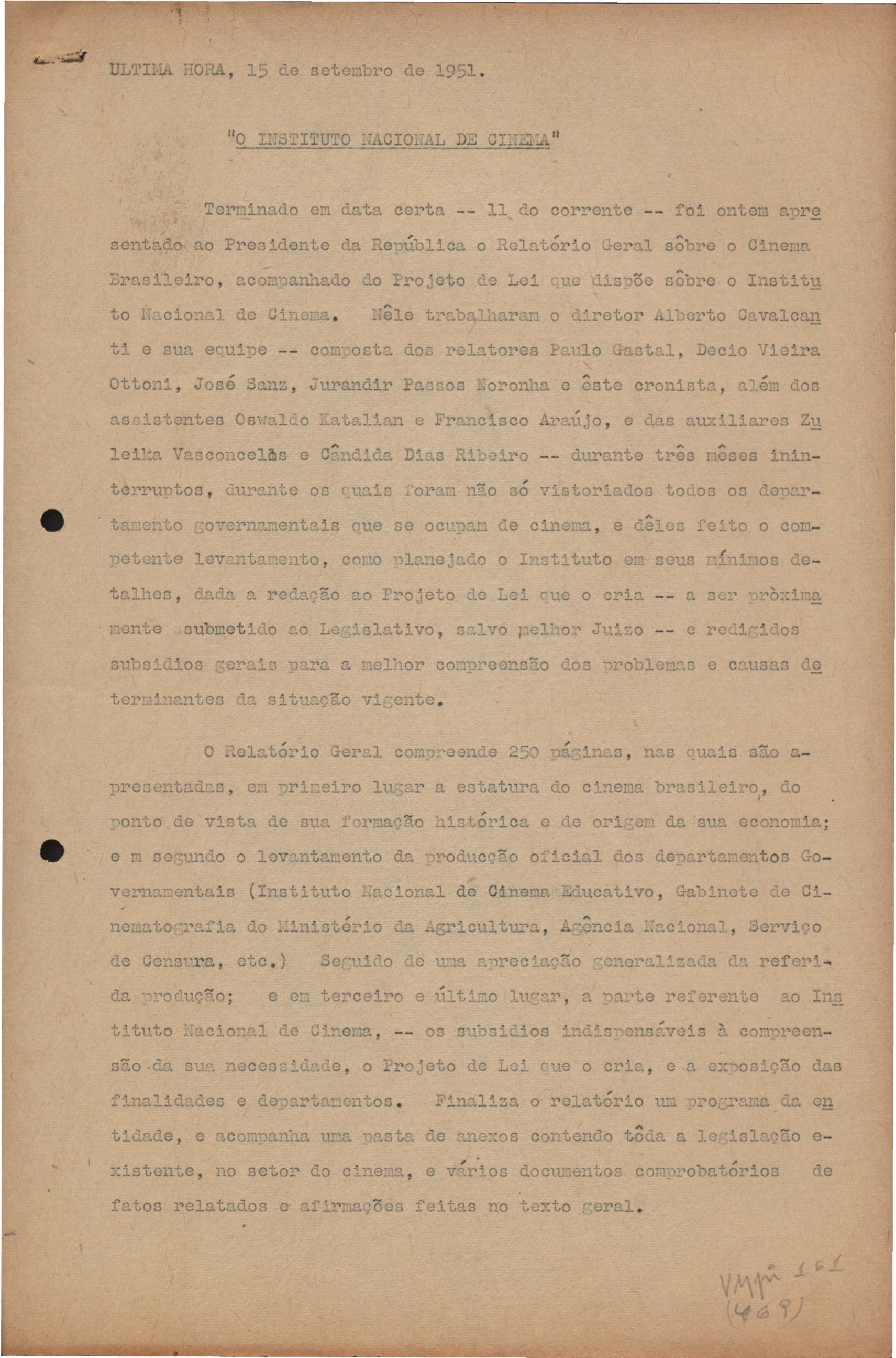 Este registro faz parte do dossiê VMPI161, que contempla artigos escritos e/ou publicados entre 7 jan. 1951 e 21 dez. 1952 para o periódico Última Hora.