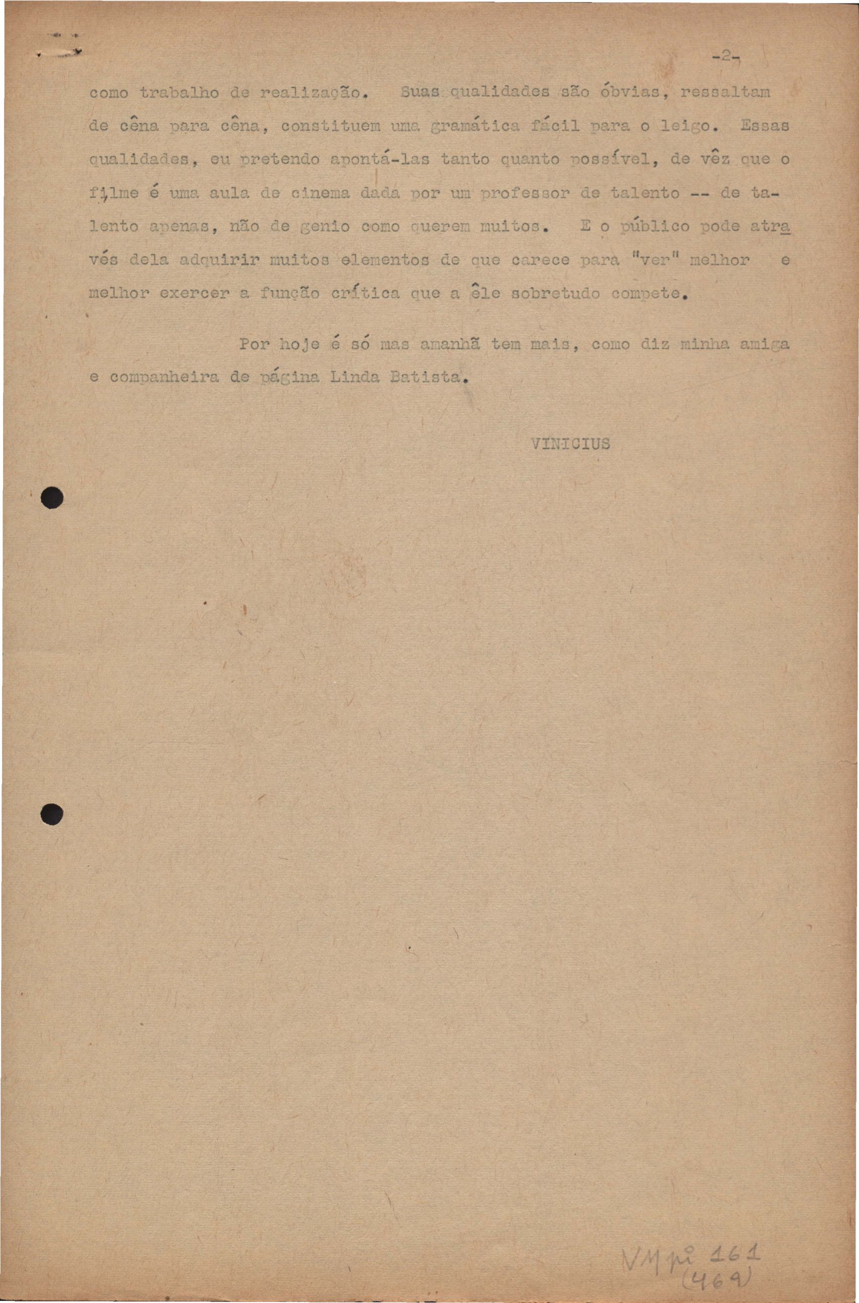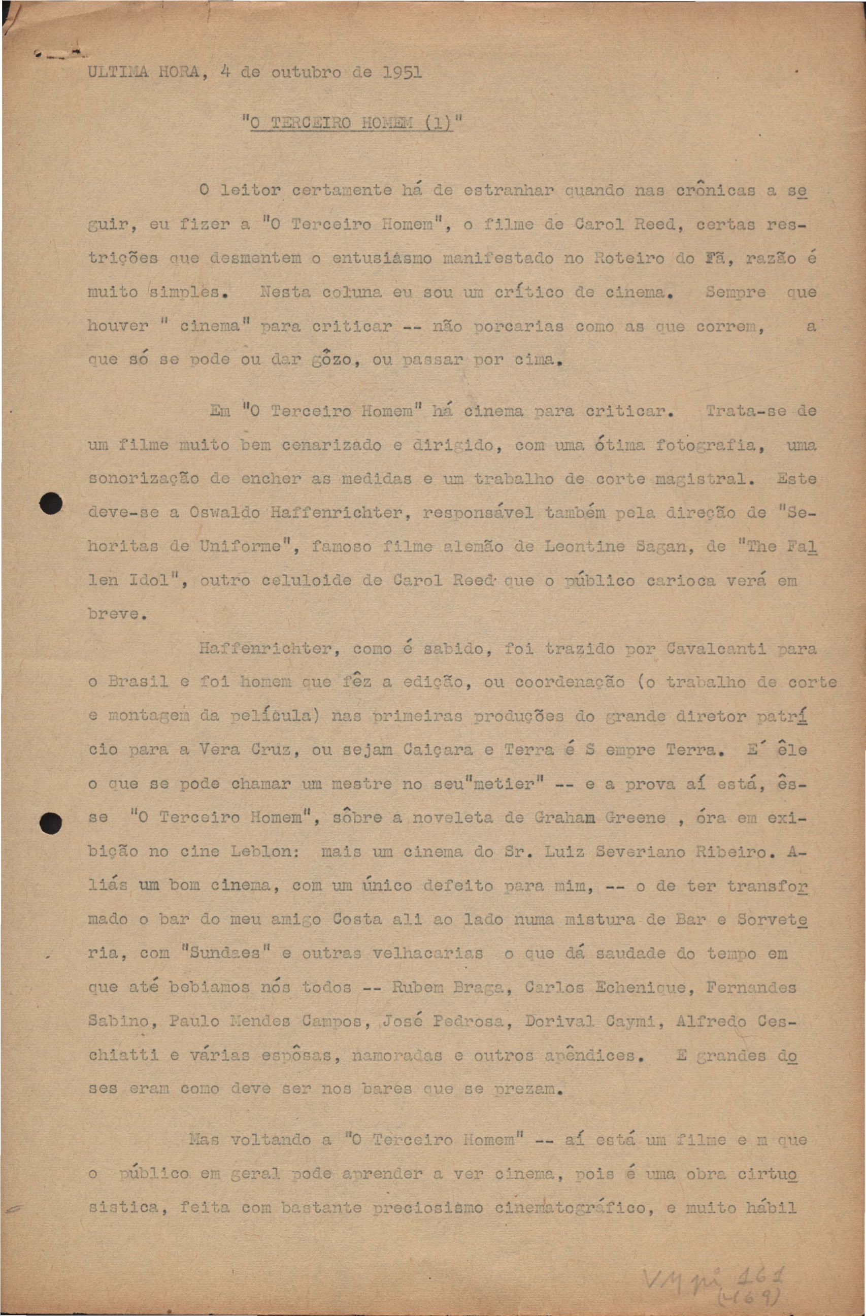 Este registro faz parte do dossiê VMPI161, que contempla artigos escritos e/ou publicados entre 7 jan. 1951 e 21 dez. 1952 para o periódico Última Hora.