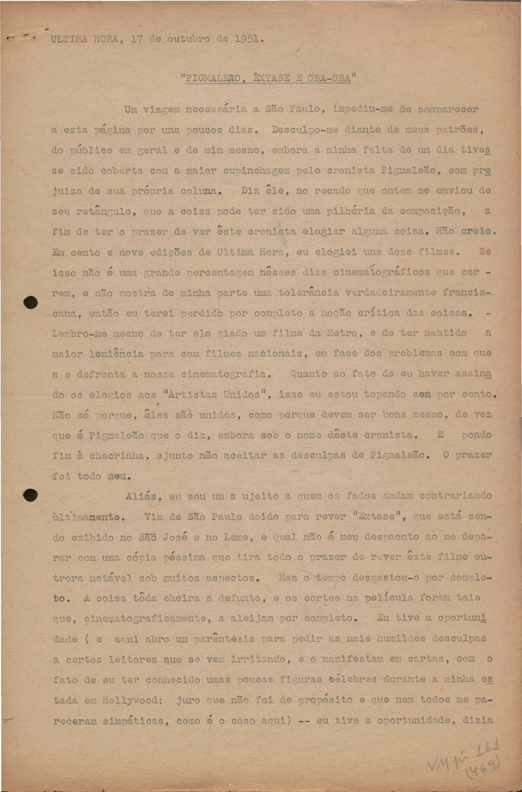 Este registro faz parte do dossiê VMPI161, que contempla artigos escritos e/ou publicados entre 7 jan. 1951 e 21 dez. 1952 para o periódico Última Hora.