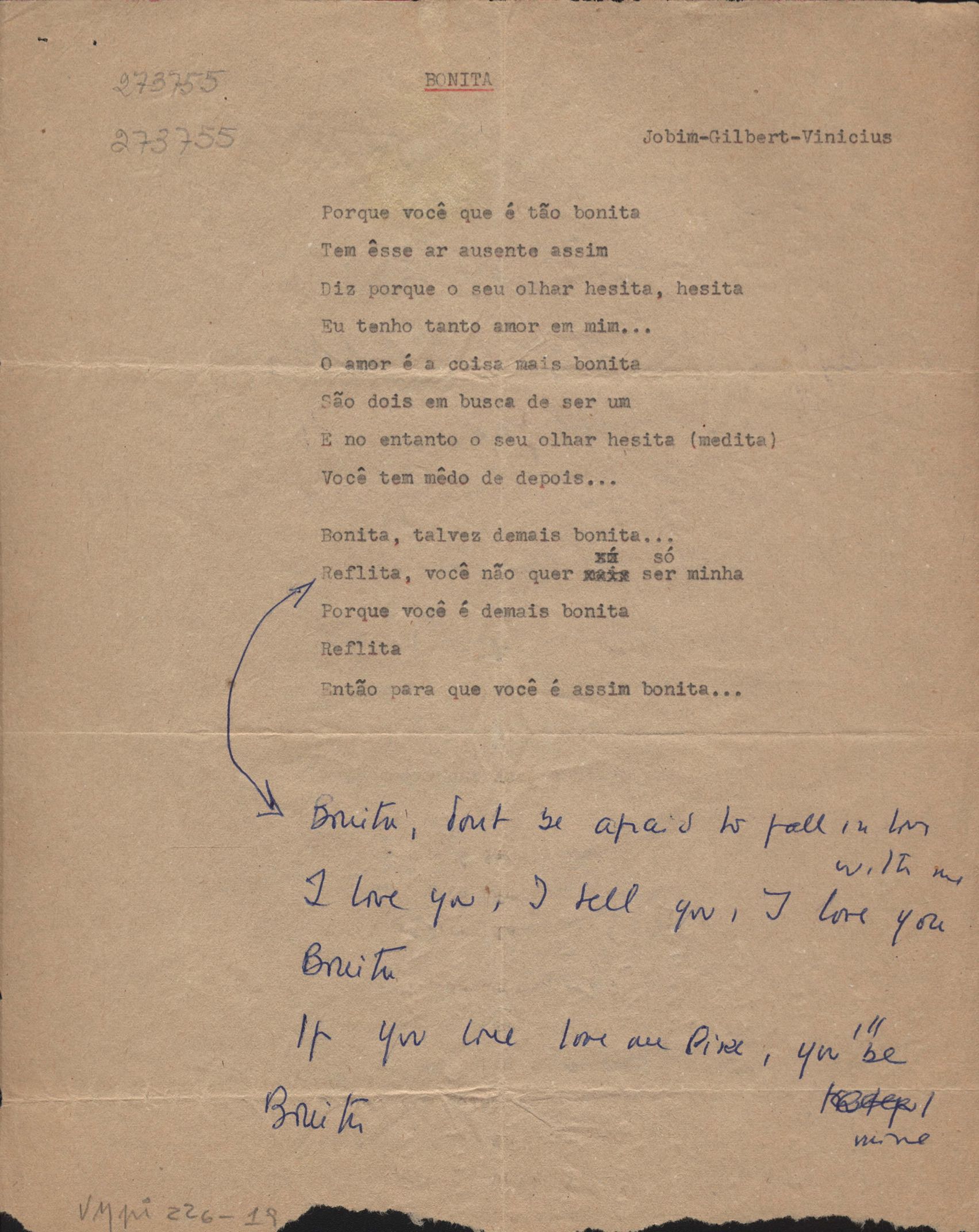 Créditos atribuídos a Tom Jobim, Gilbert [?] e VM.