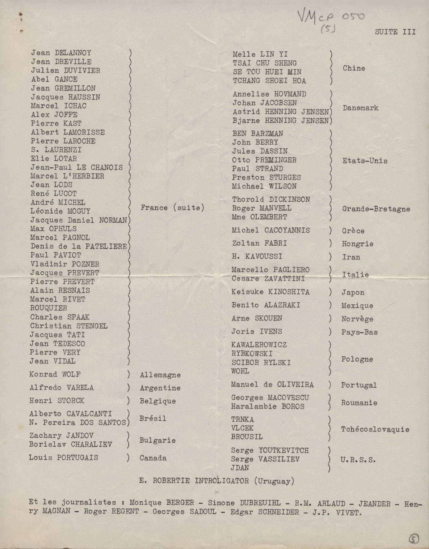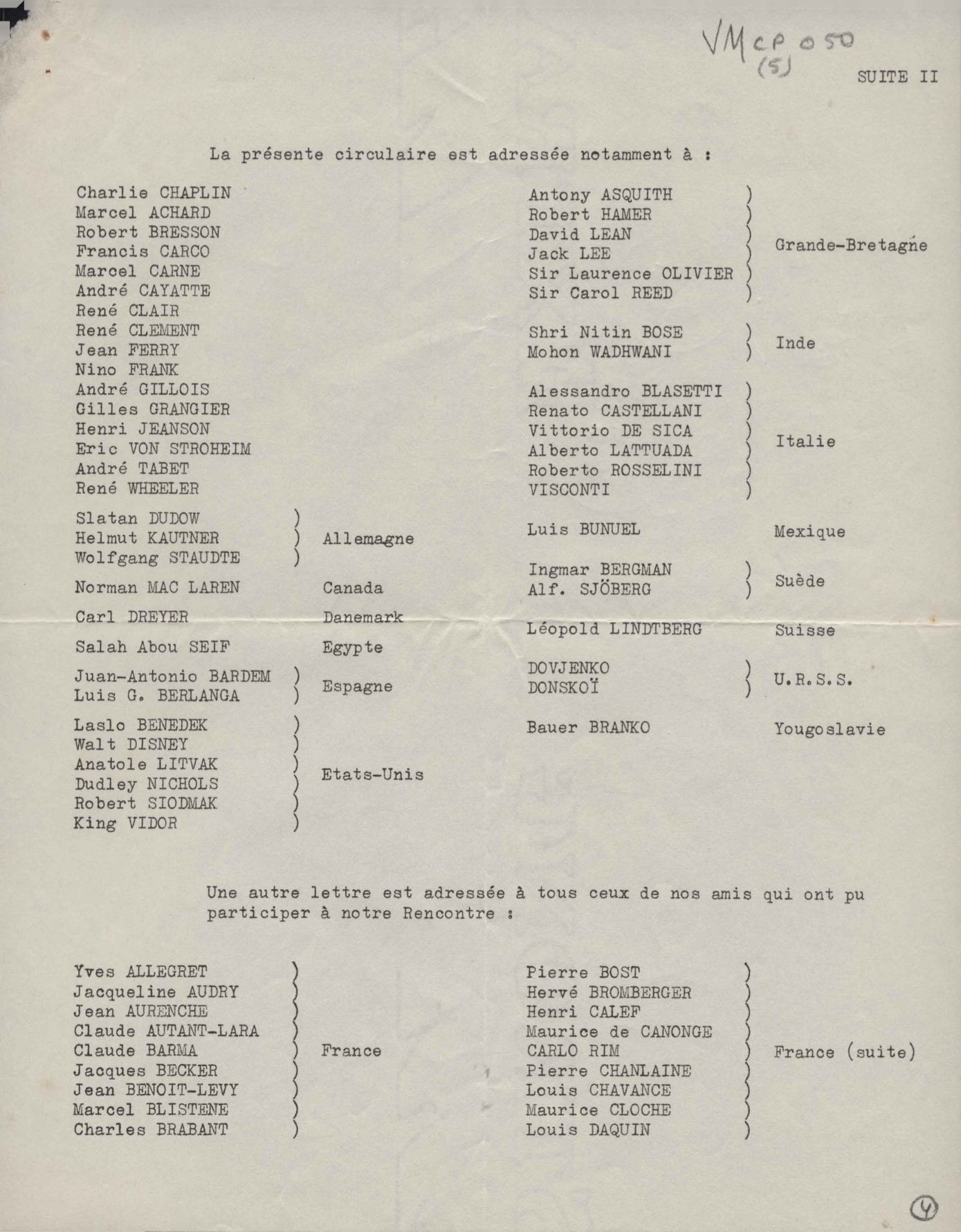 Envio de relação de participantes e dos estatutos do Encontro Internacional de Cineastas de 1956.