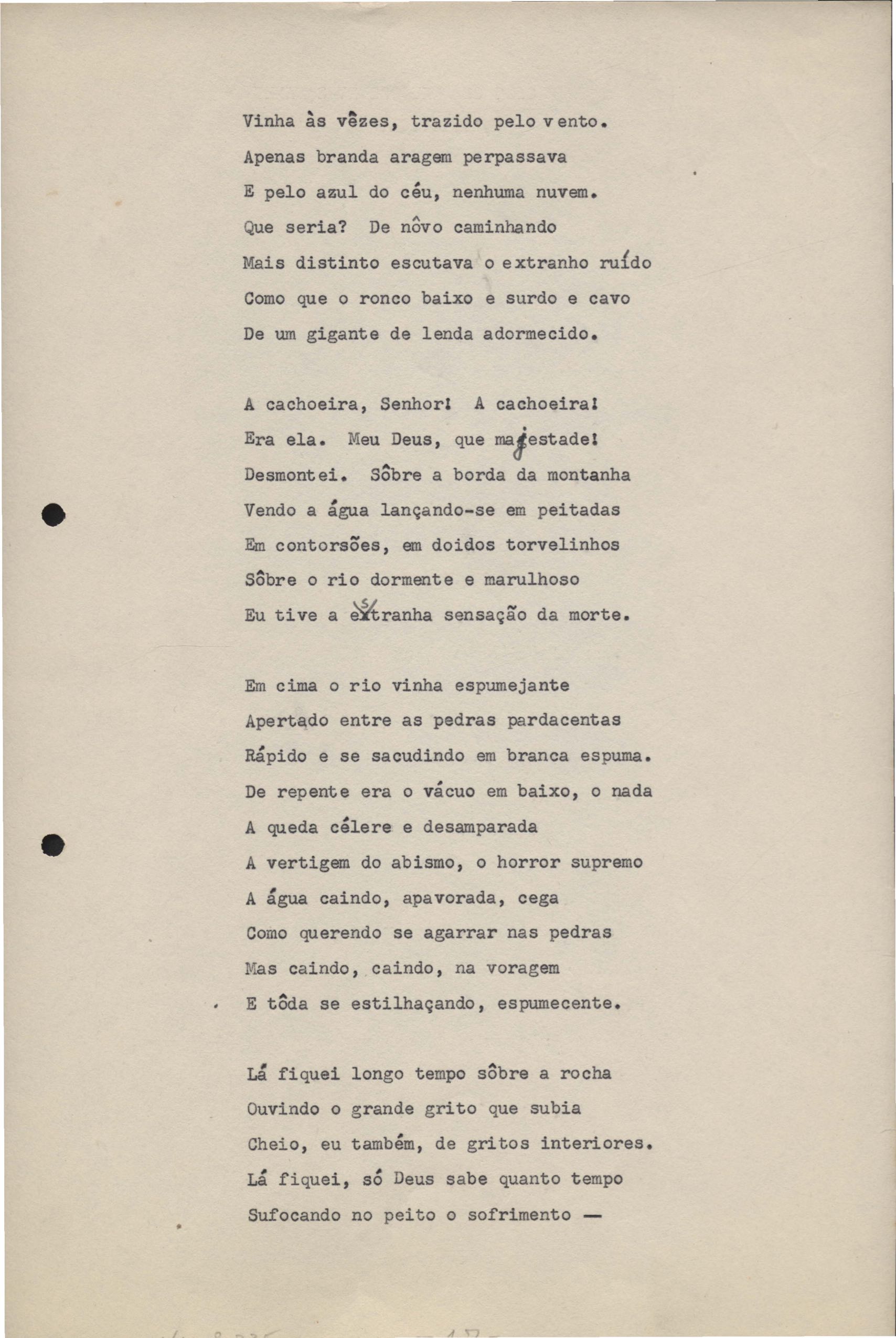 Este documento faz parte do dossiê VMPI235, que contempla poemas datados entre 17 ago. 1932 e 11 ago. 1933, publicados no livro O caminho para a distância. Inclui recortes de alguns poemas impressos da 1ª edição com correções manuscritas.