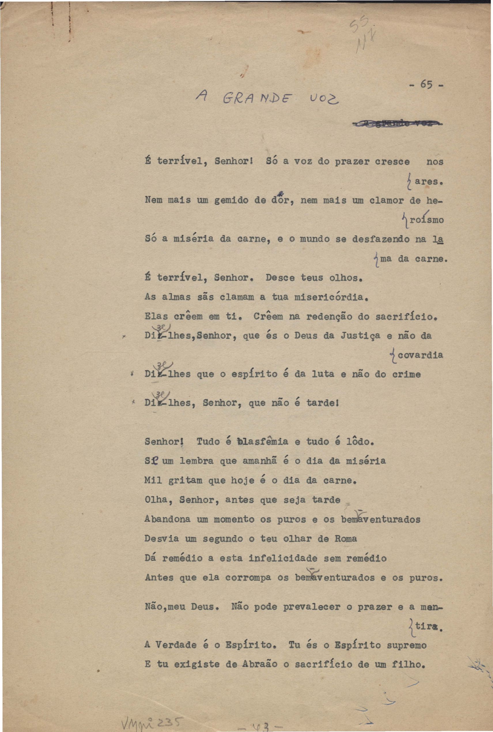 Este documento faz parte do dossiê VMPI235, que contempla poemas datados entre 17 ago. 1932 e 11 ago. 1933, publicados no livro O caminho para a distância. Inclui recortes de alguns poemas impressos da 1ª edição com correções manuscritas.